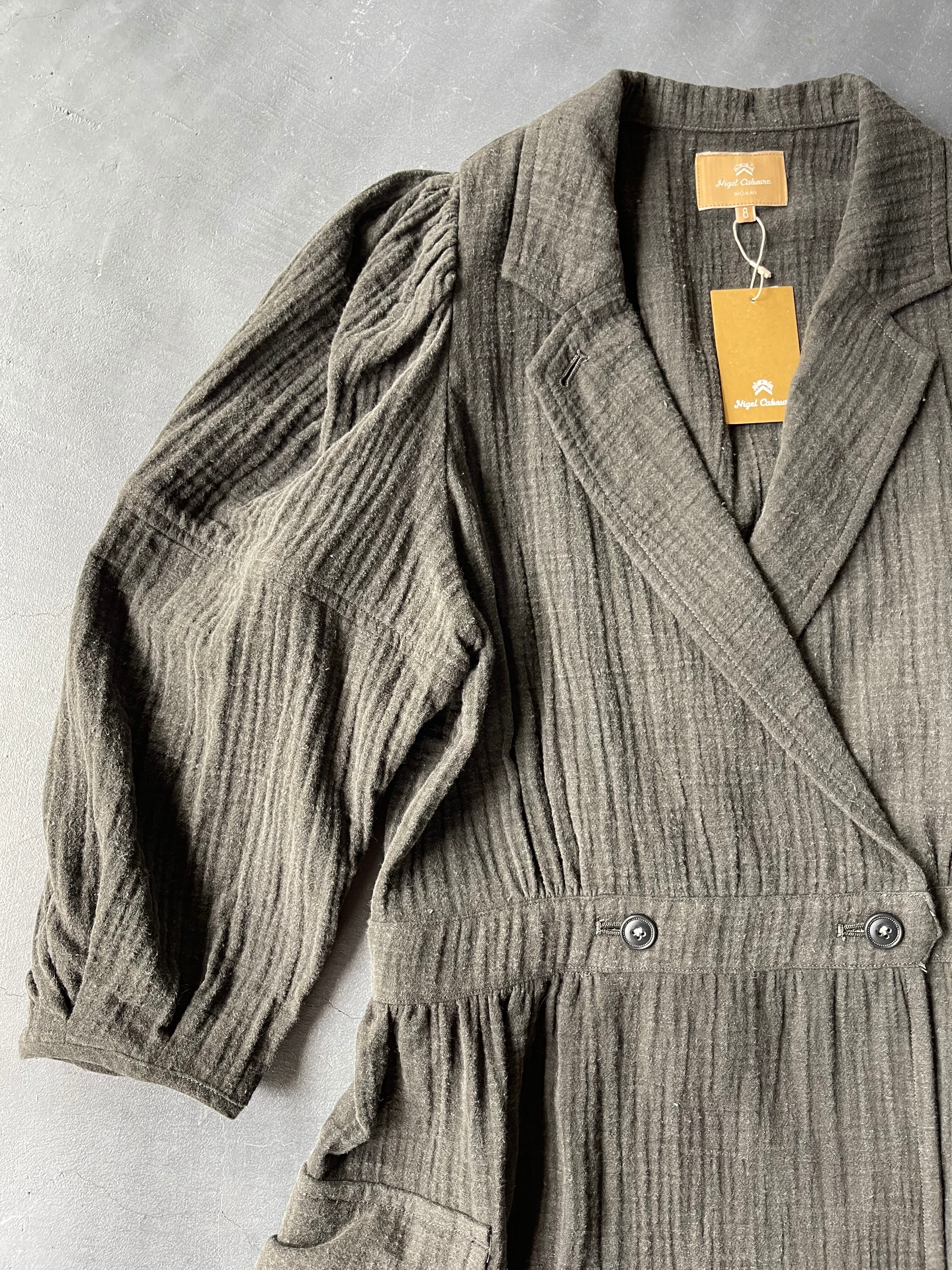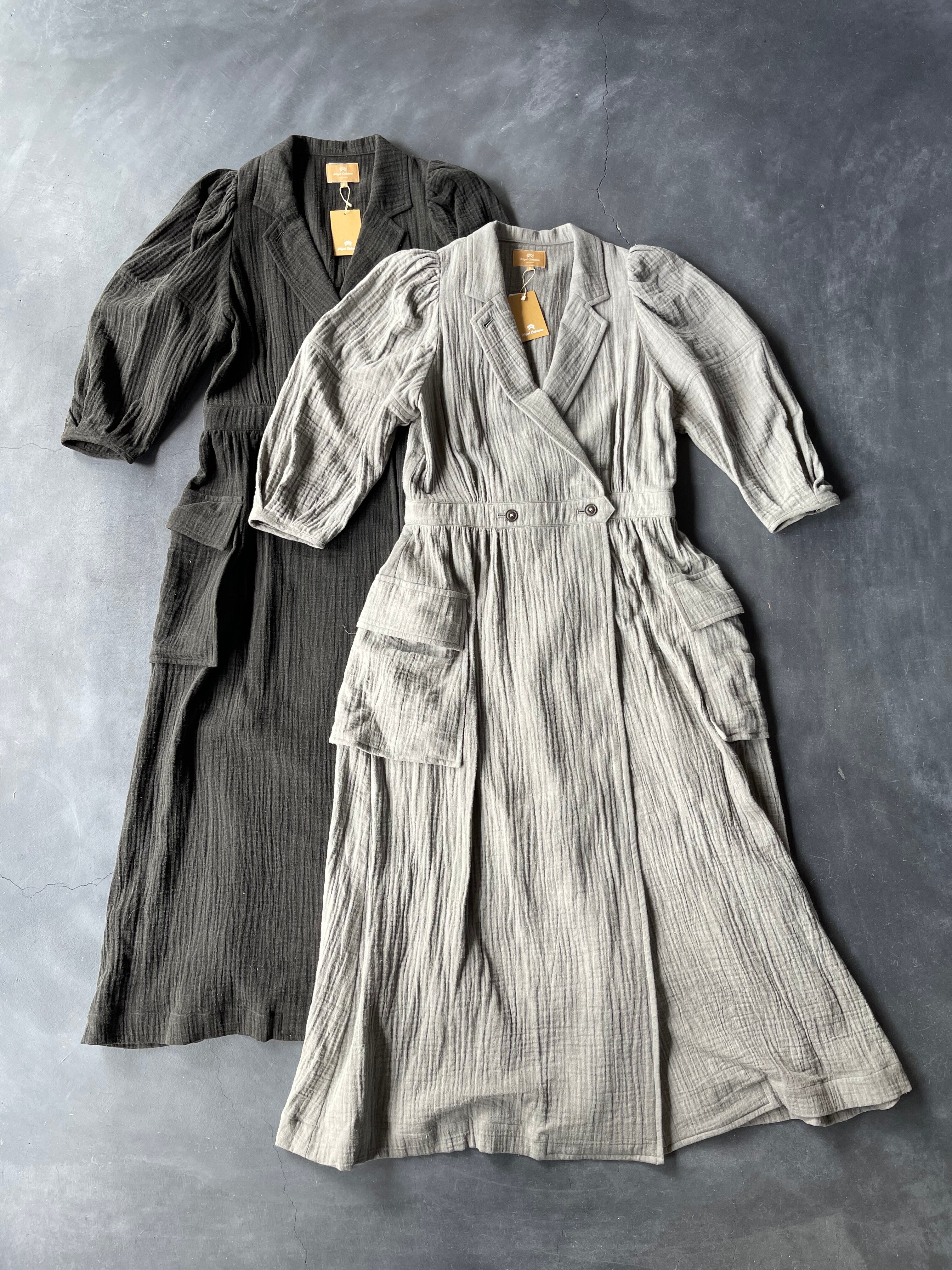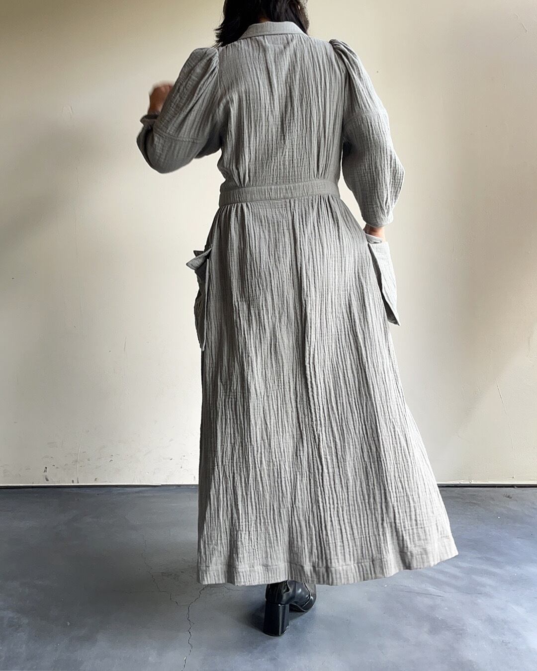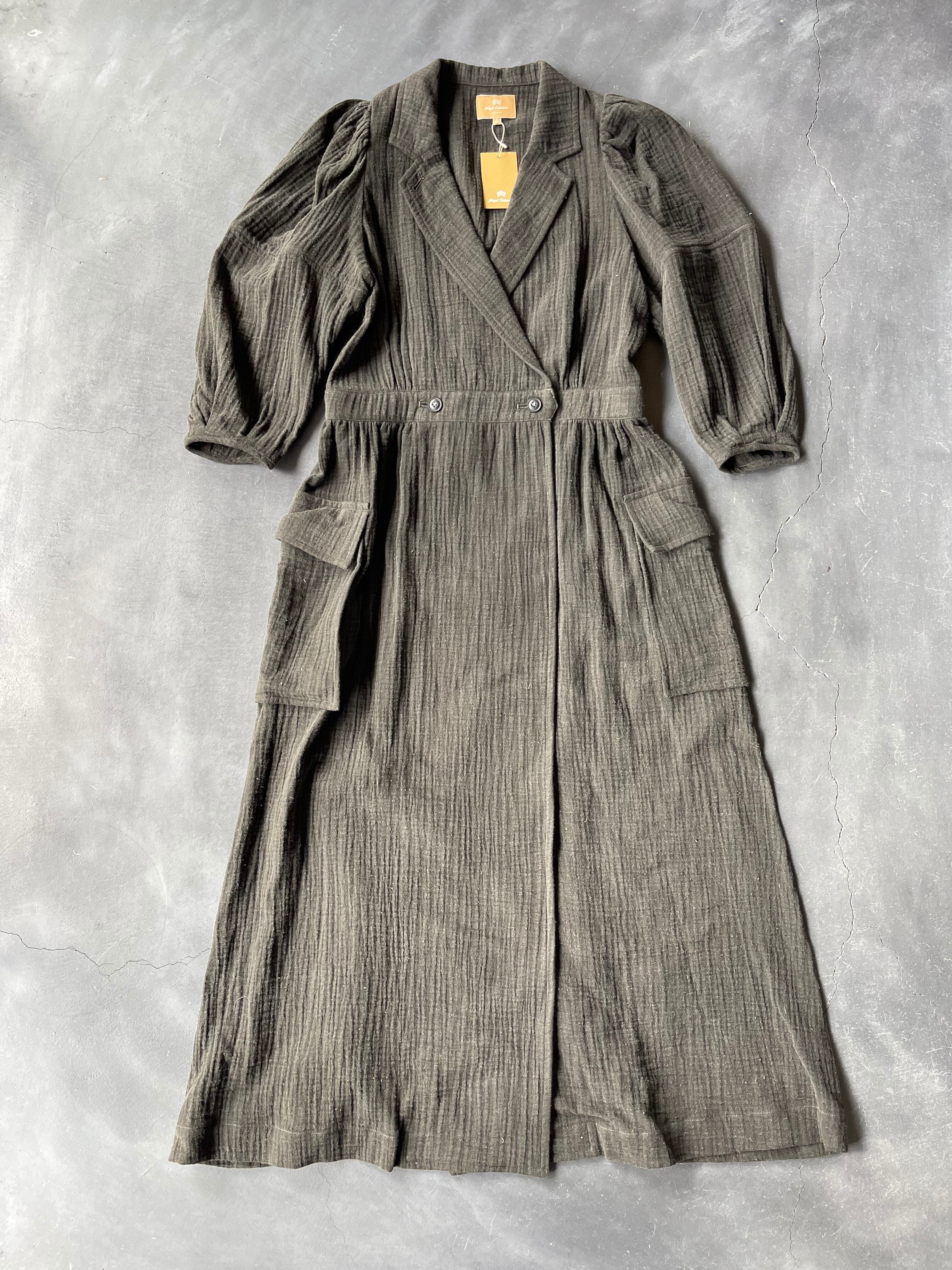 シェルパの人達の民族衣装に見られる、袖の大きなラップワンピースをモチーフにしたドレス。