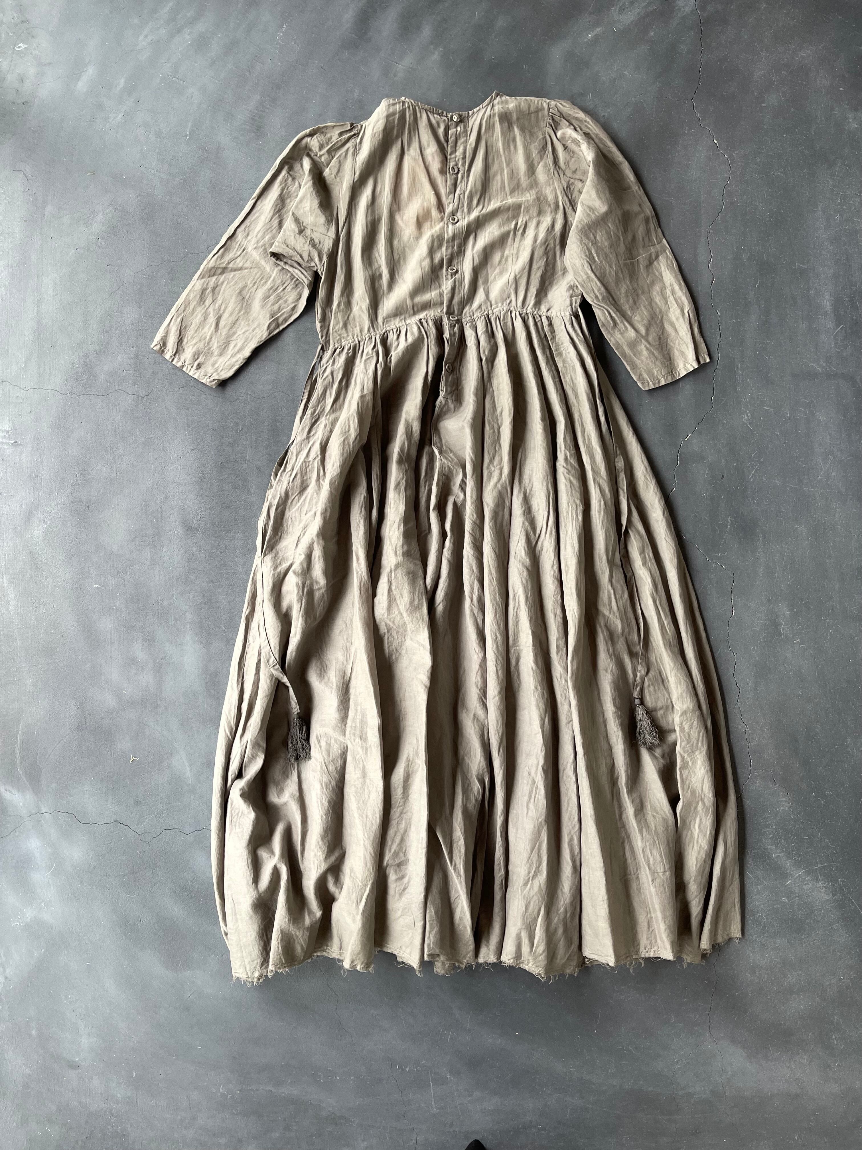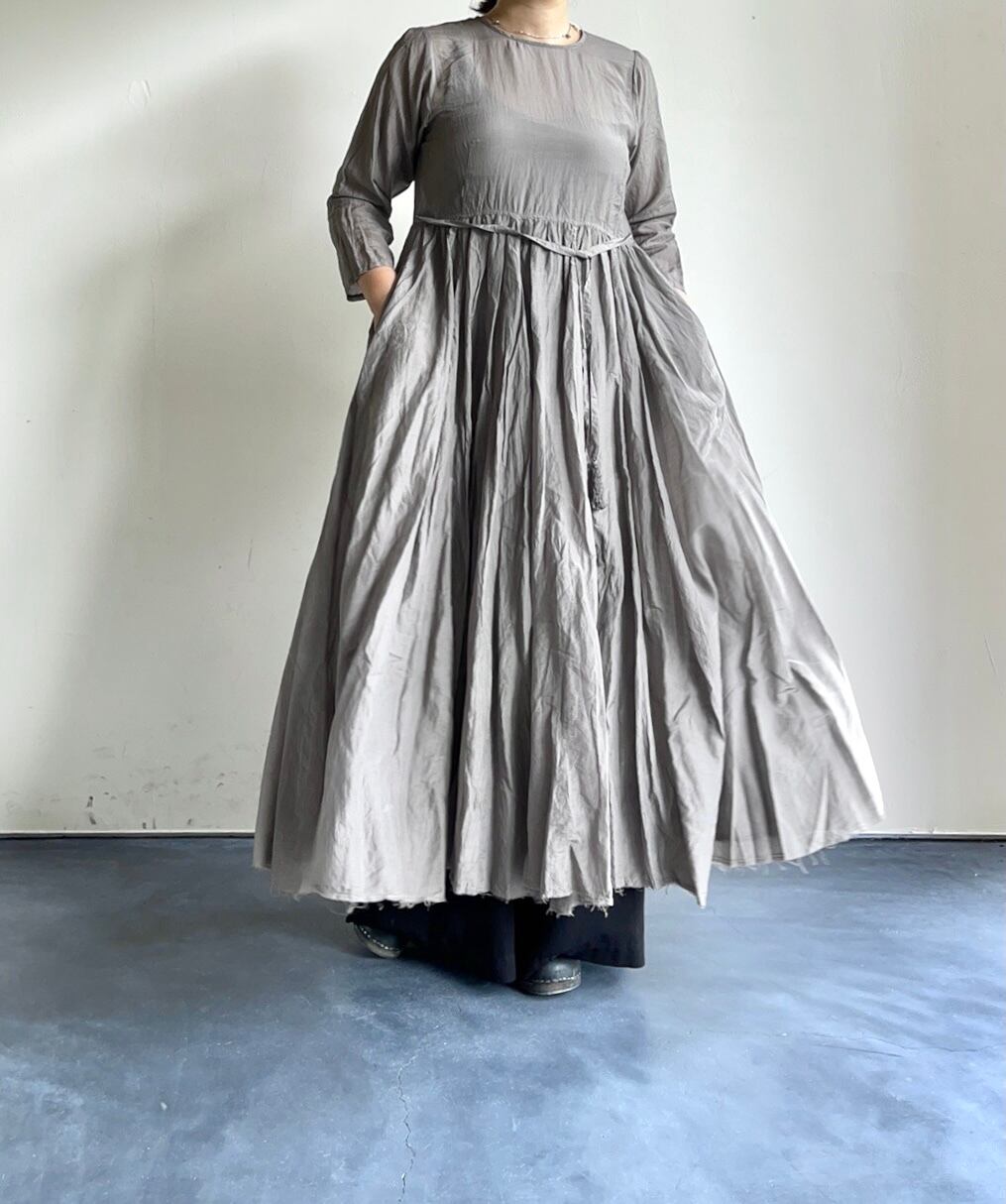 ラック染めロングドレスは優しいグレーに染められ、飽きのこないシンプルで美しいワンピース。