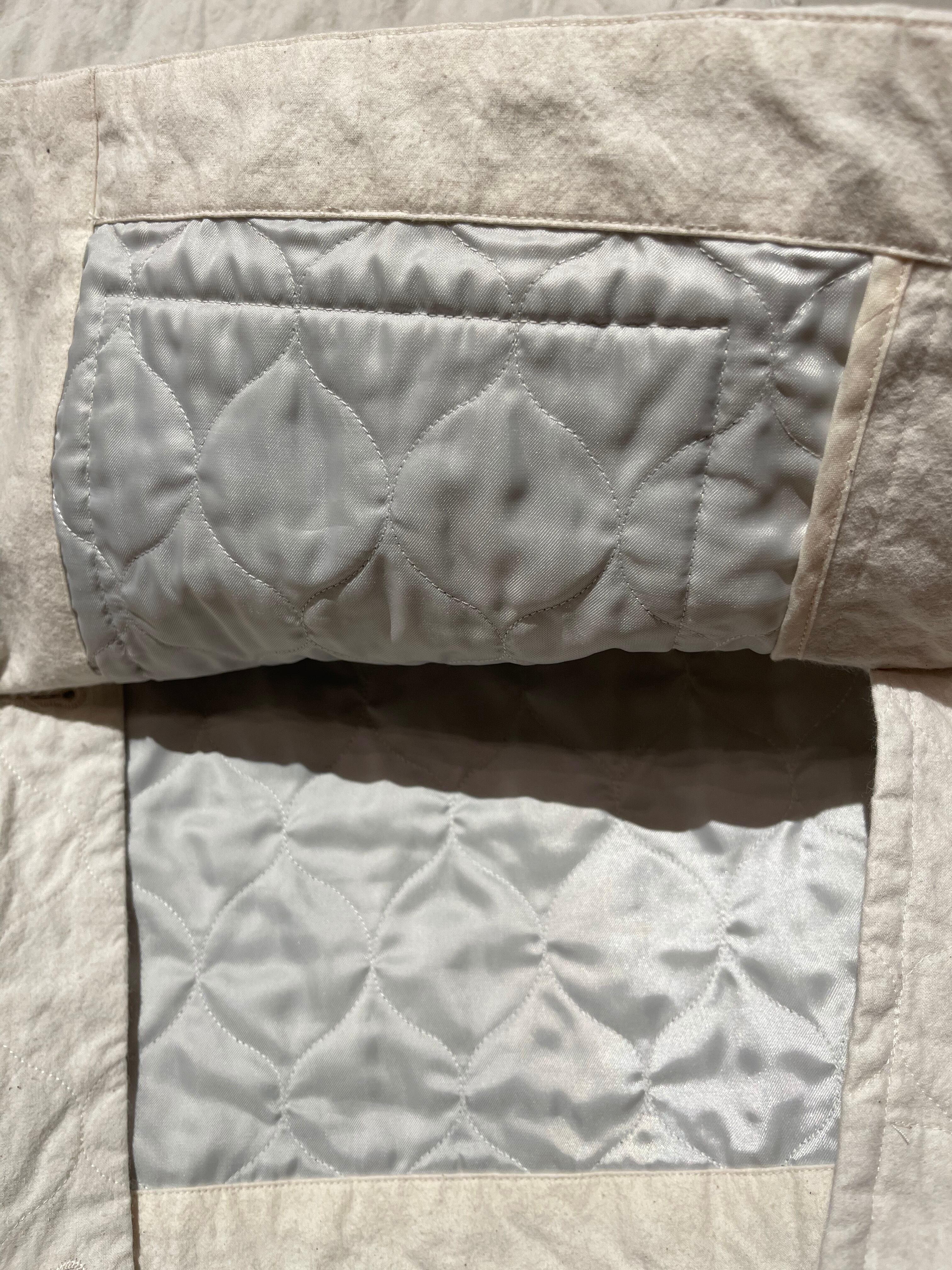 中に高機能中綿KOMO THERMO、裏地にポリエステル裏地を貼り合わせて細かいステッチでキルティングしてあります。