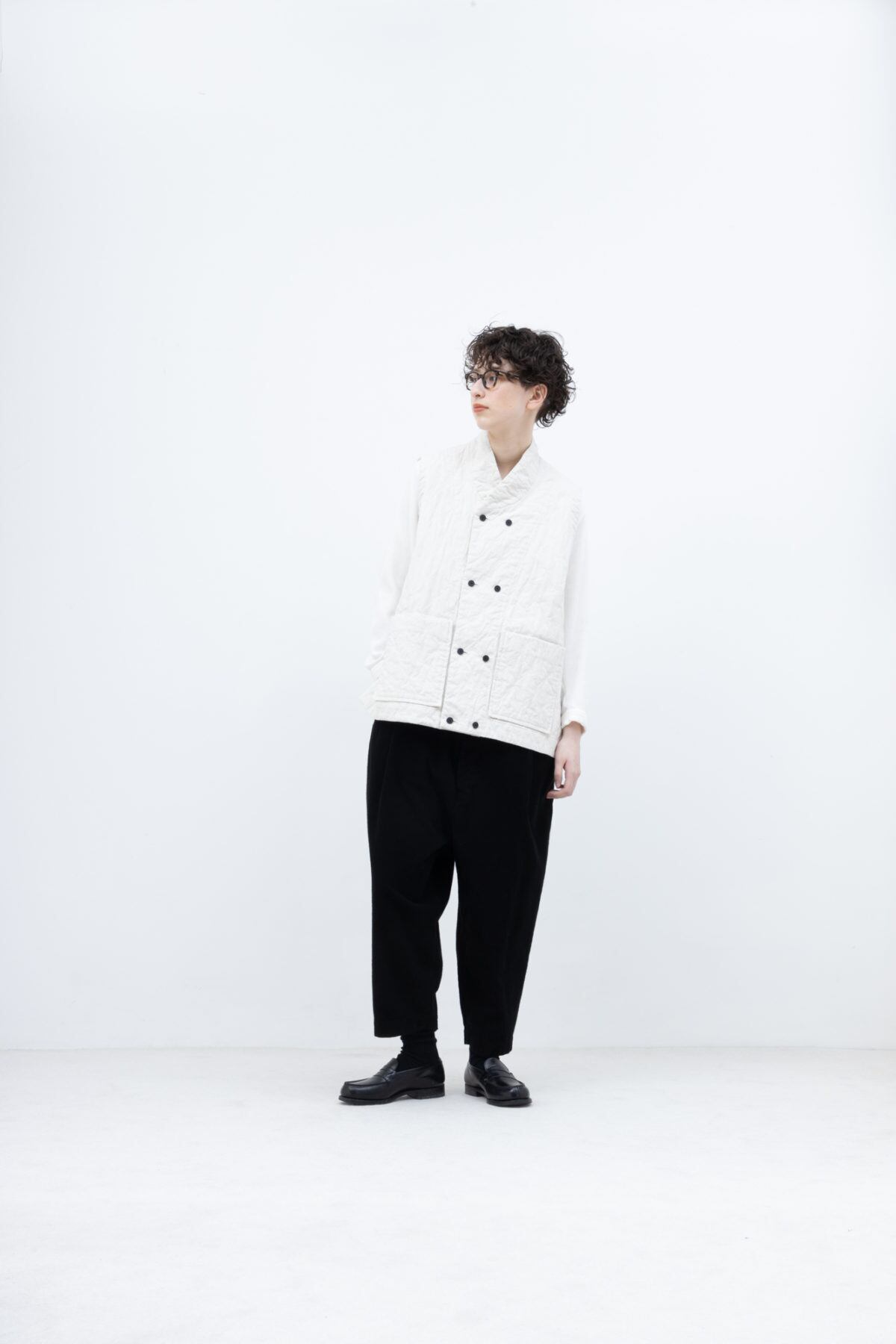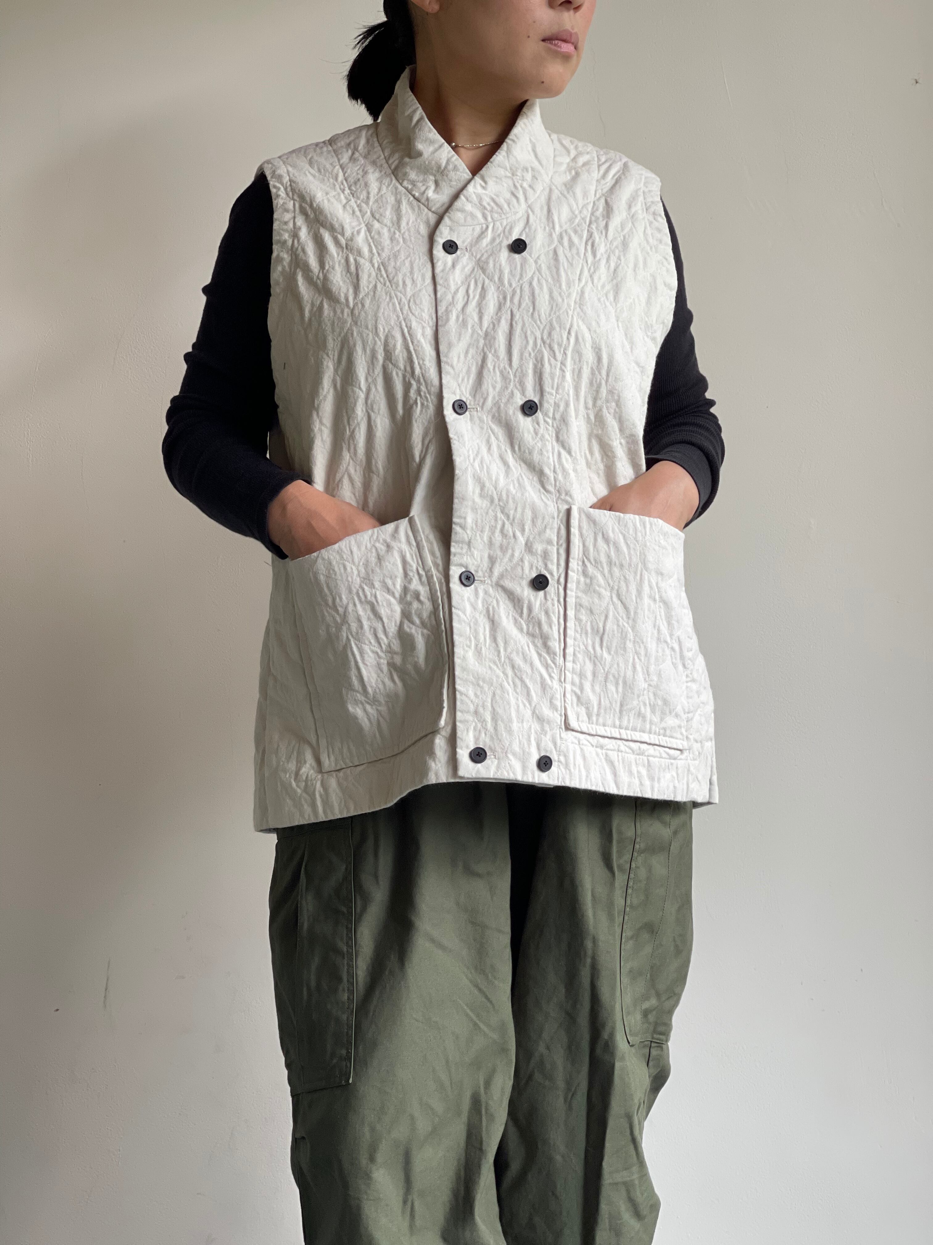 超高密度で織られた綿のコットンタイプライター生地のベスト。