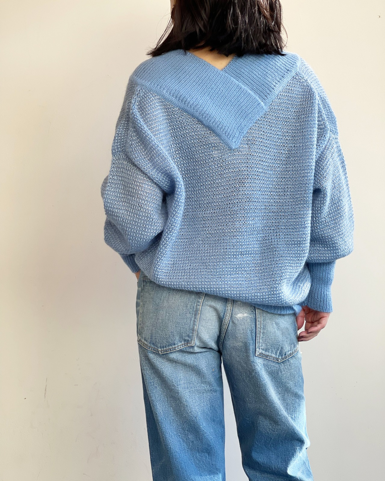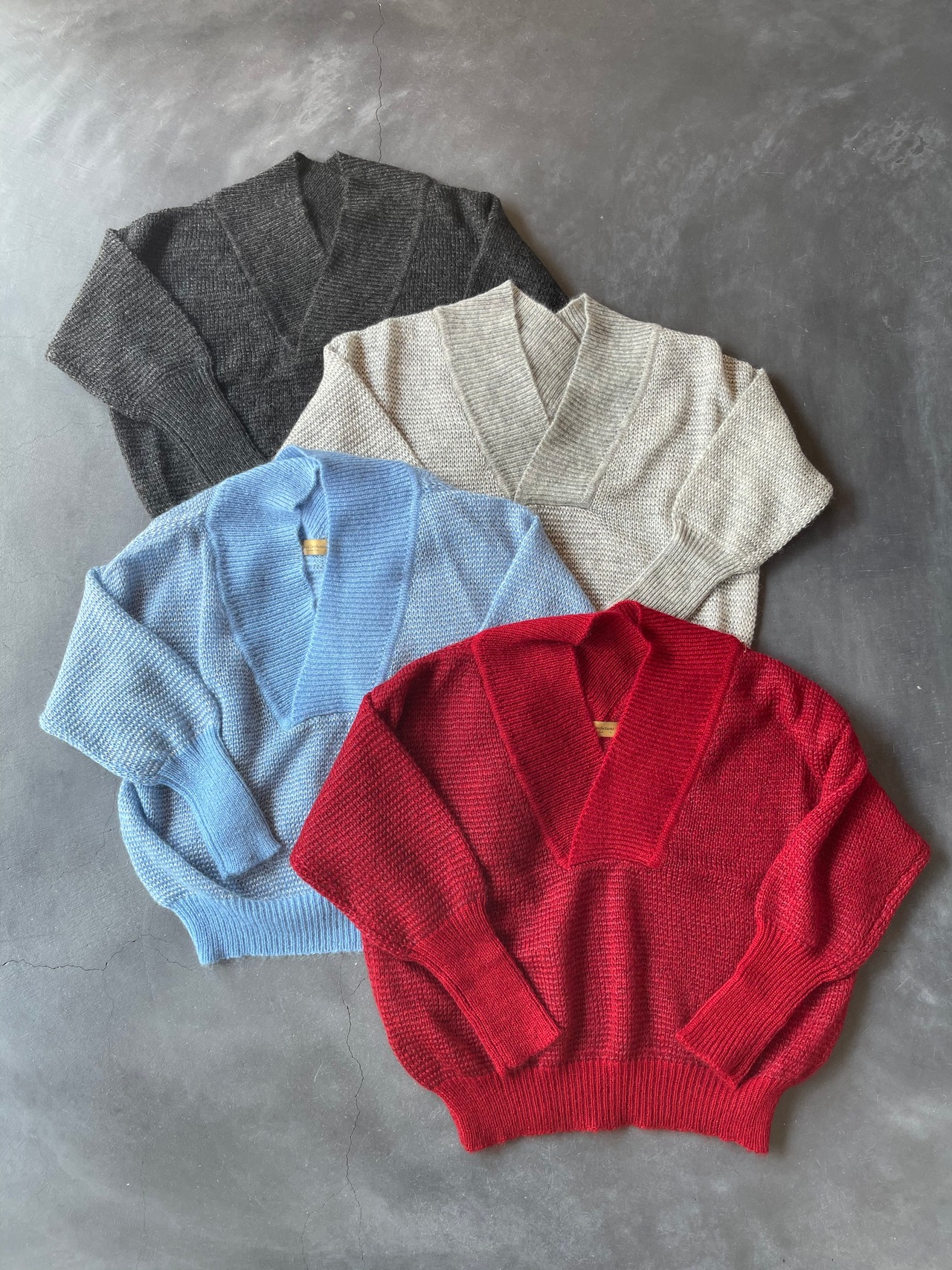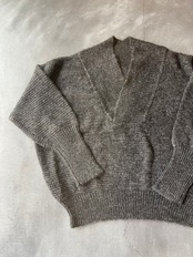 南アフリカの厳しい自然環境で育つアンゴラ山羊から、持続可能産業指針に乗っ取り、安全で倫理的に運営される農場で年に2度だけ山羊の身体を全く傷つける事なく厳しい管理下で生産されるモヘアの中でも、若いアンゴラ山羊だけから刈り取られる繊細なキッドモヘアを使用した非常に滑らかで軽量な上質なニットです。