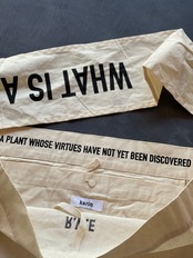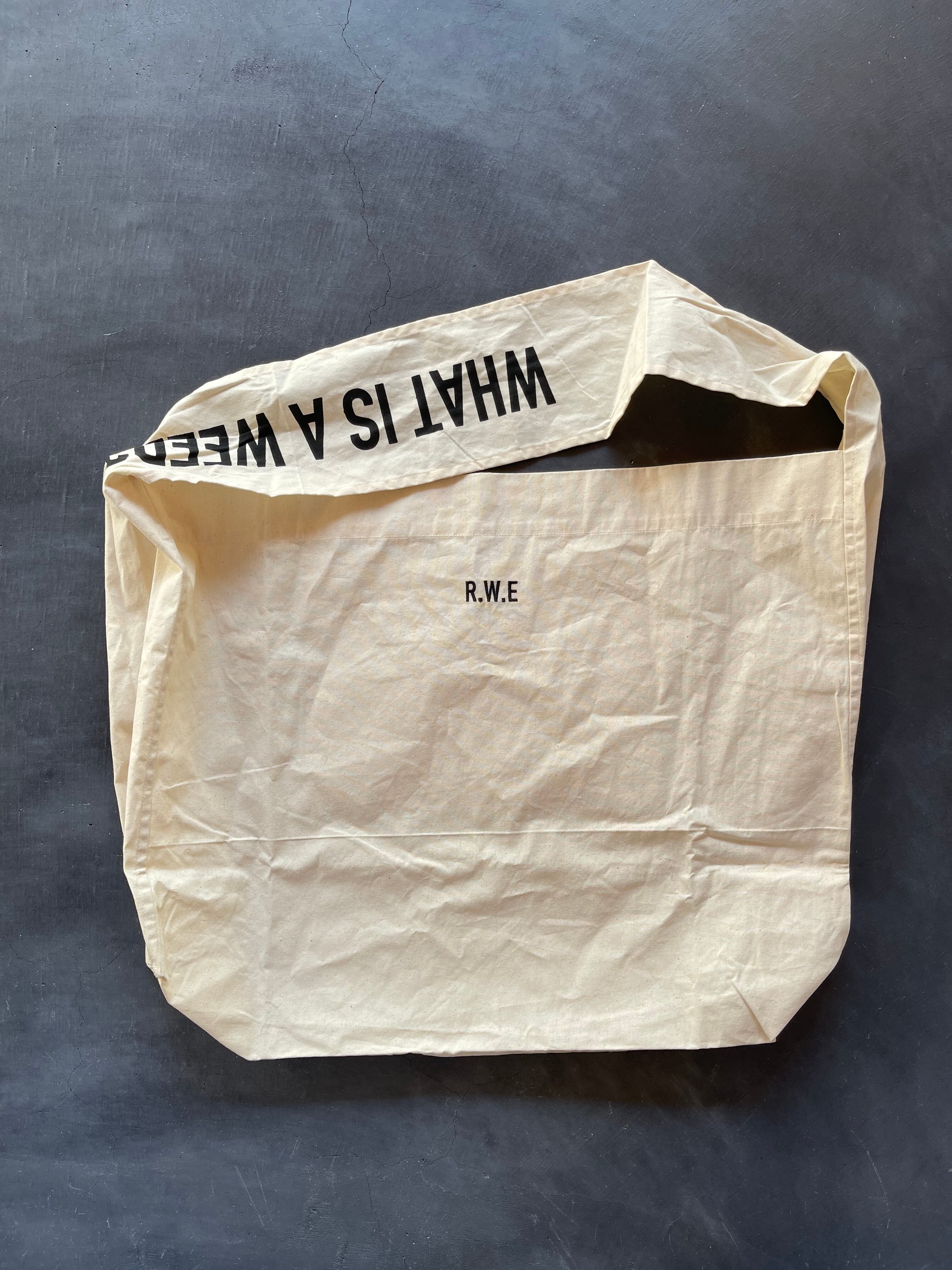 アメリカの思想家・哲学者Ralph Waldo Emersonの言葉をプリントしたショルダーバッグ。内側ポケット上部分には疑問に対する答えをプリント。バッグ正面には彼のイニシャルR.W.Eの刺繍を。