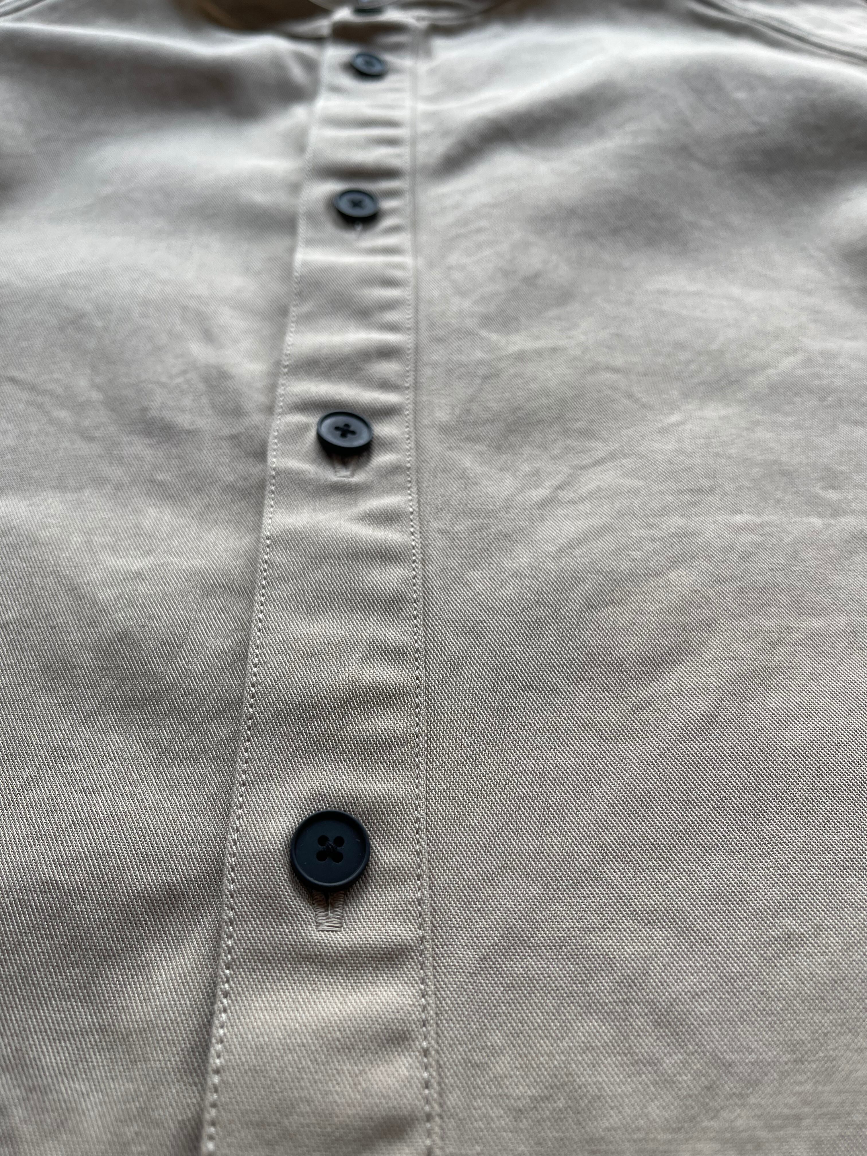 20/1 の強撚した綿糸を使用した粗い質感のツイル生地です。強撚した生地の特徴である皺感とシャリ感が印象的な生地。