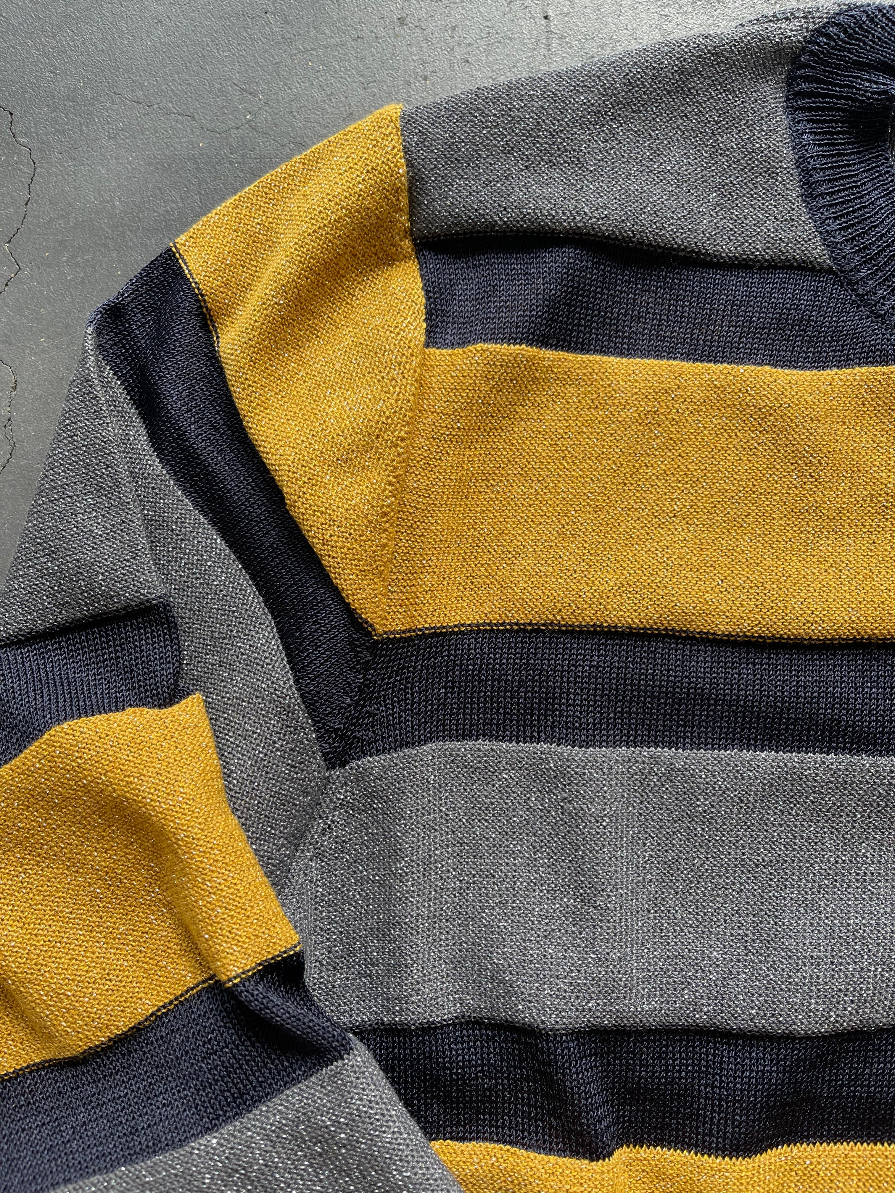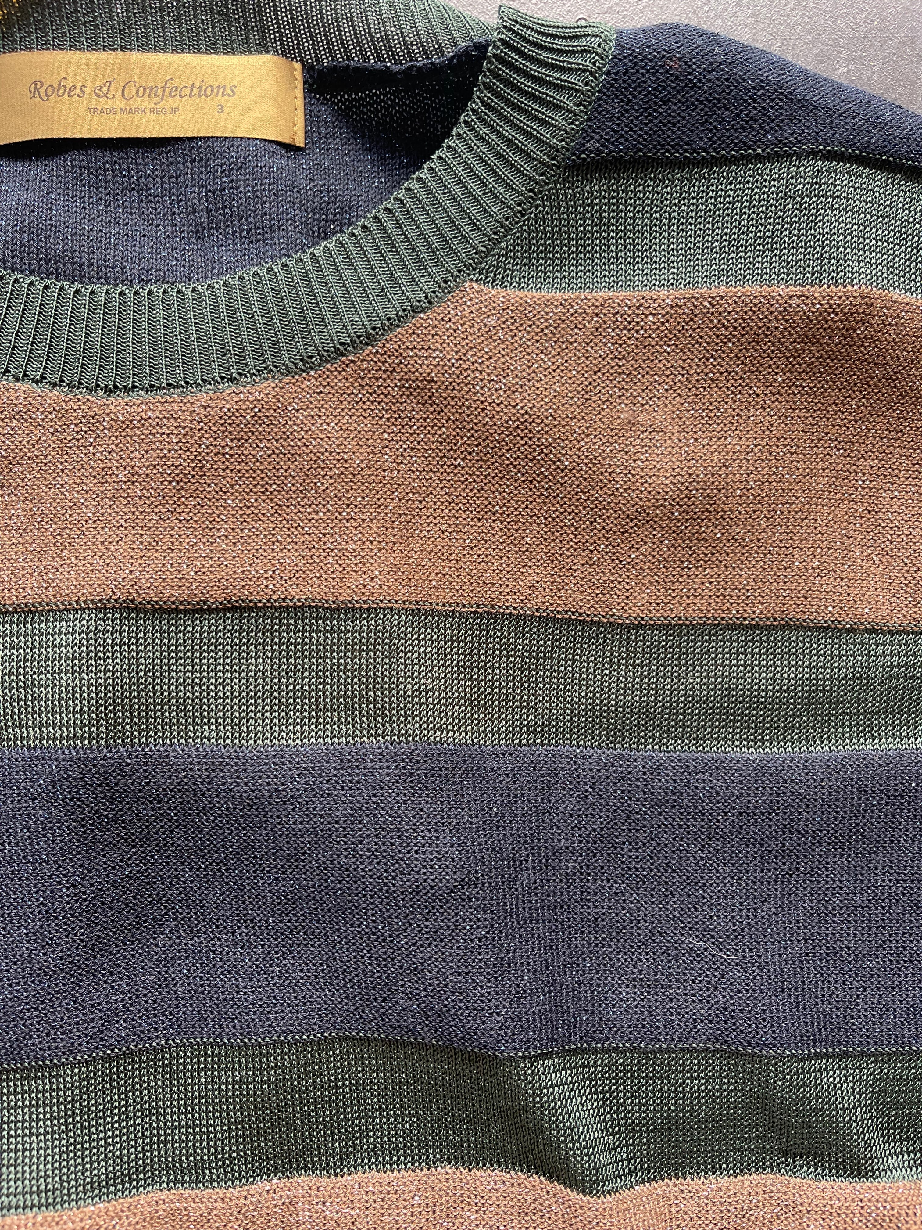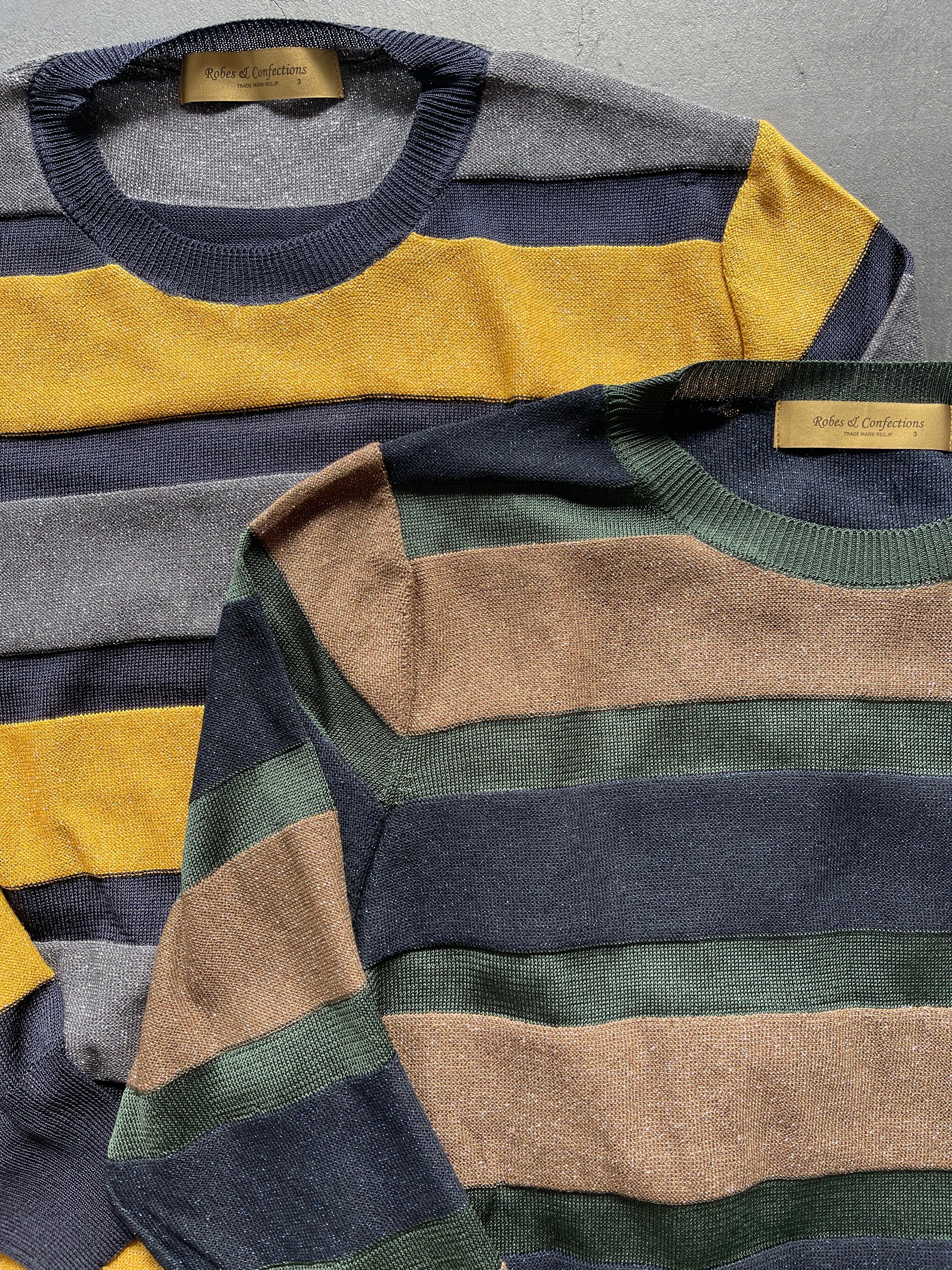 柔らかい光沢のラメ糸を使ったボーダーニットです。