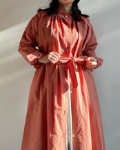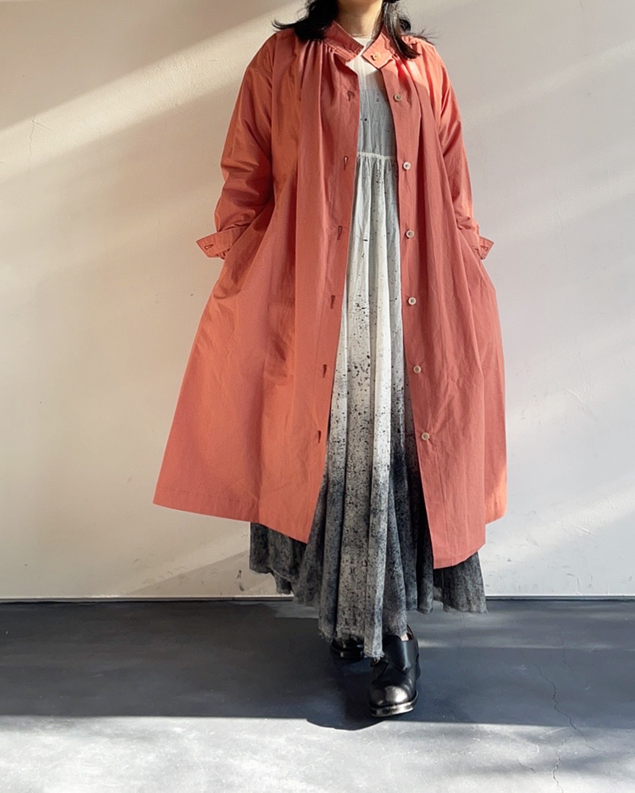 NCWで人気の1940年代フレンチファーマーのシリーズより、ざっくりと羽織るタイプのコートドレスが出来ました。綿麻の強撚糸(通常の糸に比べ撚りが多い物)で織られたタイプライター。強撚糸特有のドライな感触でありながらも、しっかりもみこむことにより柔らかさと膨らみを感じることが出来る、心地よい肌触りの素材で夏でも気持ち良く過ごせるドレスです。羽織のサマーコートにもお勧めできます。