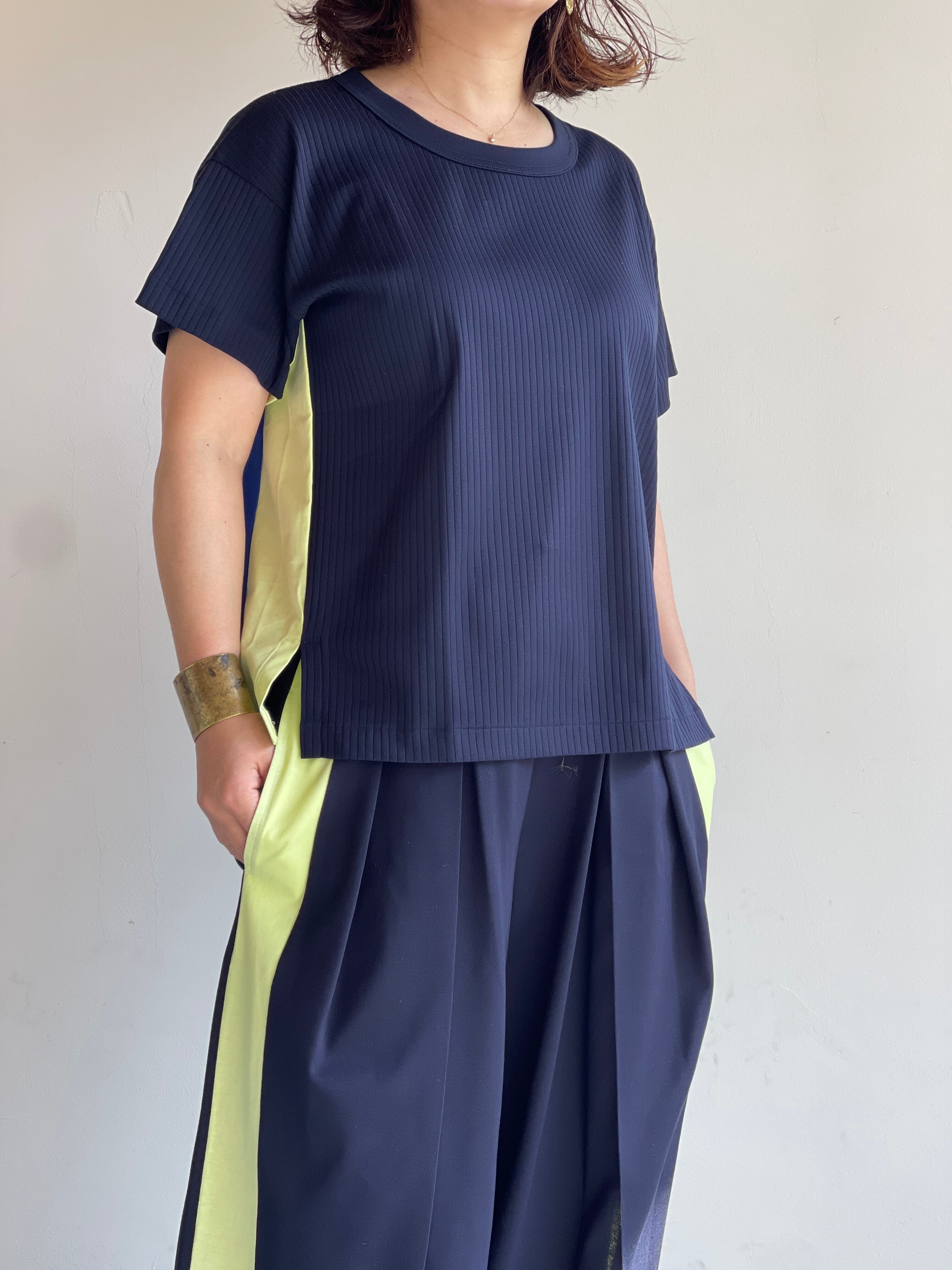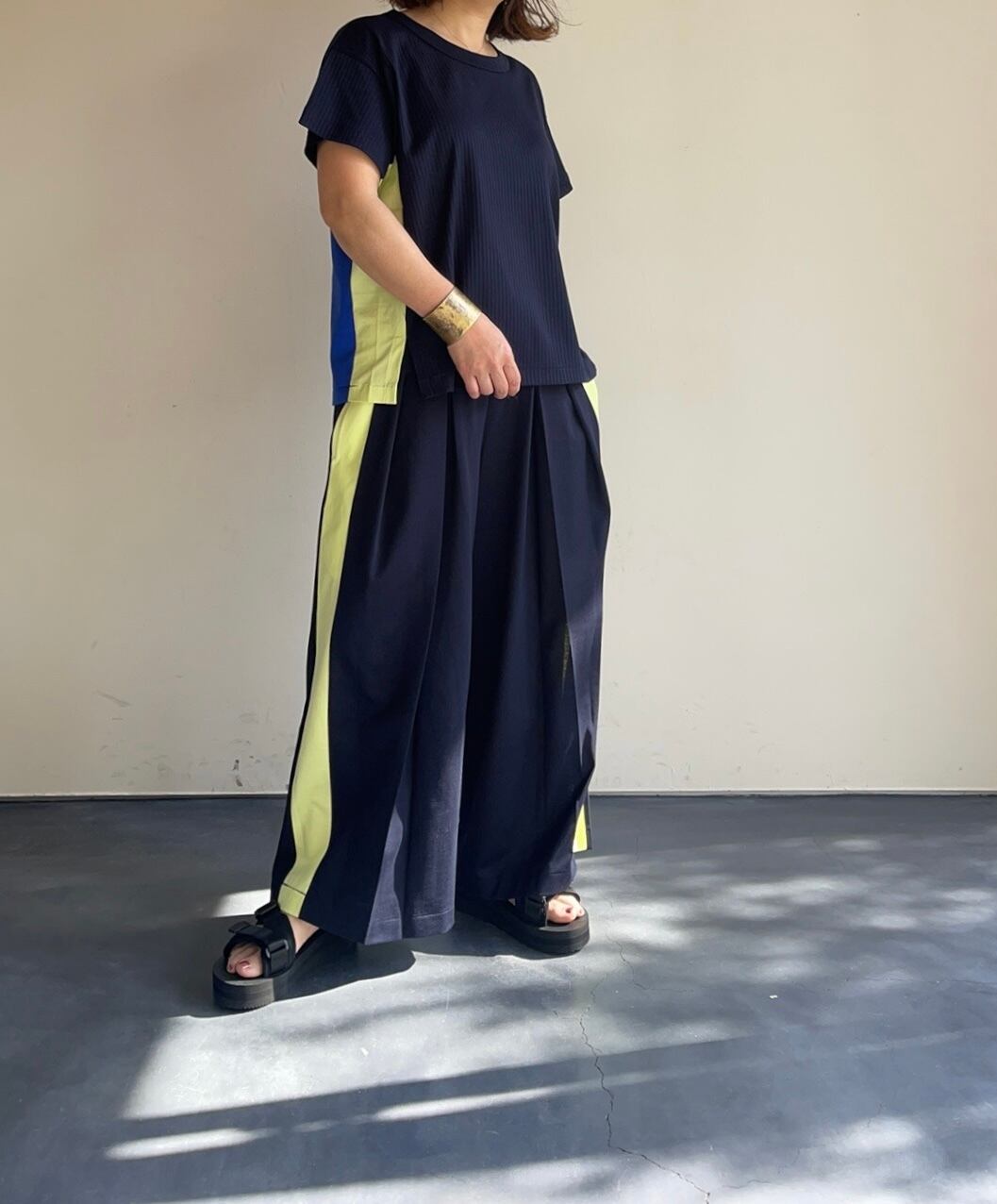 鮮やかに染色された天竺、フライス、リブをマルチに合わせたオリジナルカットソーシリーズ。