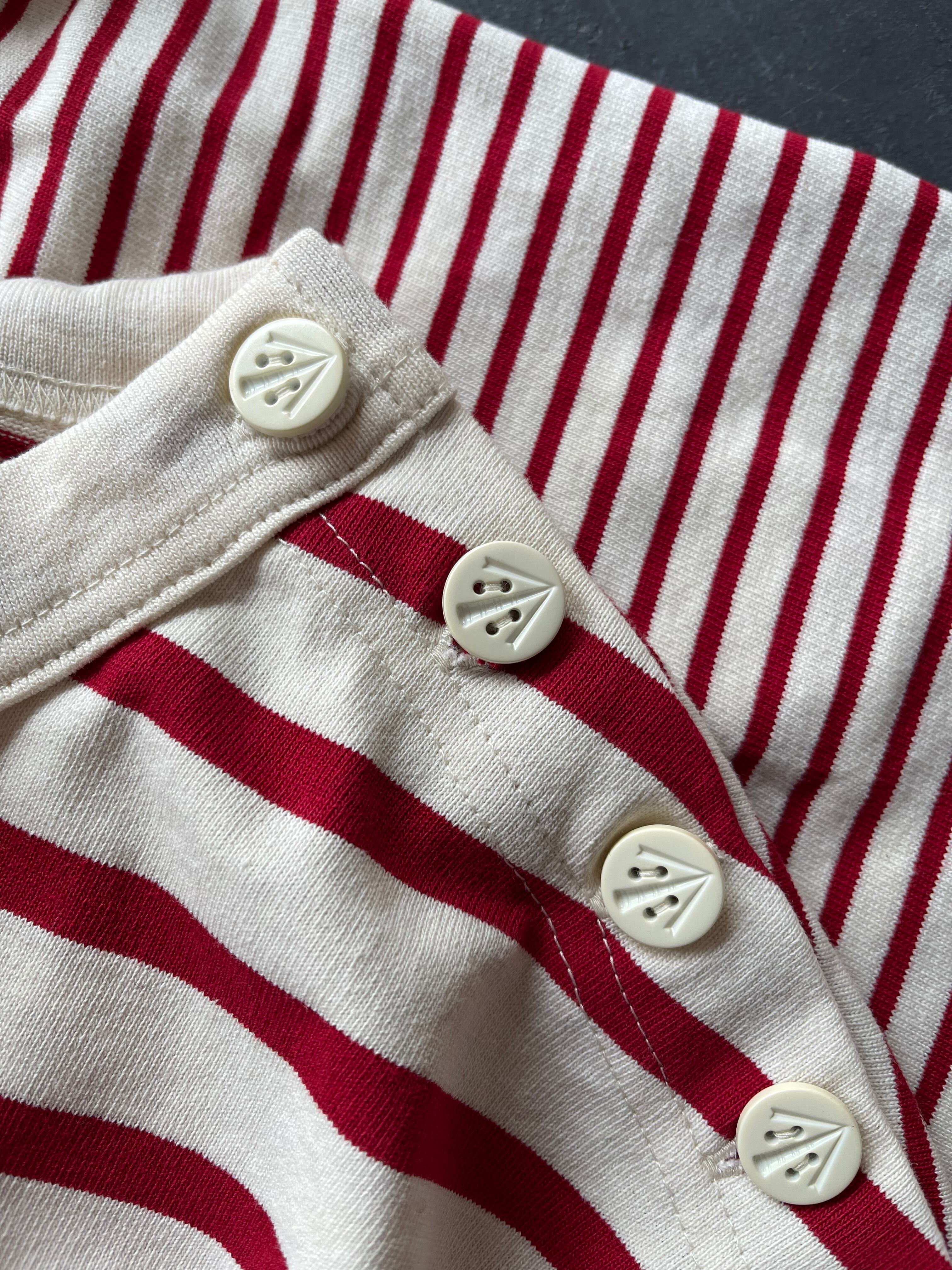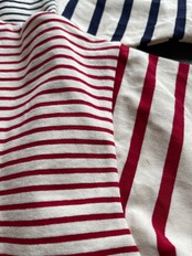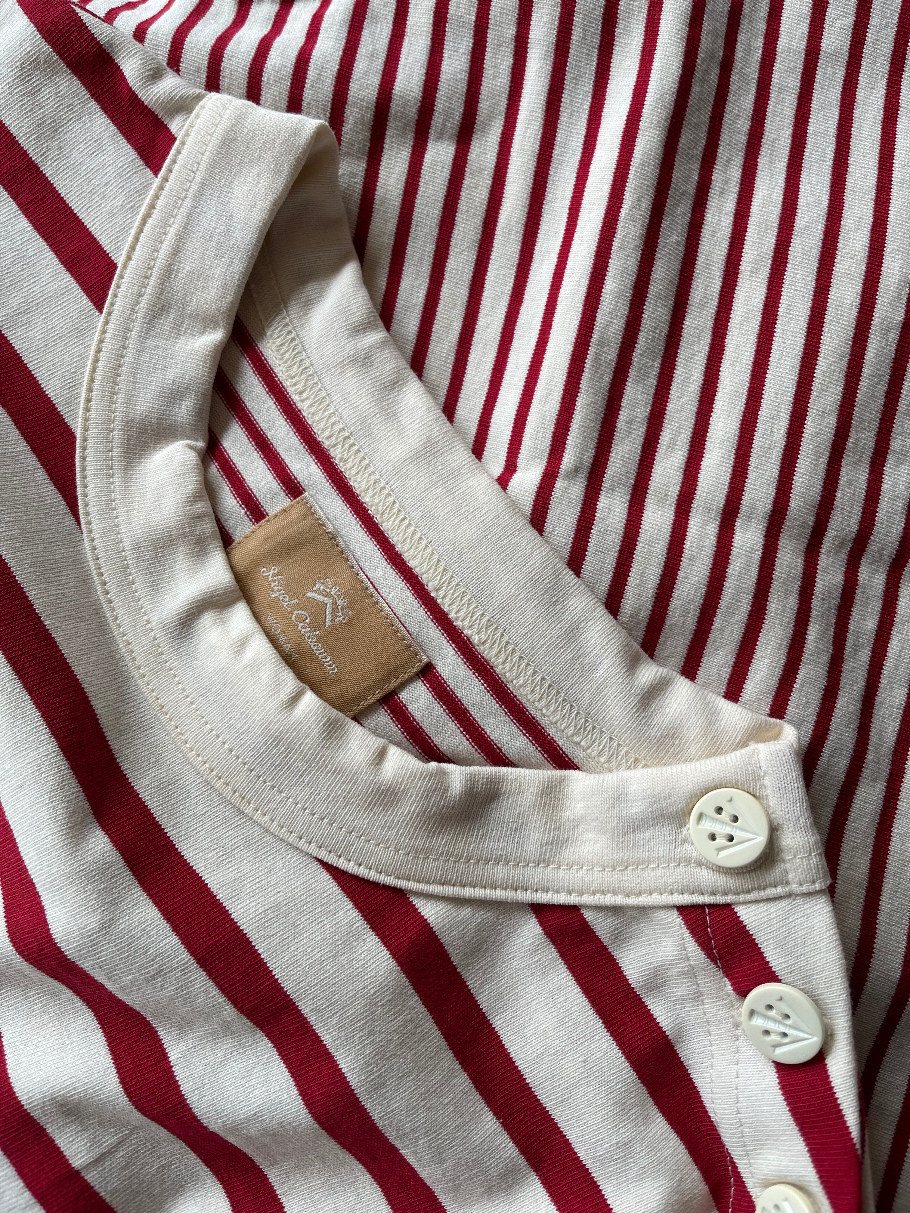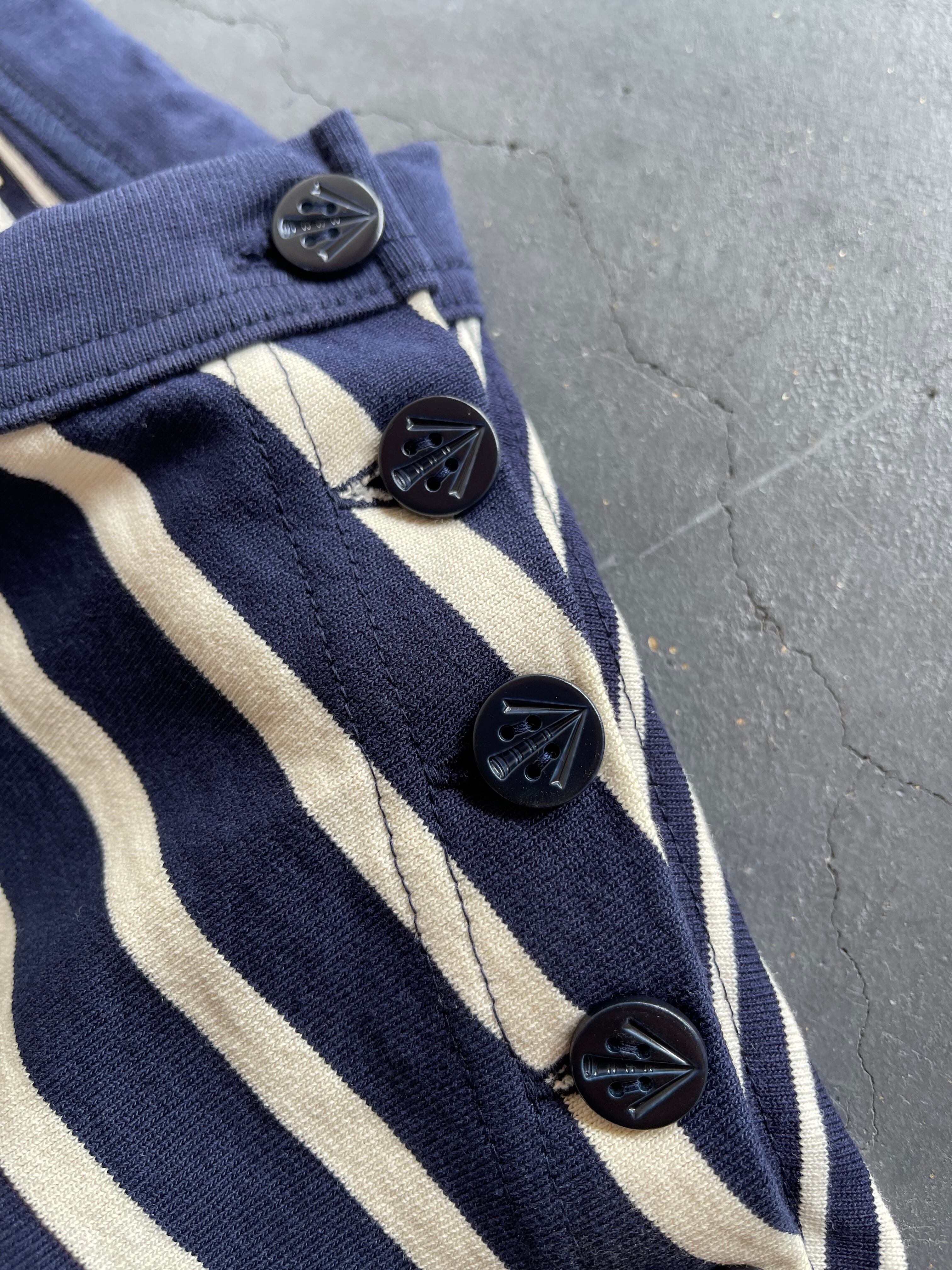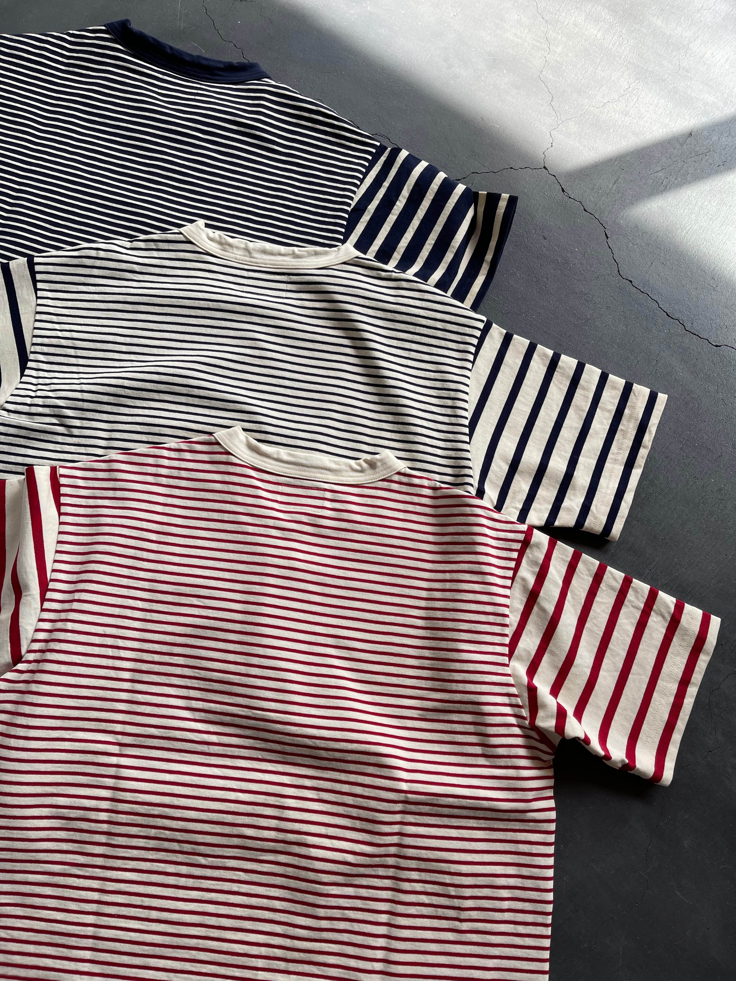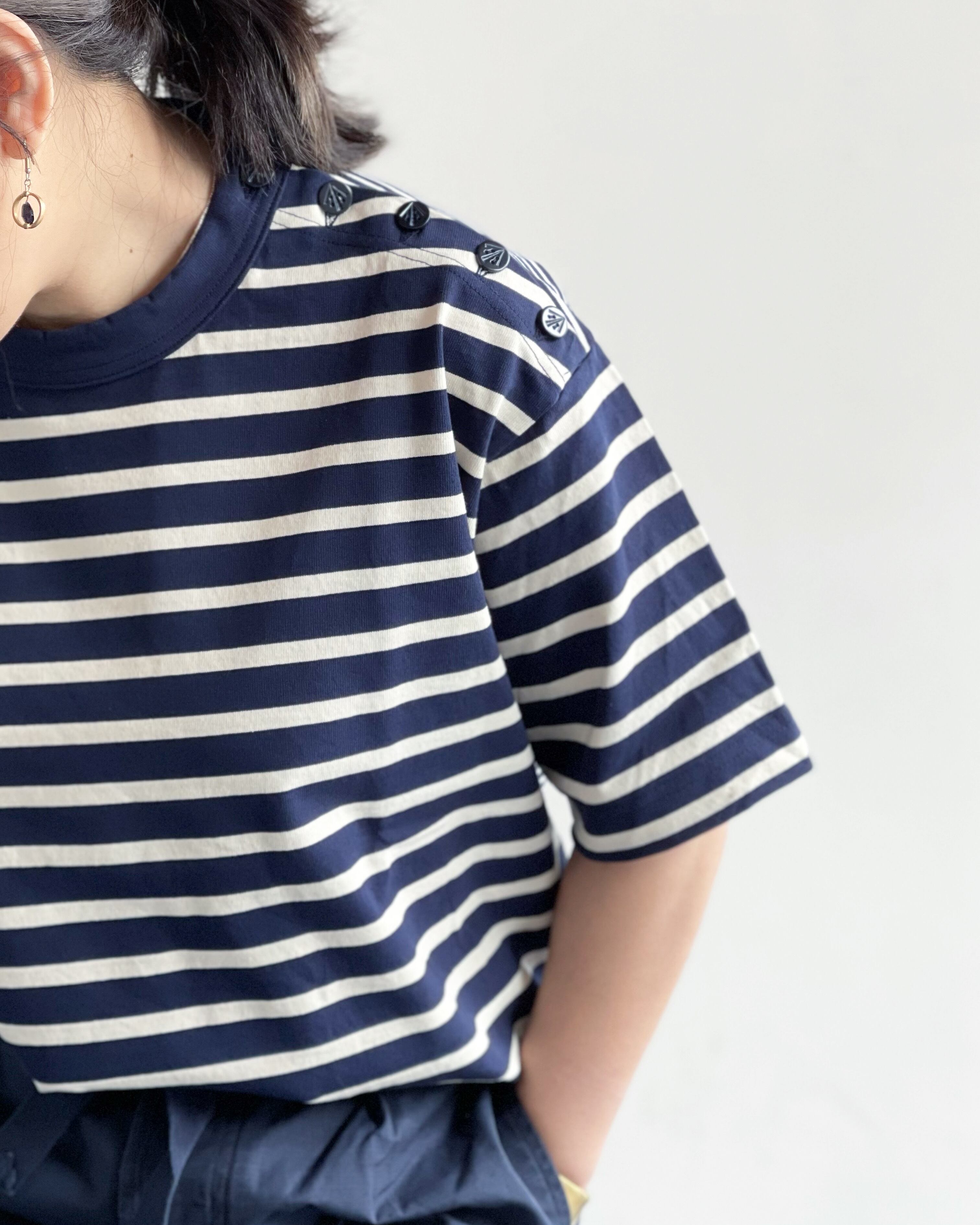 前身頃と後ろ身頃で異なるピッチのボーダーを使用した、セーラーTシャツをビッグサイズにアップデート。