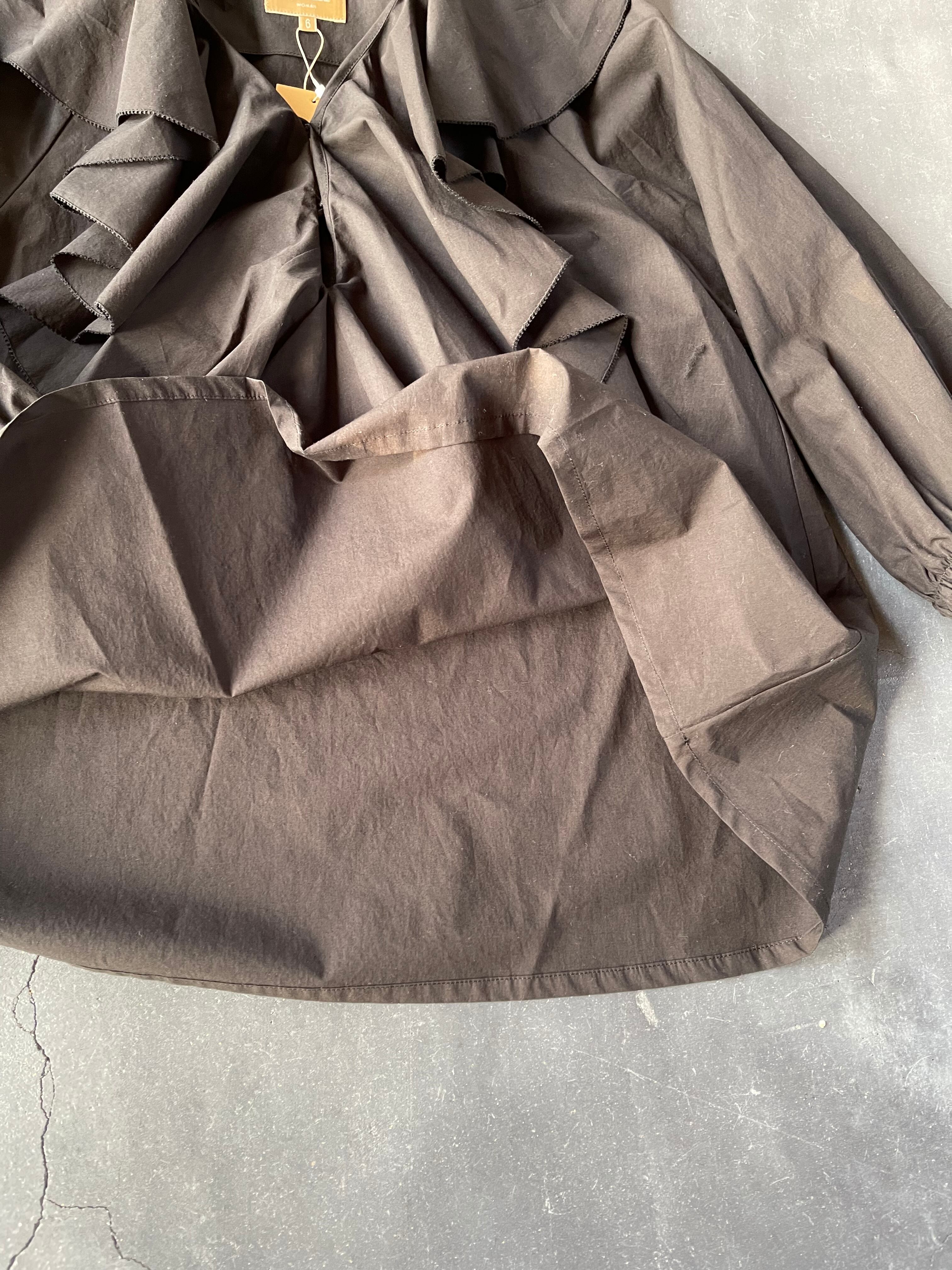 ボリュームがありながらも甘くならないラッフルは、ブランドのあらゆるミリタリーアイテムと相性が良くなる様計算し、大人の女性を引き立てます。