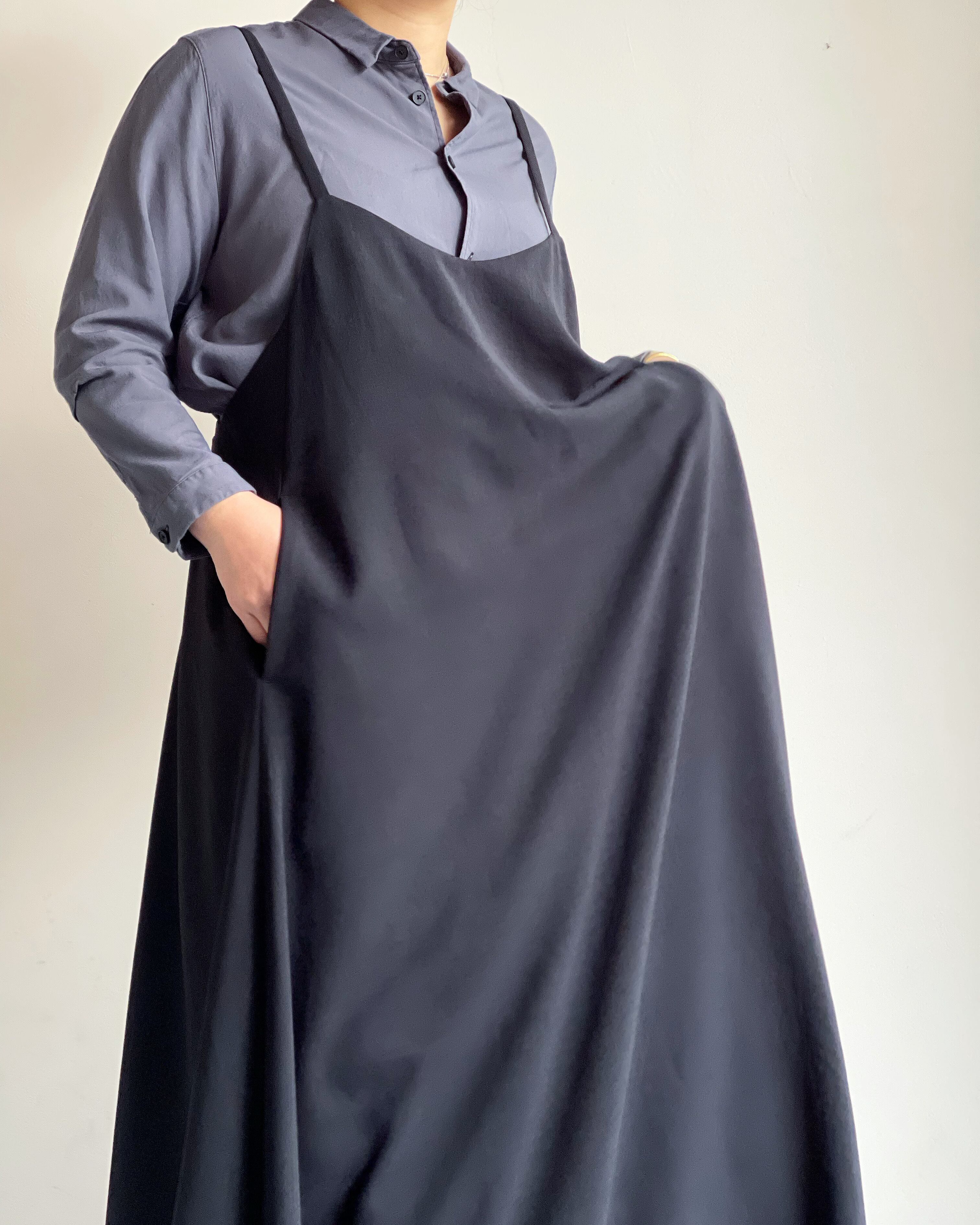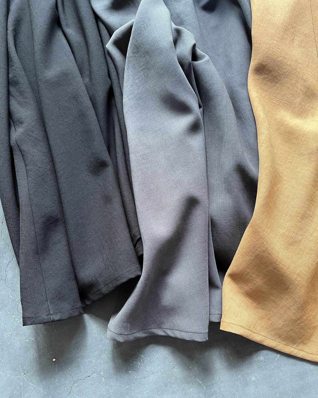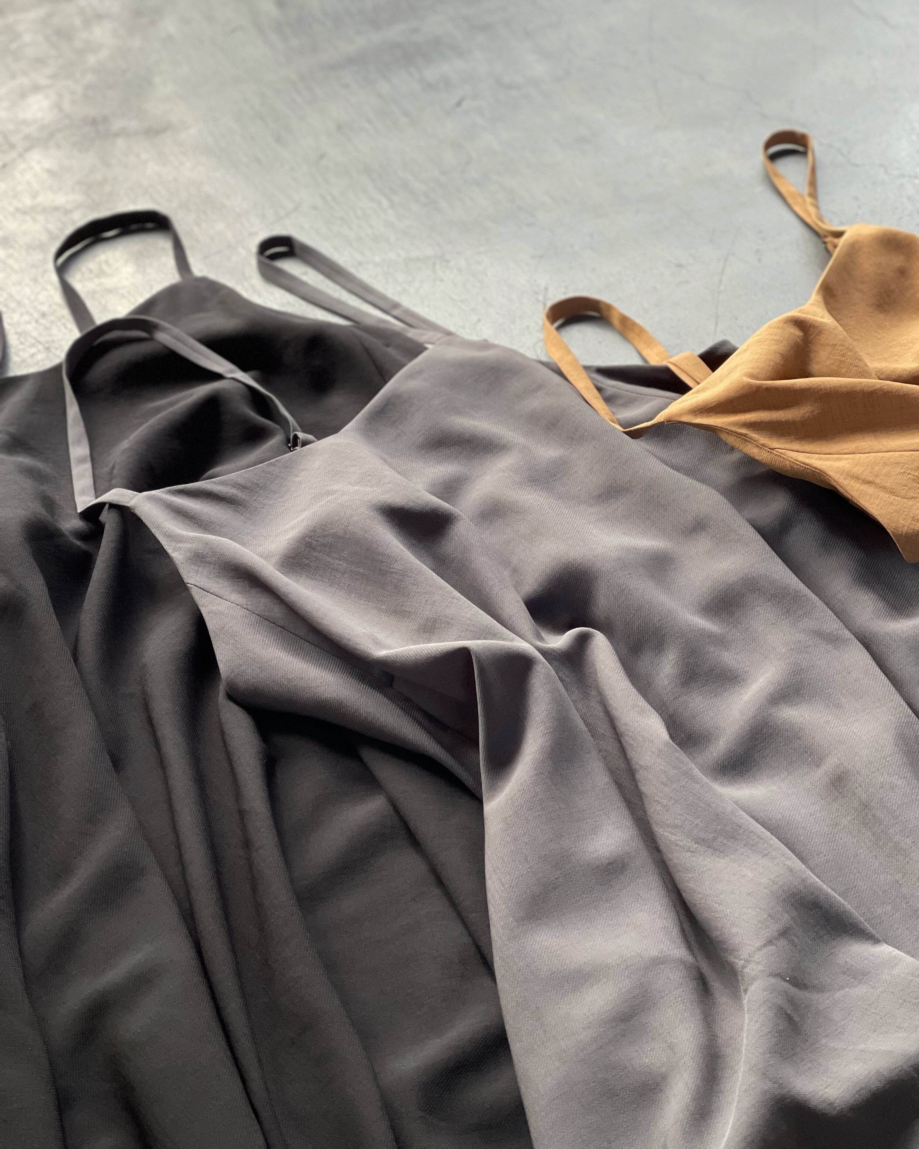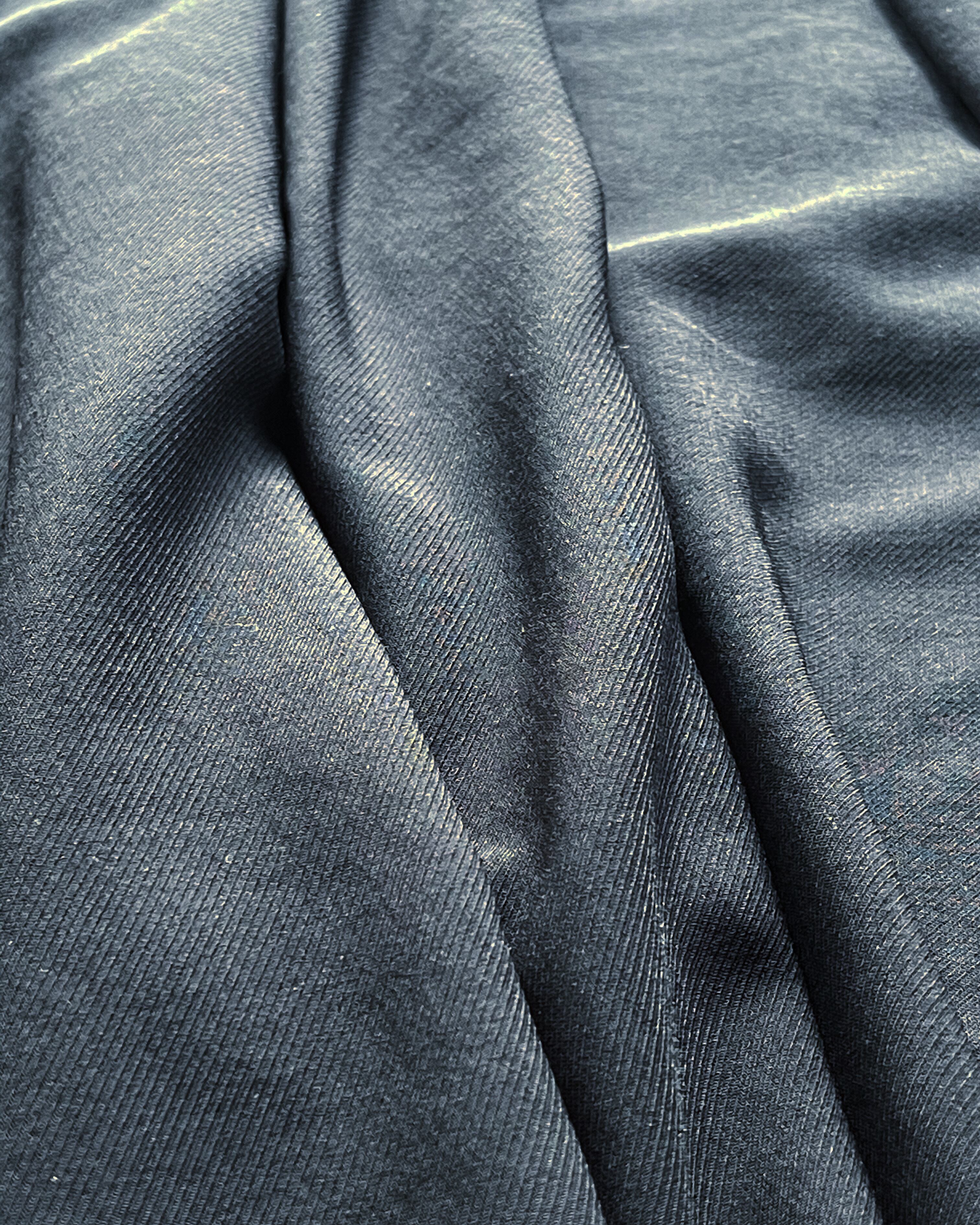 強撚としてはシャリ感も少なく、ナチュラル感を出すSY加工を入れることで落ち感と膨らみを足して、程良く柔らかさを持ち合わせた生地に仕上げています。