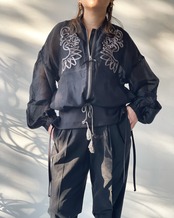 程よい透け感が人気のシアー素材に大胆な刺繍を施したデザインがポイントです。