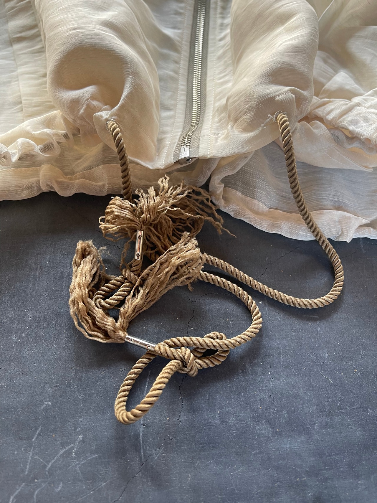 また、裾にコードを入れておりウエスト周りのシルエット調節も可能となっております。