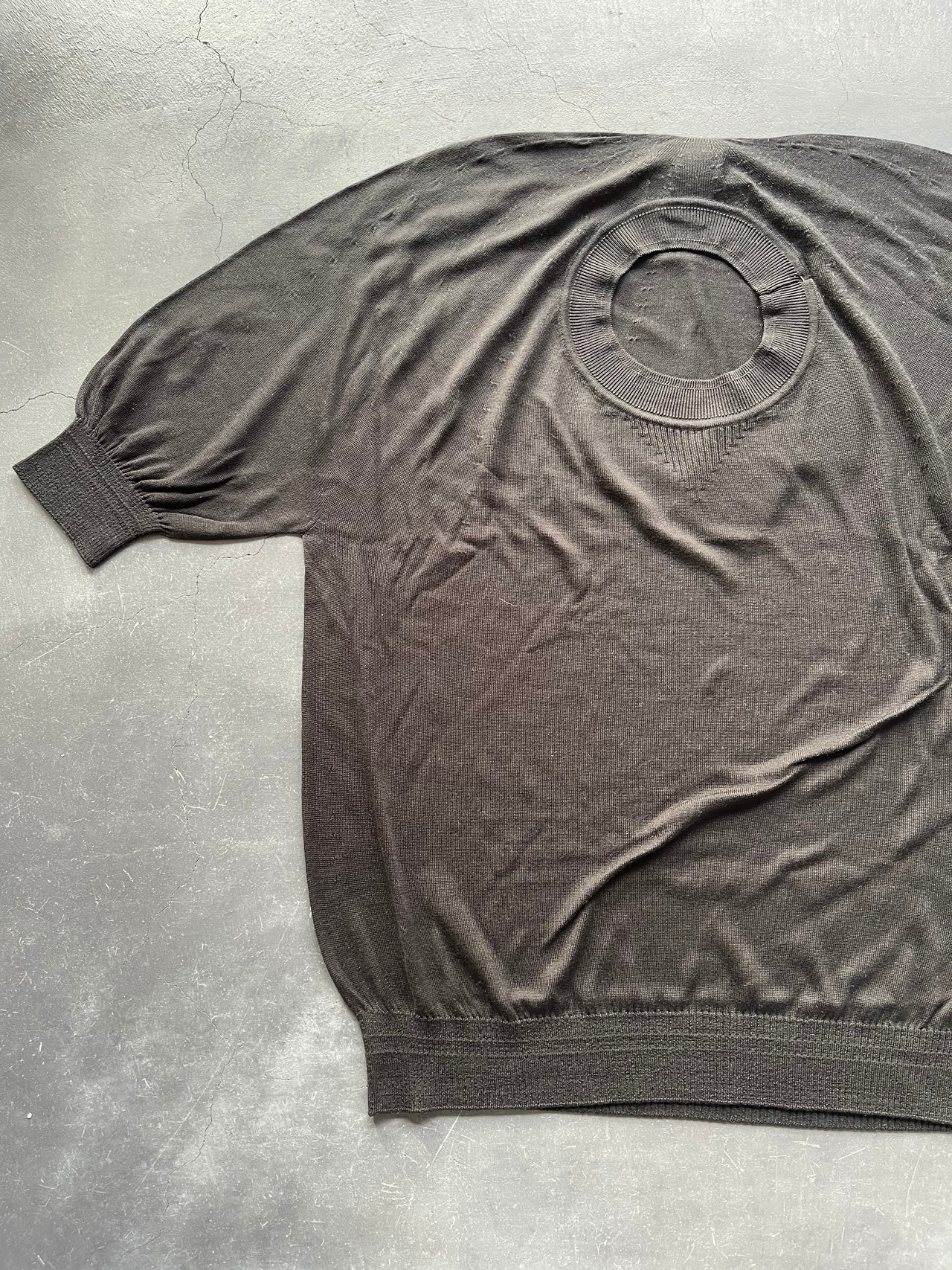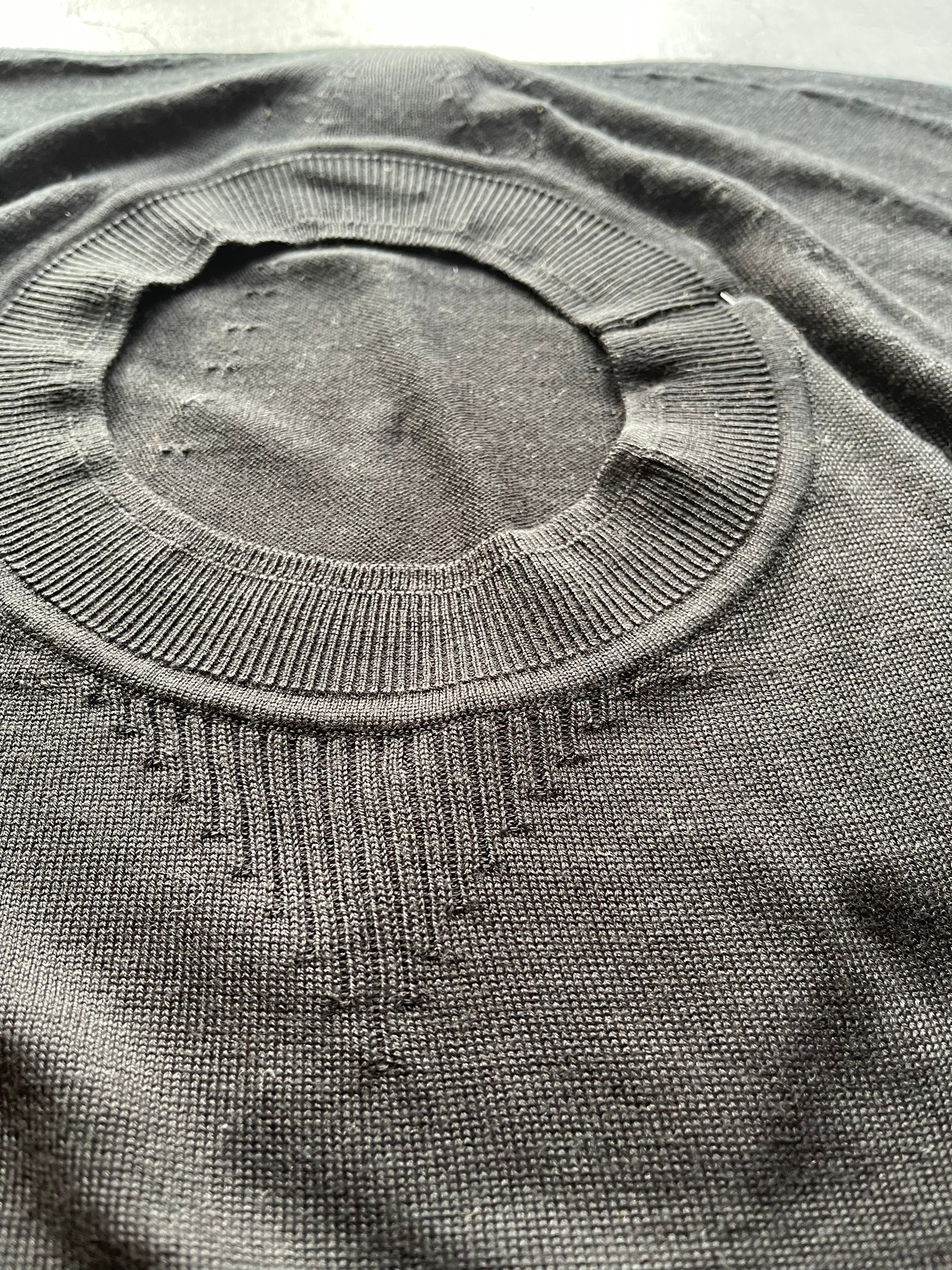 最新ホールガーメント機で作られる上質な着心地と独特なディテール・ドレープが特徴。