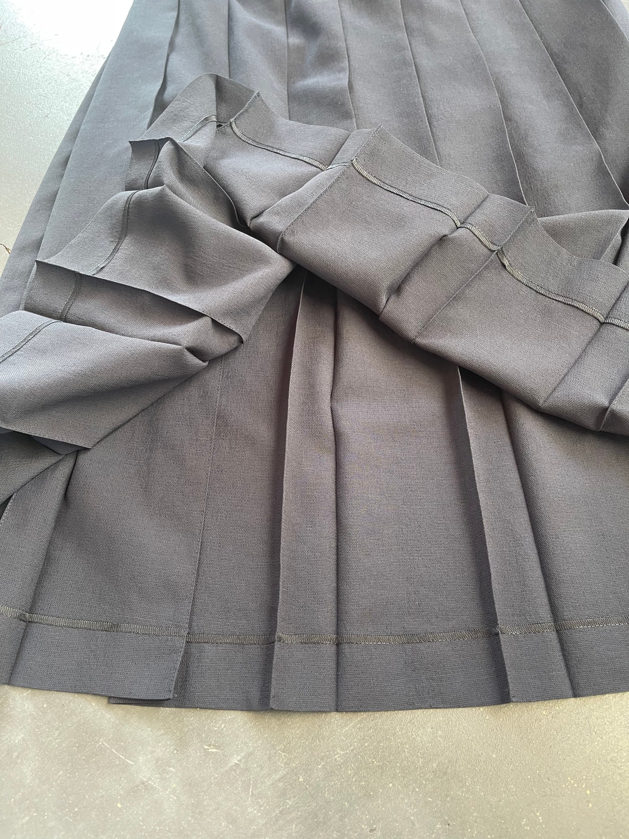 素材はドライタッチのリネンを思わせるポリエステルです。半永久的なプリーツ加工を施しています。