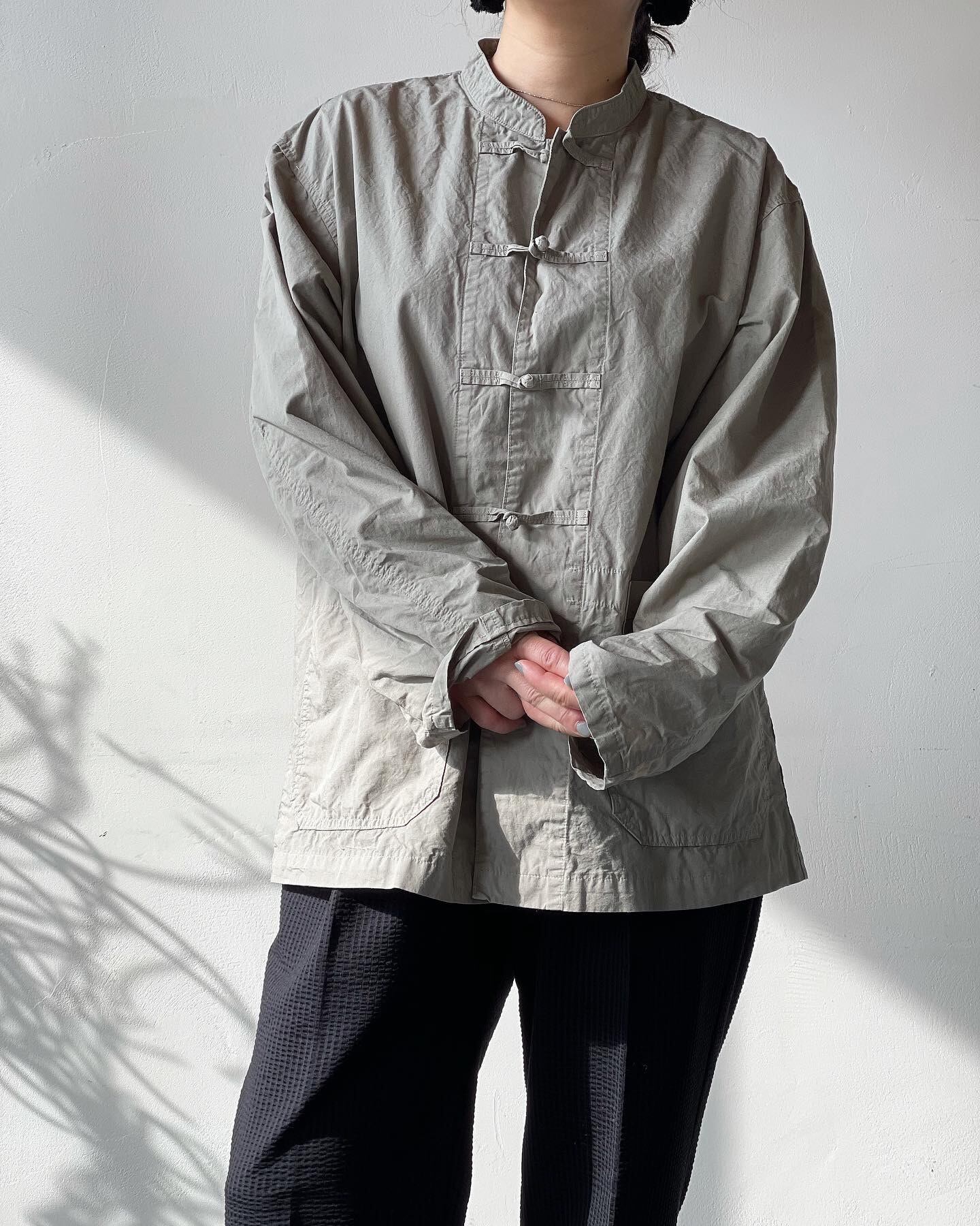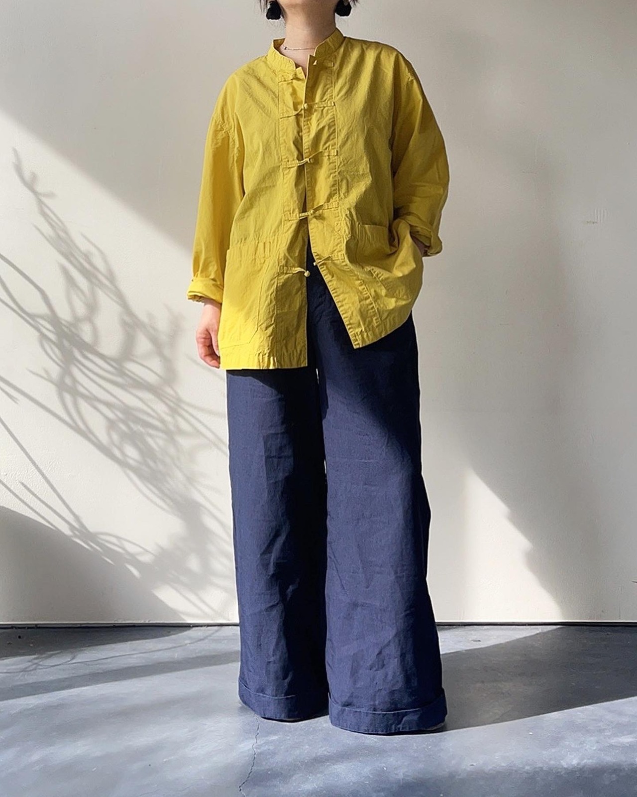 トレンド感のあるチャイナシャツは大人の方も着やすいベーシックなシルエットに。