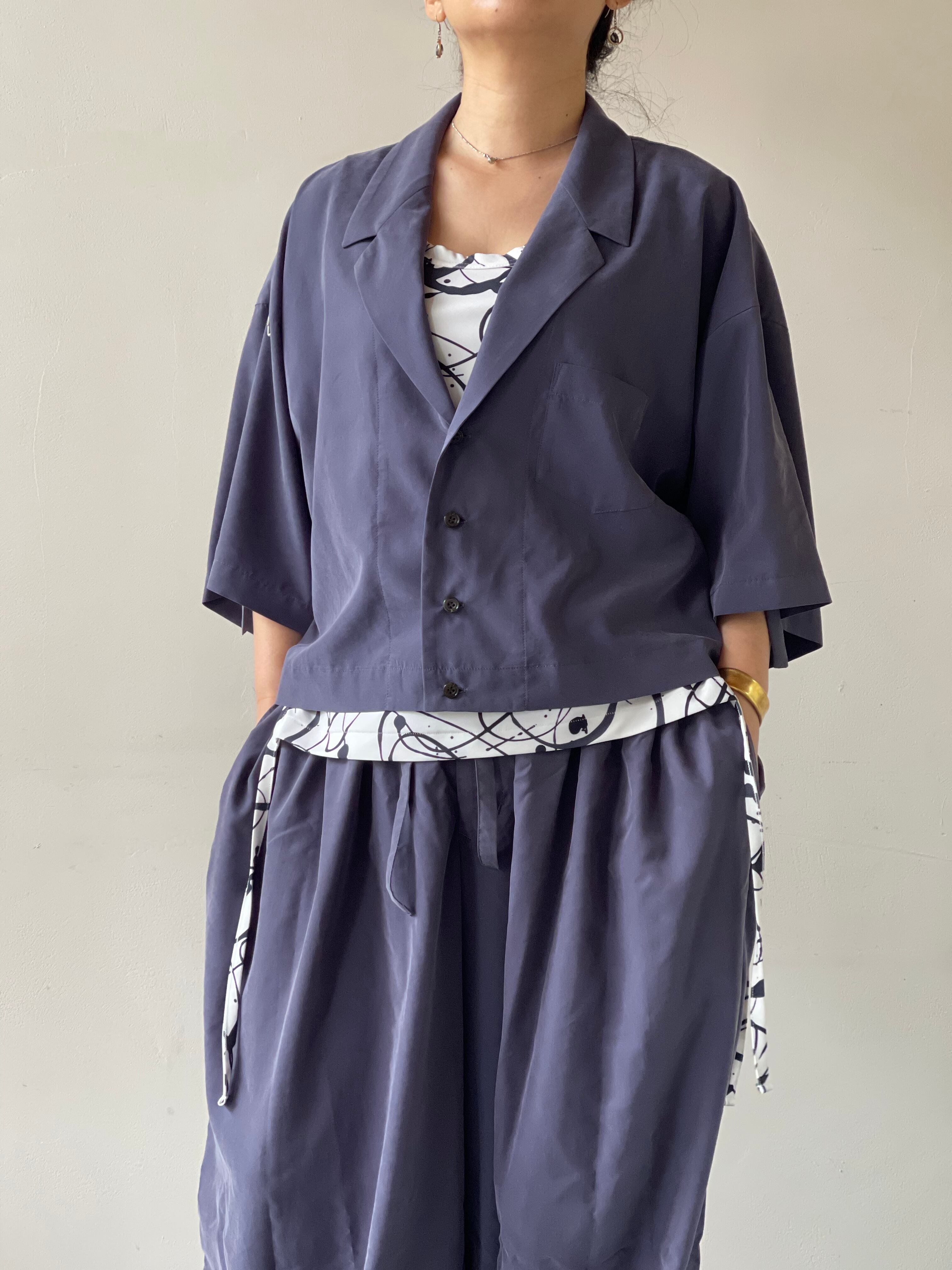 Robes&confections Washable Rayon Powder Chiffon Tailored Crop Shirt