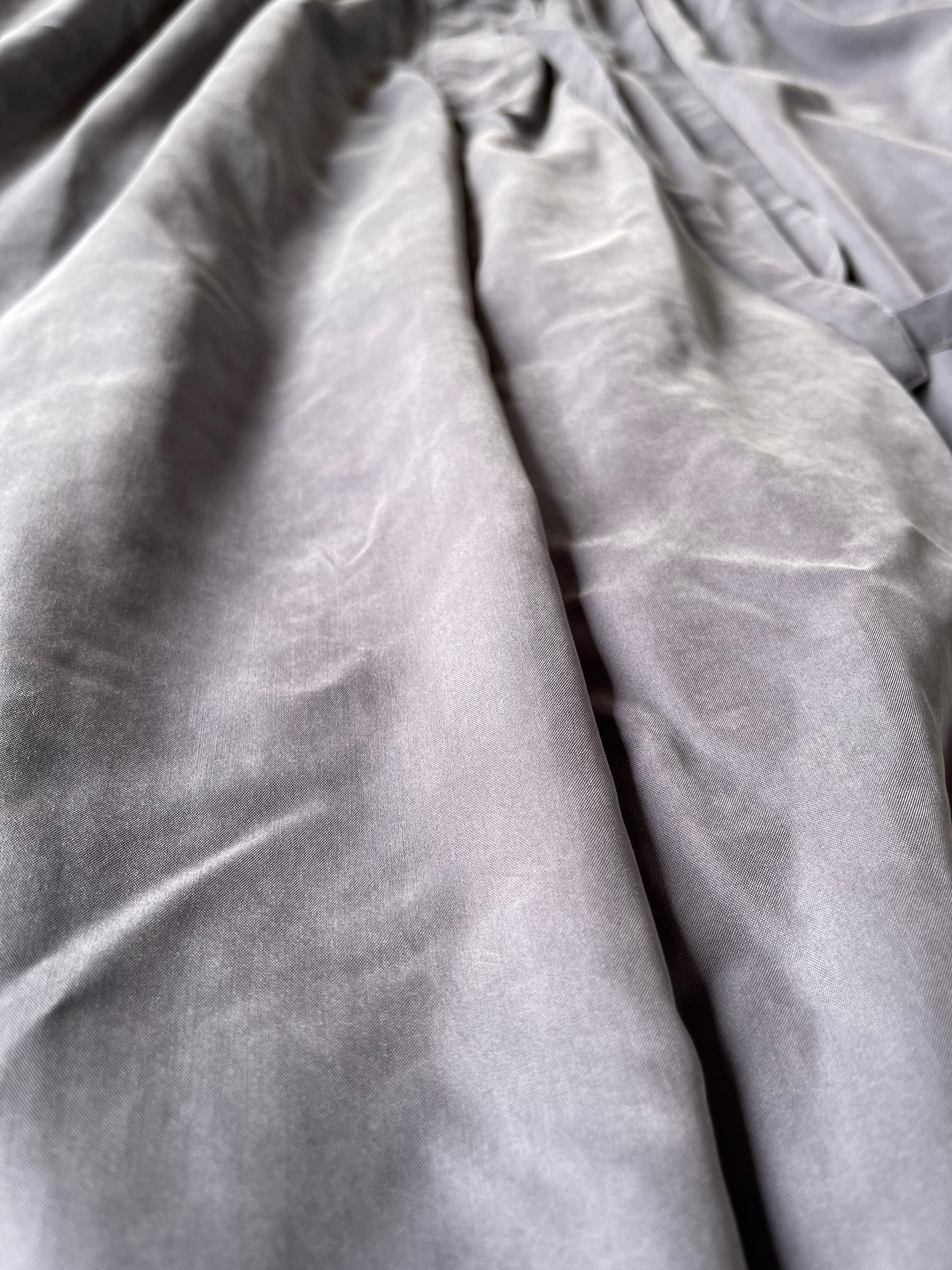 シルクのように滑らかなレーヨンとポリエステルの交織生地を使用したパンツです。