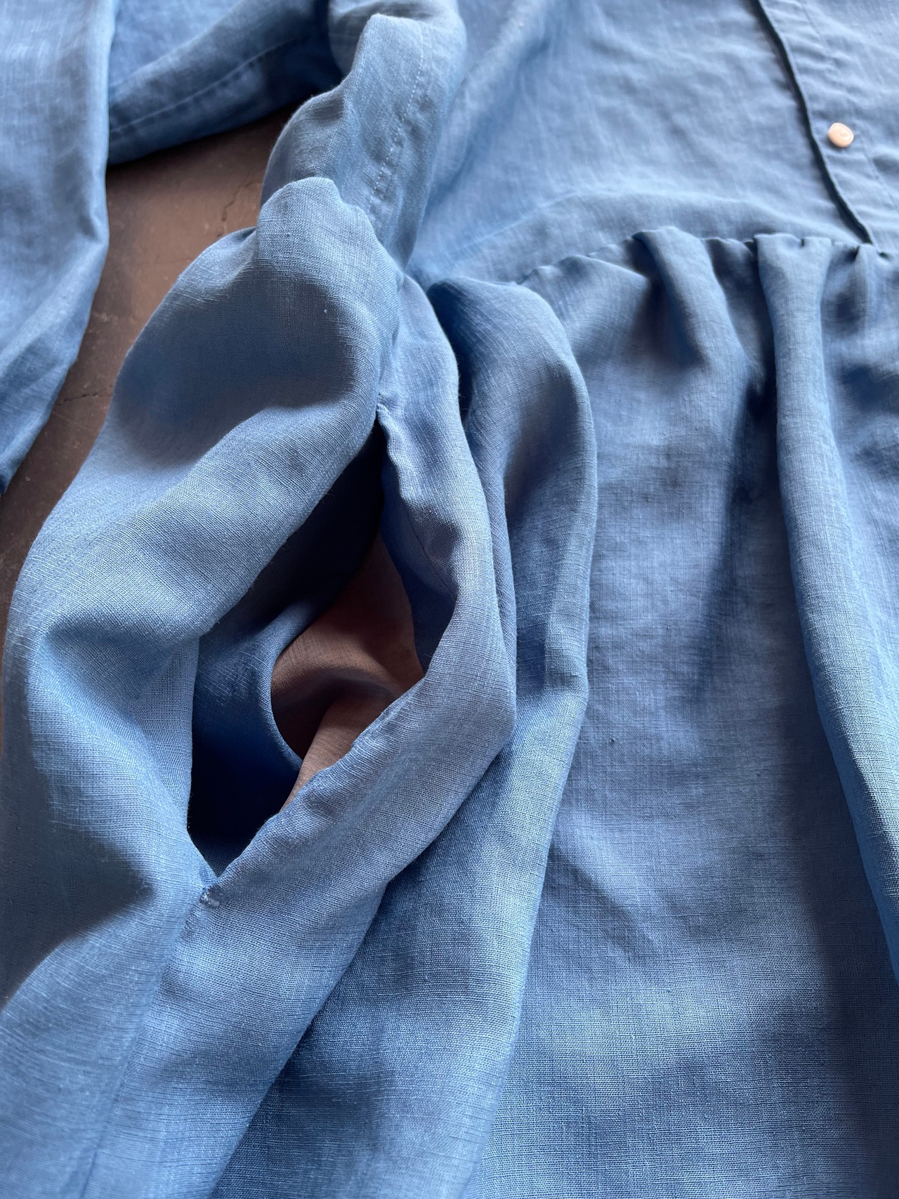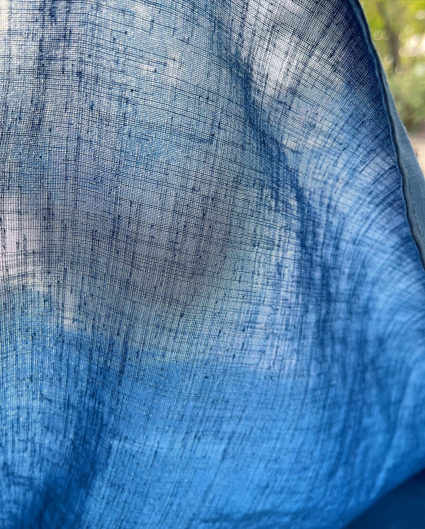 トリアセテート糸の表面にマイクロファイバーコーティングを施し麻のような質感を出しています。とてもシワになりにくく、薄く軽い生地感です。