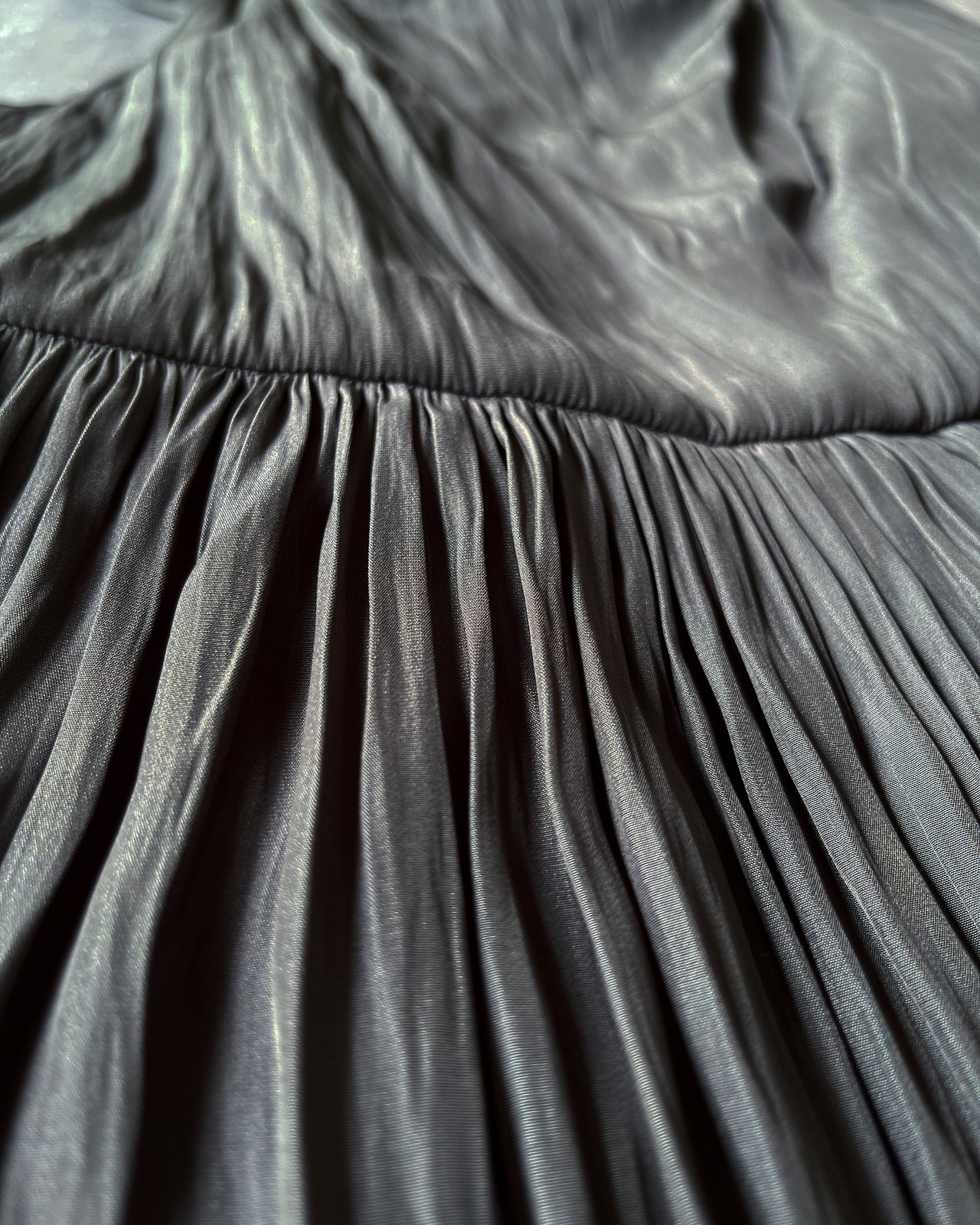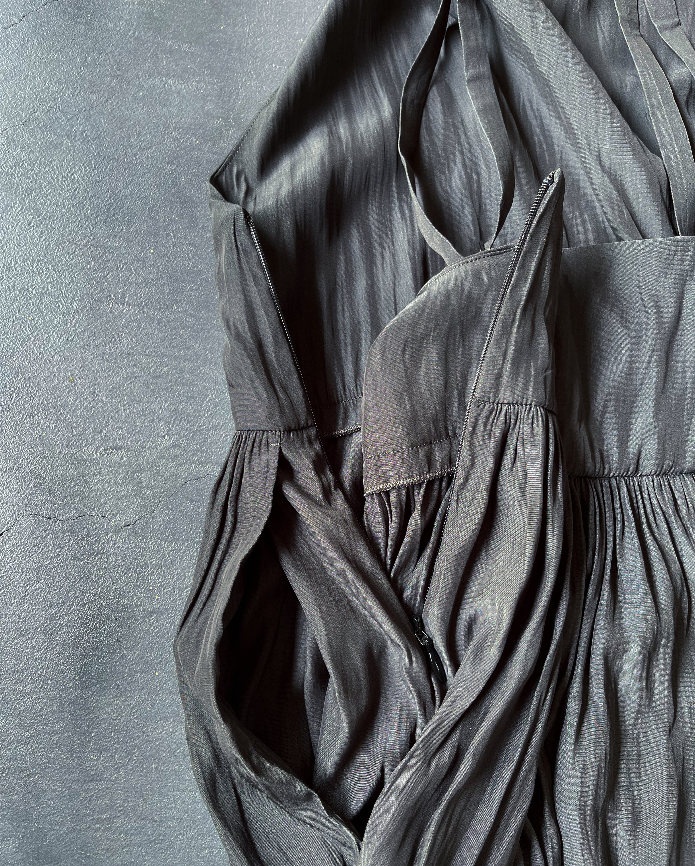 波のようなシボが美しいクレープ生地のキャミソールワンピース。
