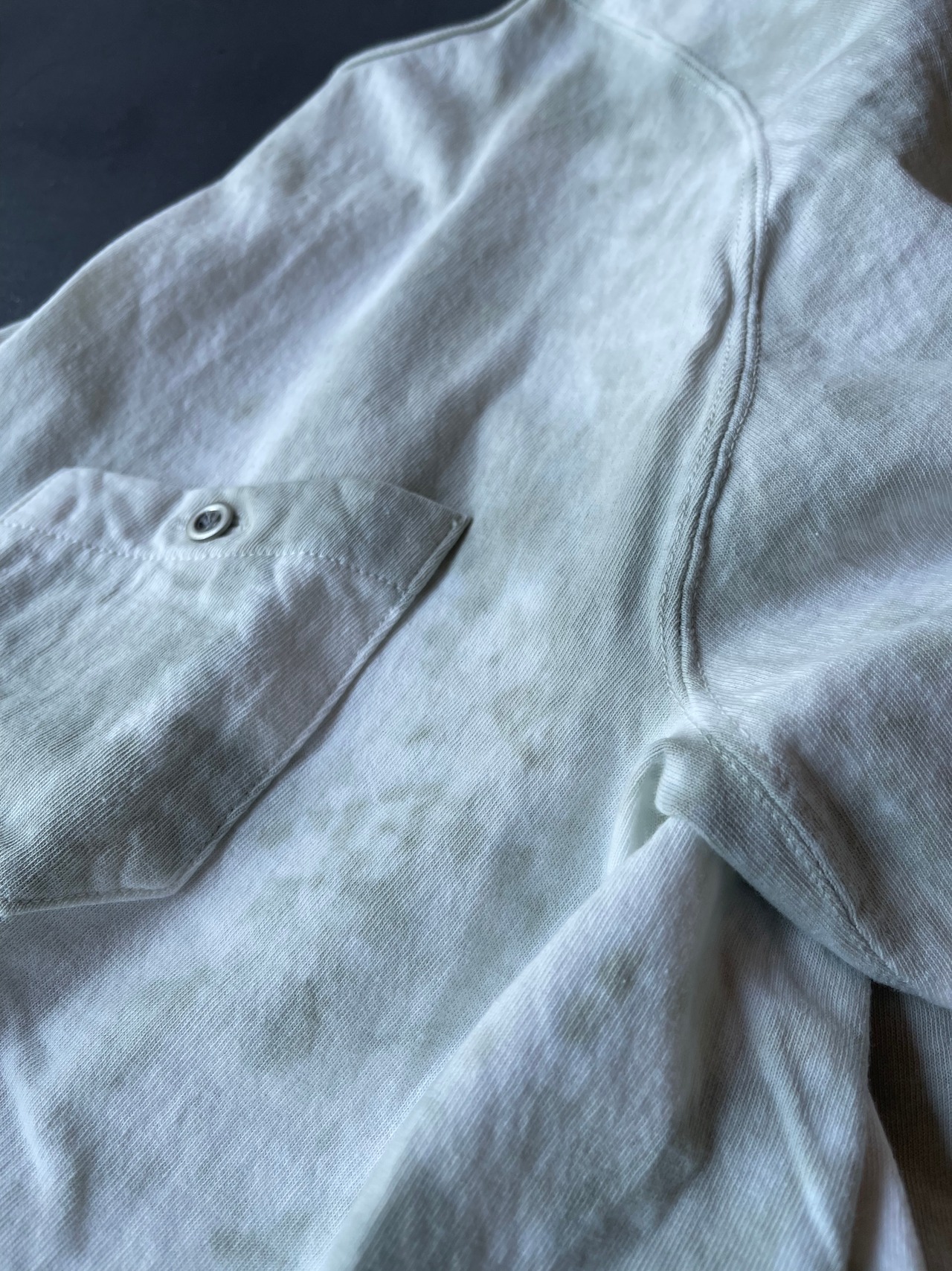 定番のオープンエンドコットンのシンプルなポケットTシャツにタイダイ染めが登場です。