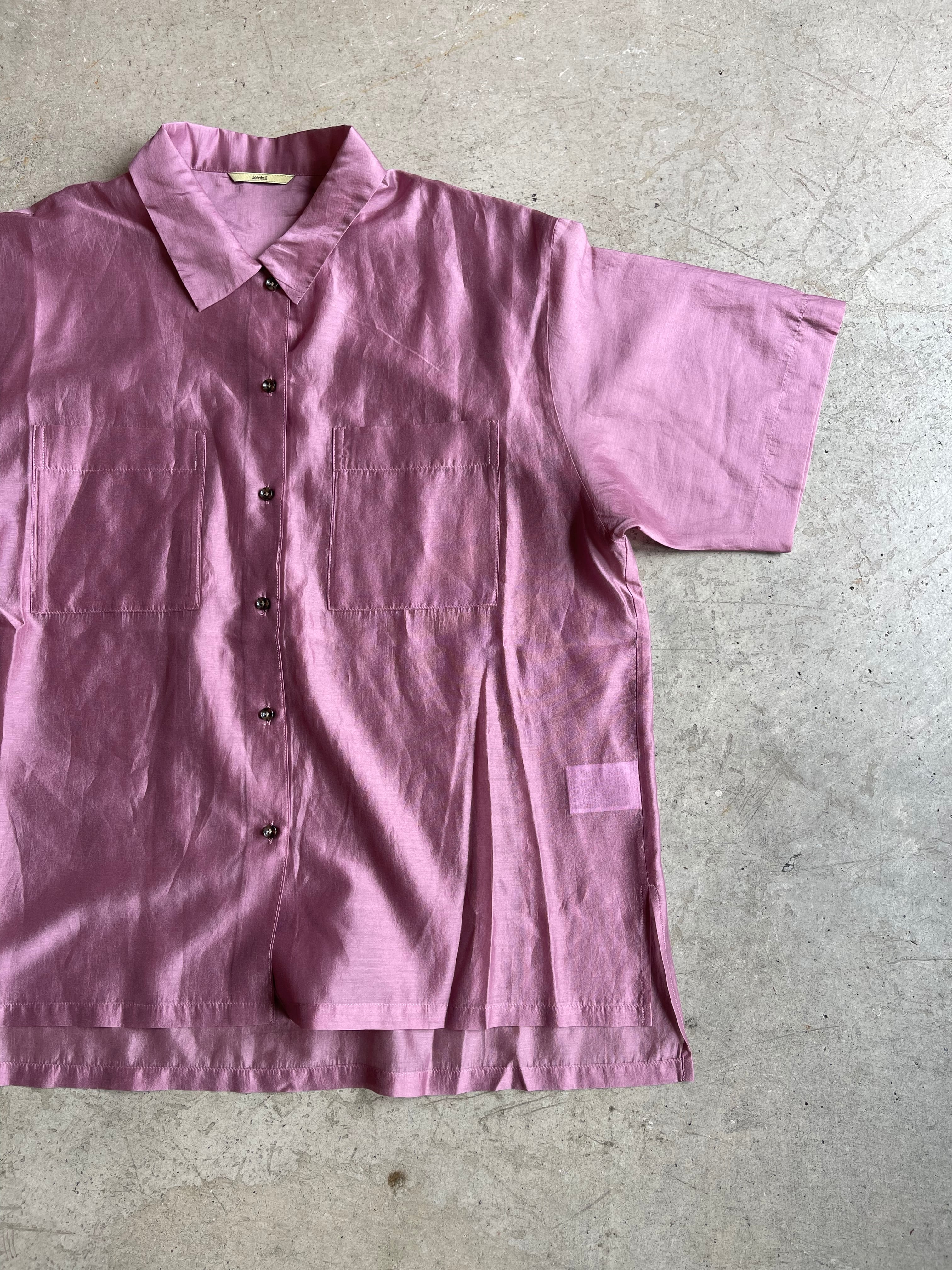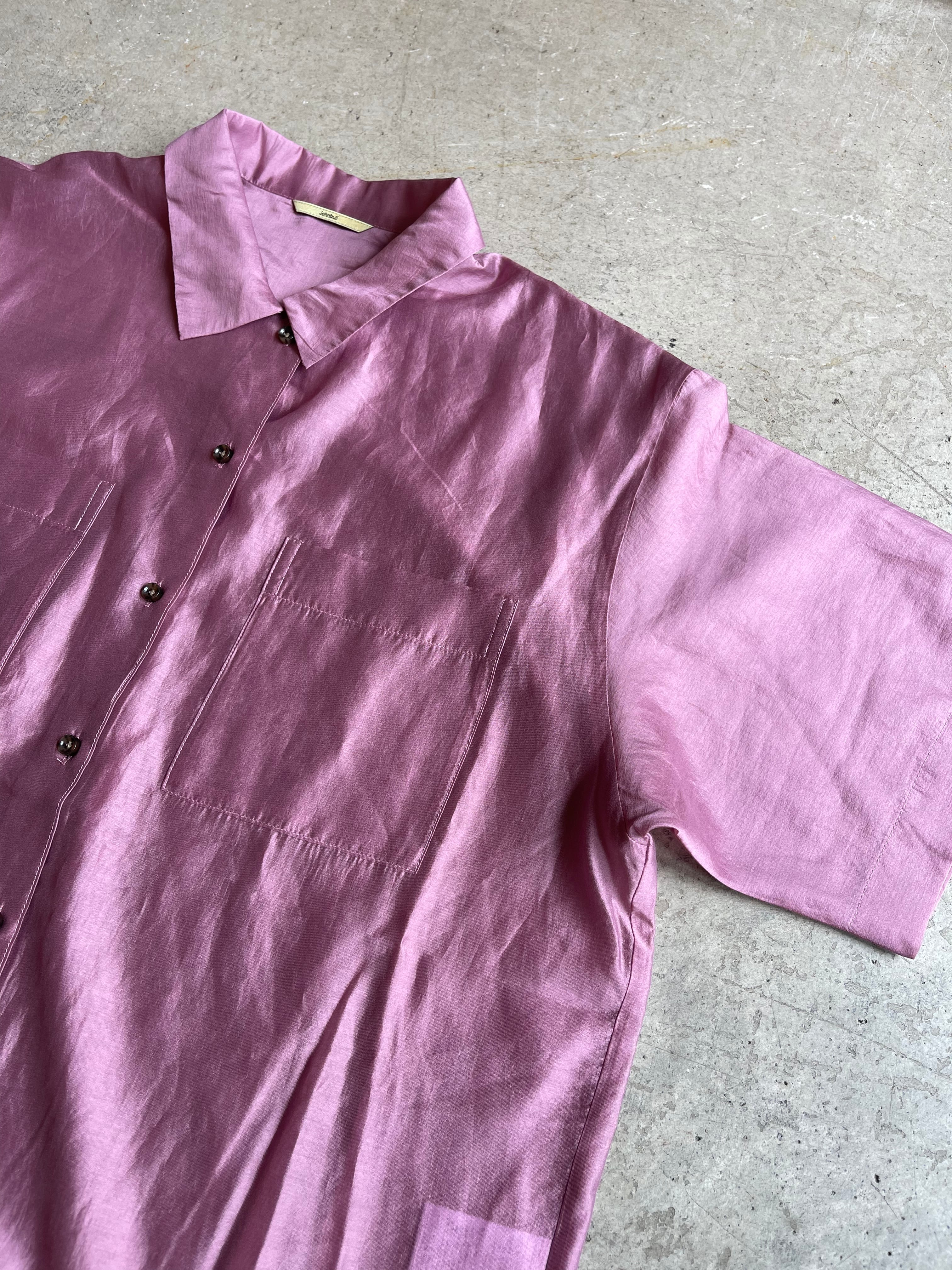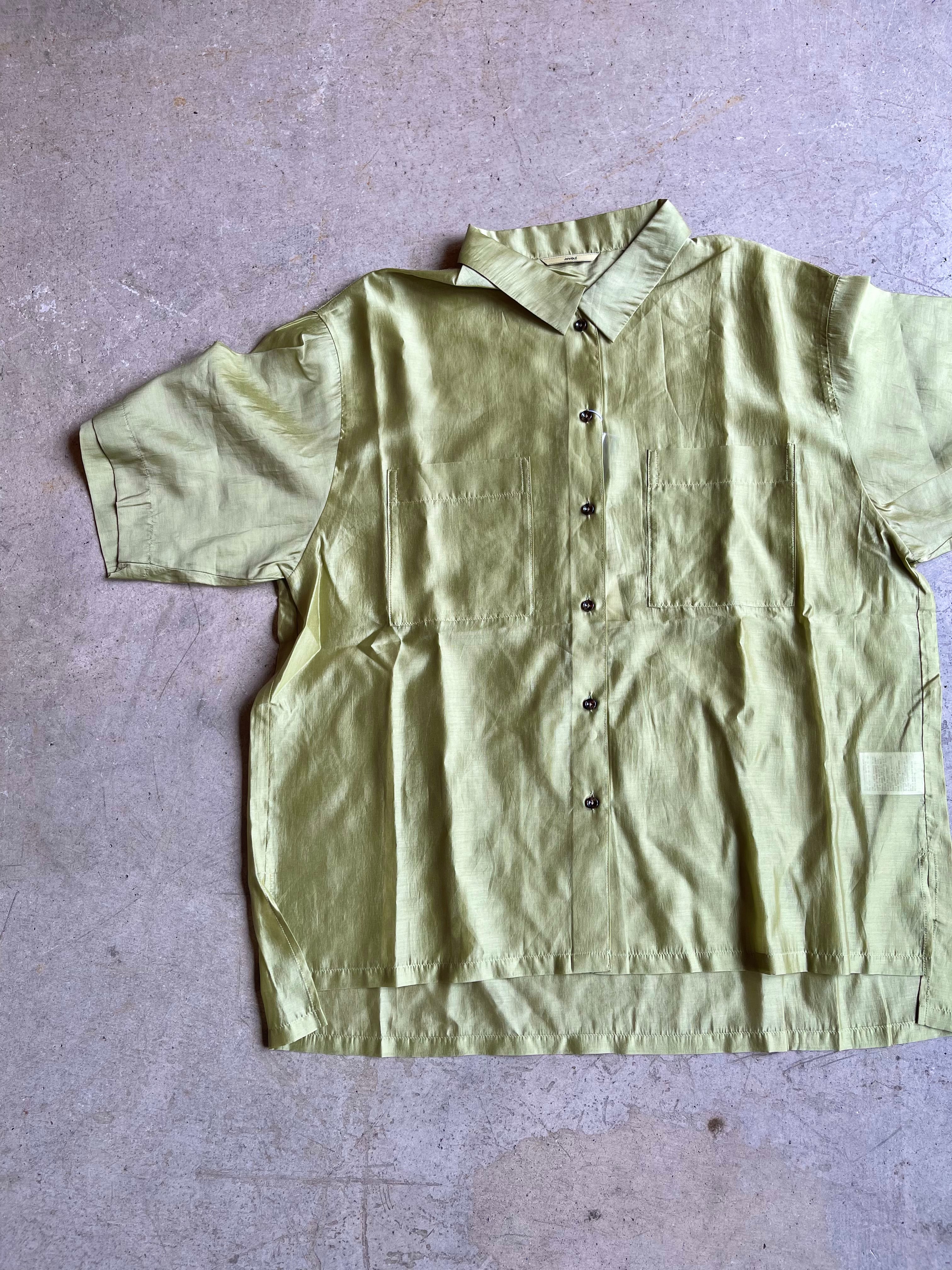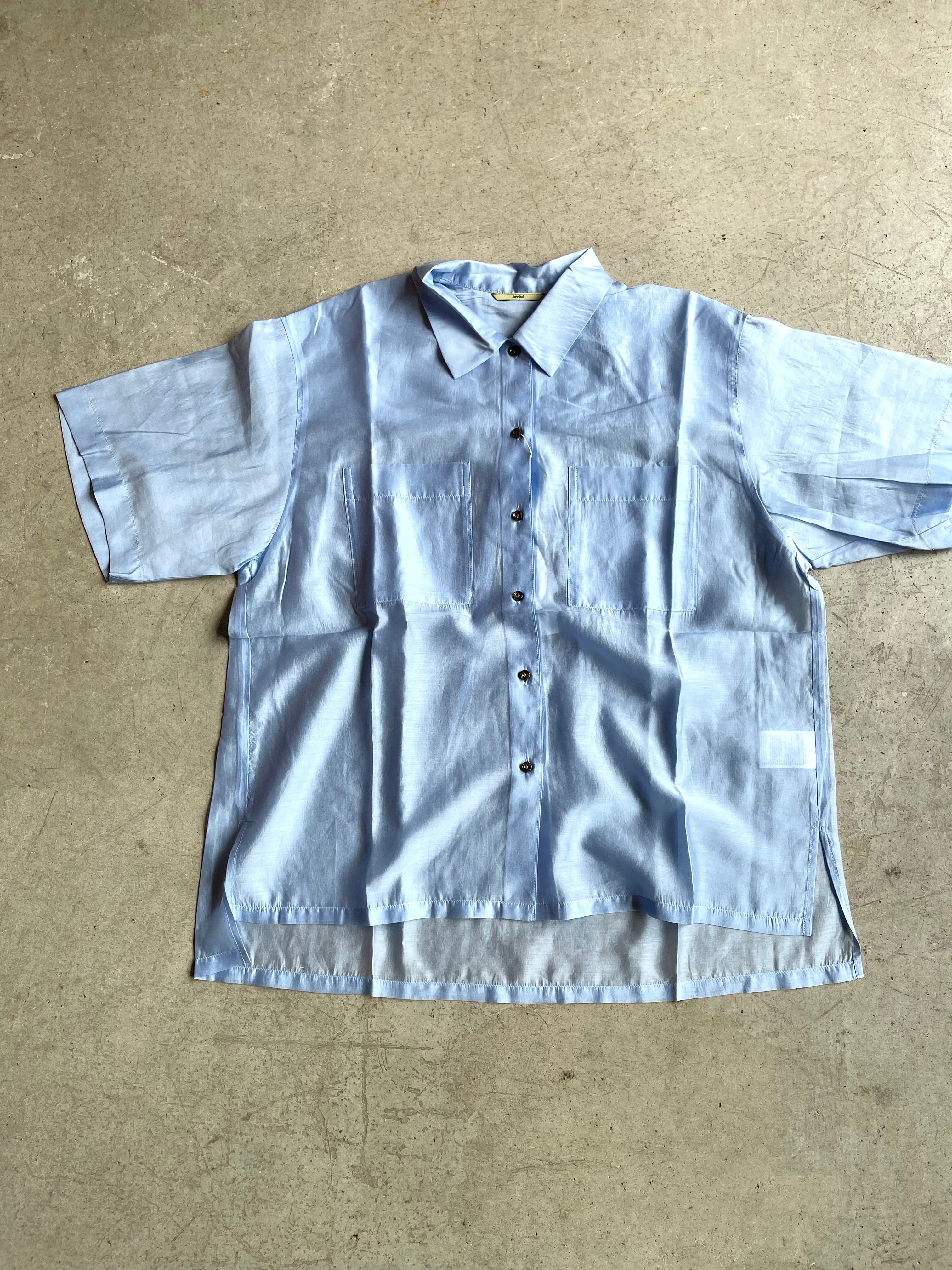 透け感が特徴のシアー素材を使用した5分袖シャツ。