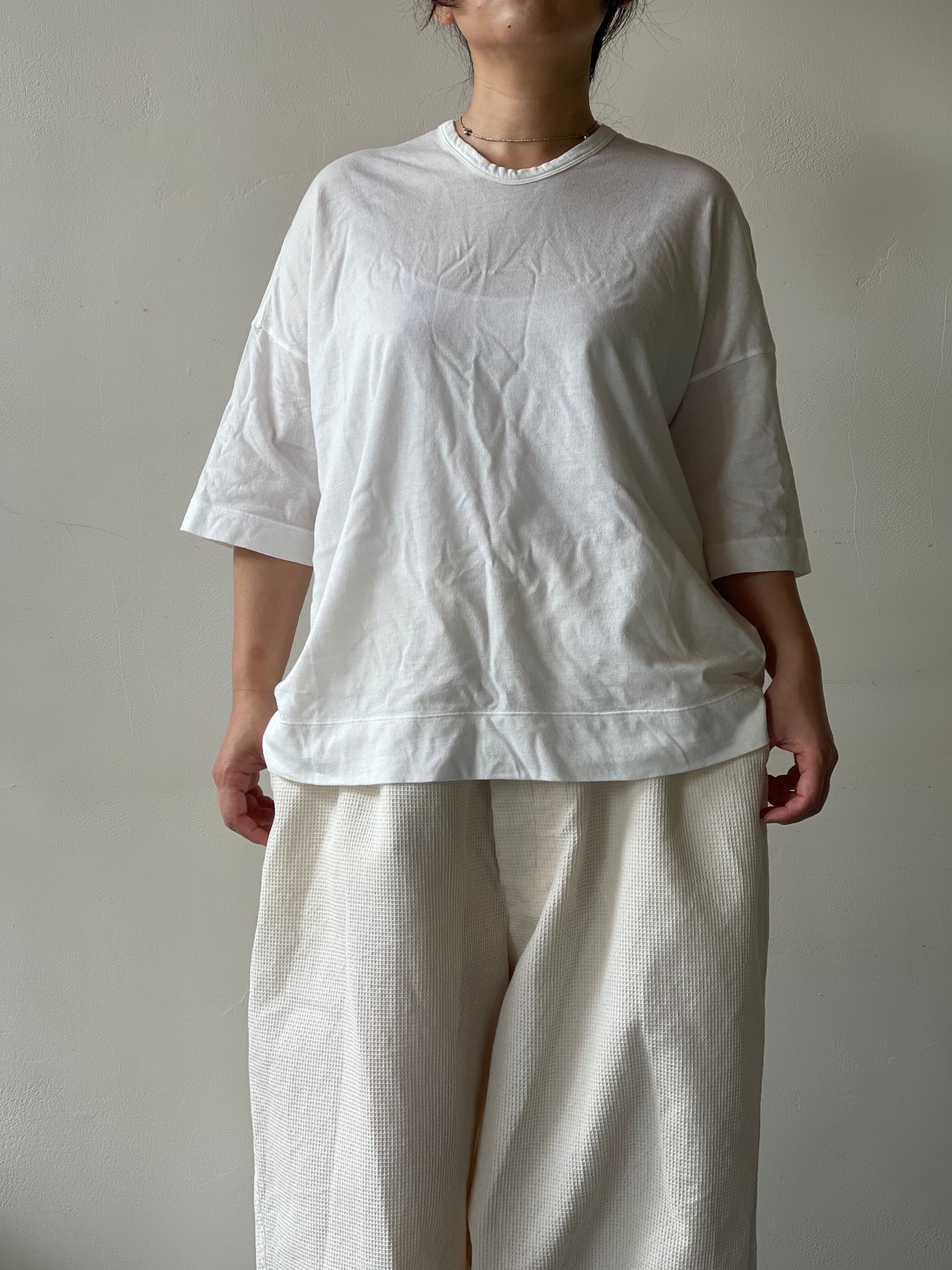 細かい凹凸感があり、やわらかなコットンを使用した着心地抜群のオーバーサイズプルオーバー。
