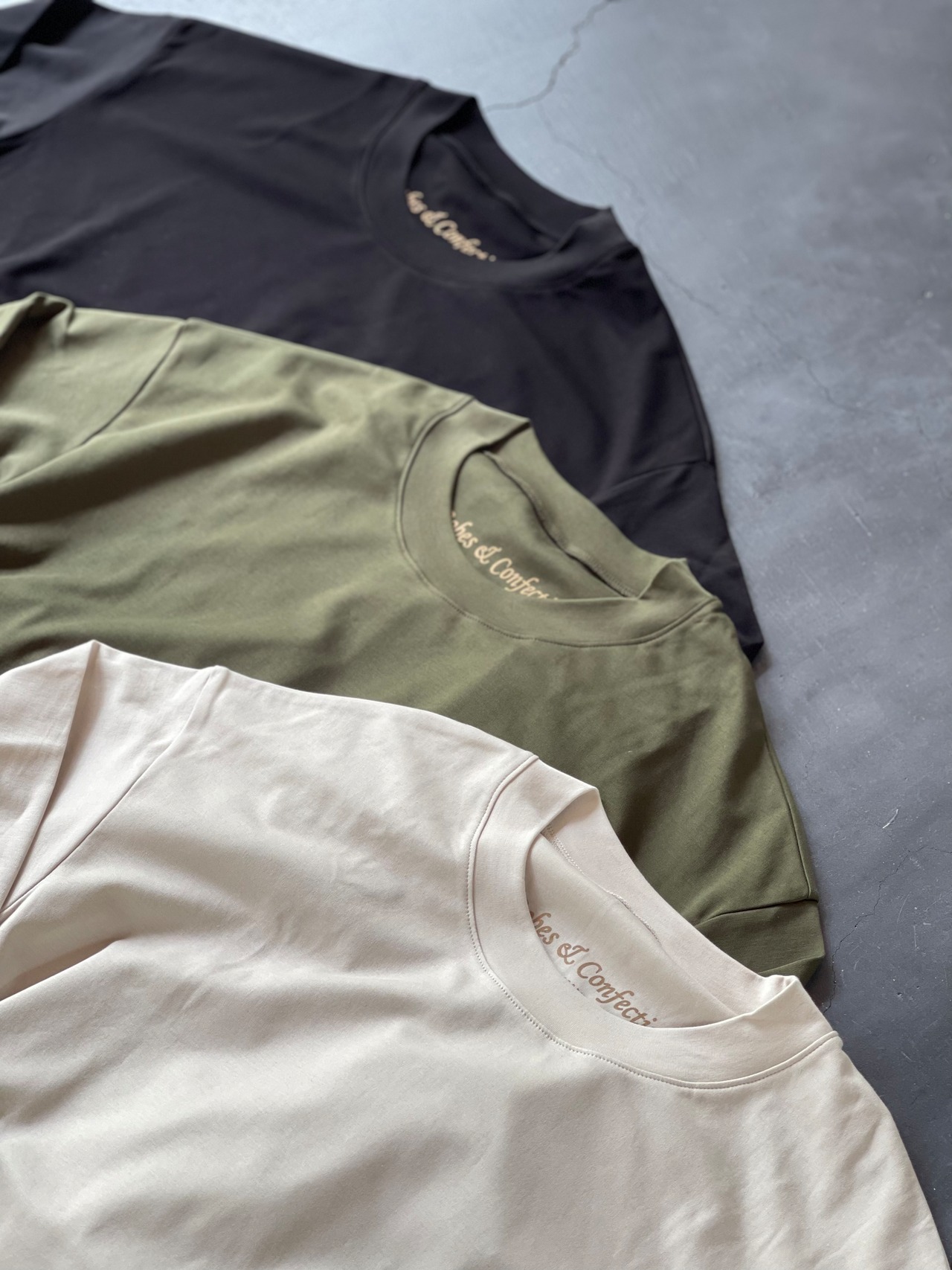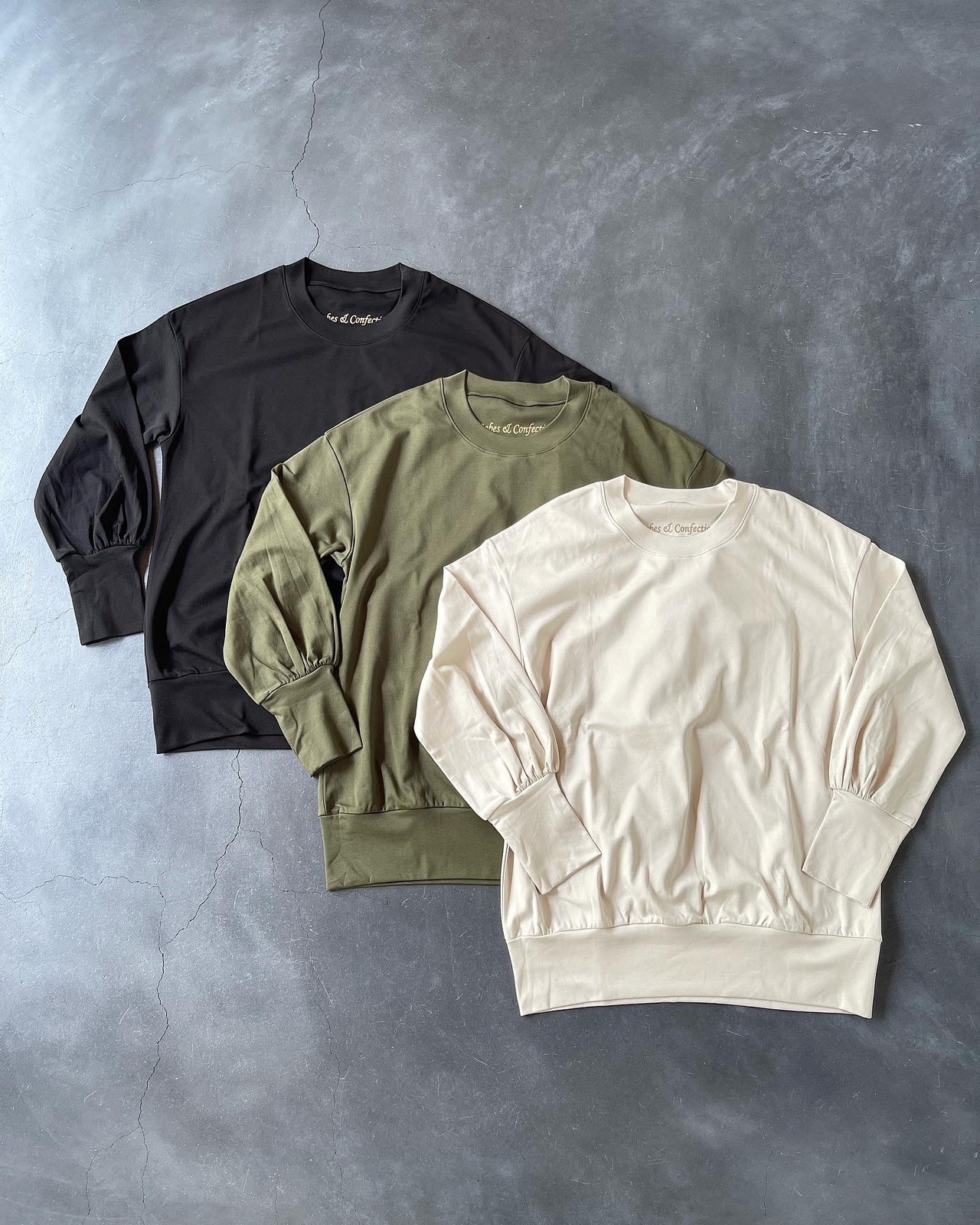 ゆったりのサイジング、裾、袖口はリブになっており、スッキリ着て頂けます。