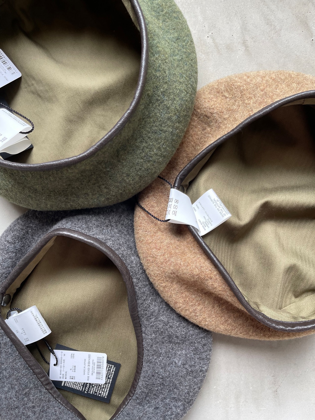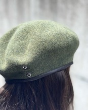 レザーパイピングがアクセントのウールベレー。