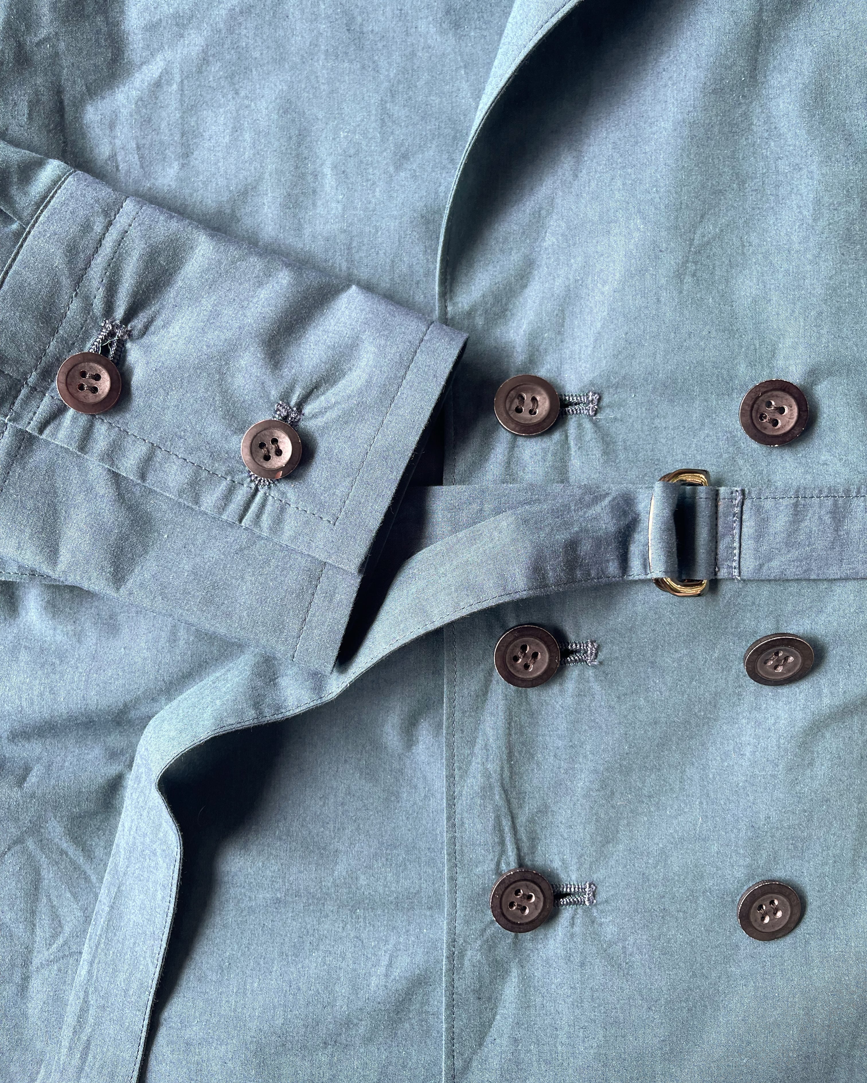 縦糸横糸それぞれ別色に先染してから織ることで、玉虫調の深みを表現した高密度オーガニックコットンシャンブレーを使用したシャツジャケット。