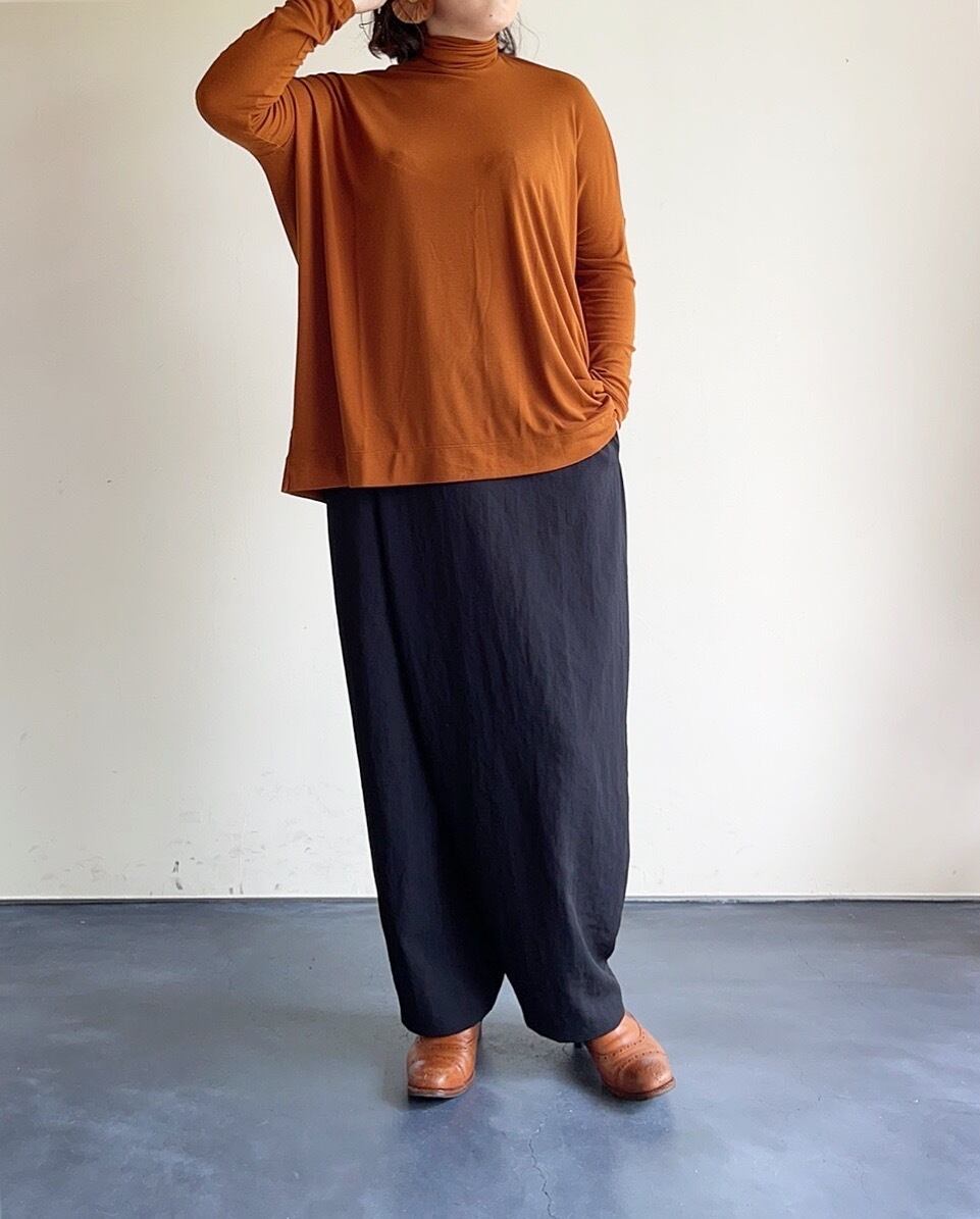 生地はストレッチが効くタイトに使える生地ですが あえてルーズな部分を作ってゆったりとした雰囲気に仕上げています。