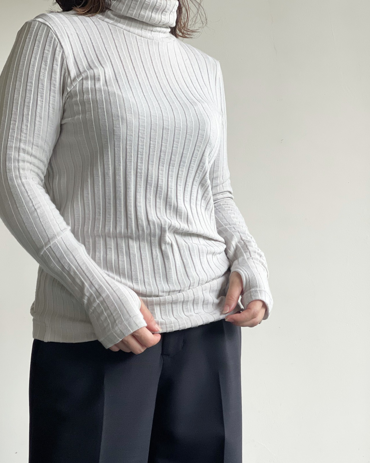 環境に優しい製法で再生可能な木材パルプから作られる再生繊維テンセルを使用し、しなやかさとストレッチ製に優れたストレスフリーなワイドリブ。