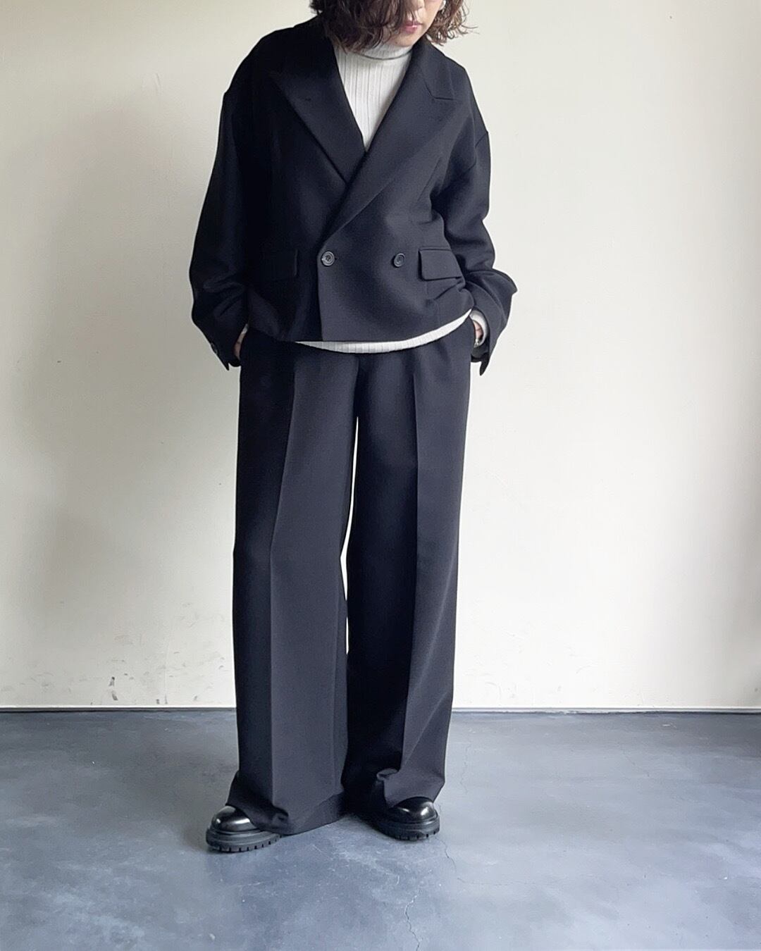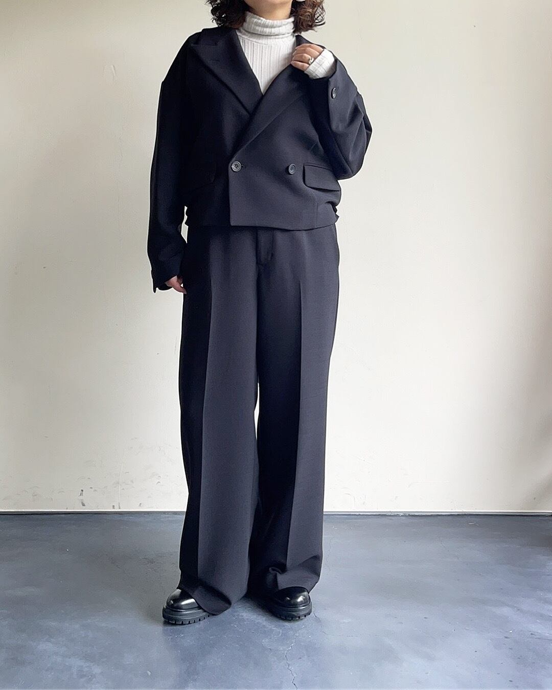 丈短く身幅広めのバランスのとりやすいシルエットです。