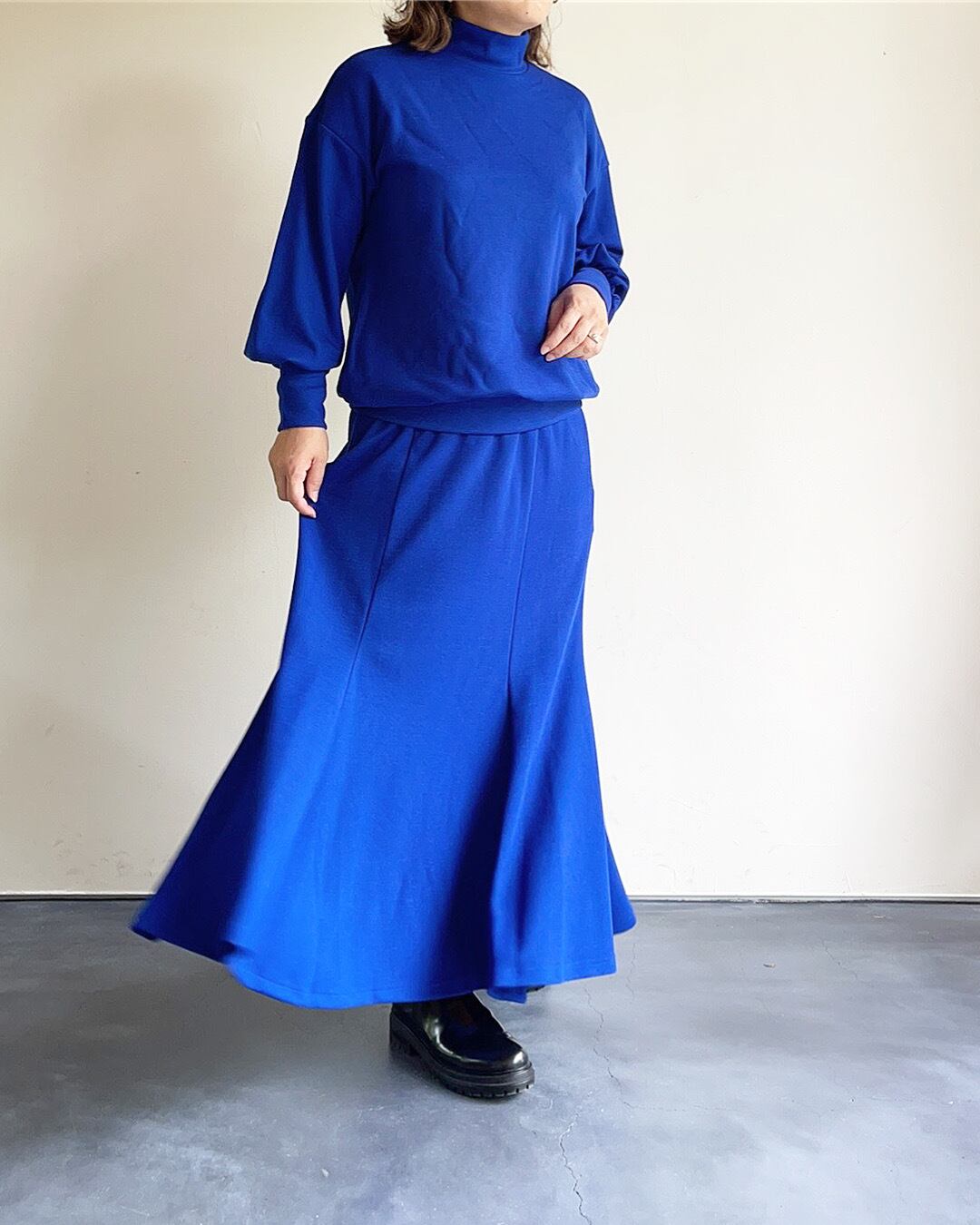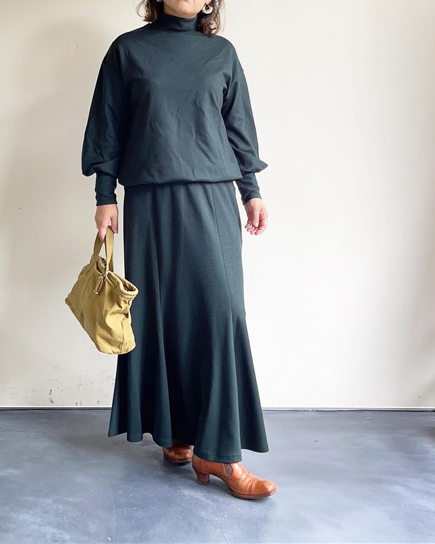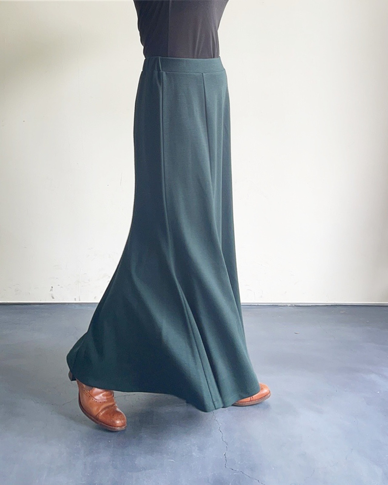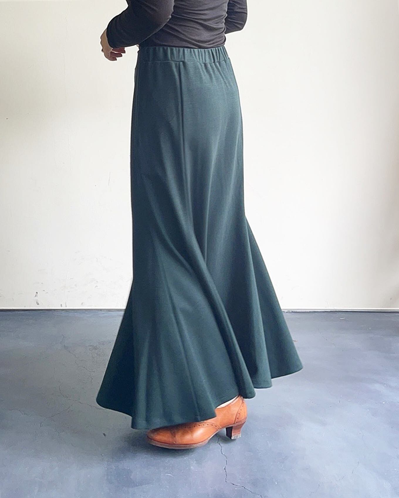 繊維径が非常に細い上質なSuper 120’s ウールにポリエステル糸を組み合わせ、ウール本来のソフトで暖かいタッチとイージーケア性を同時に発揮する高密度ジャージー素材を使用した、マーメイドスカート。