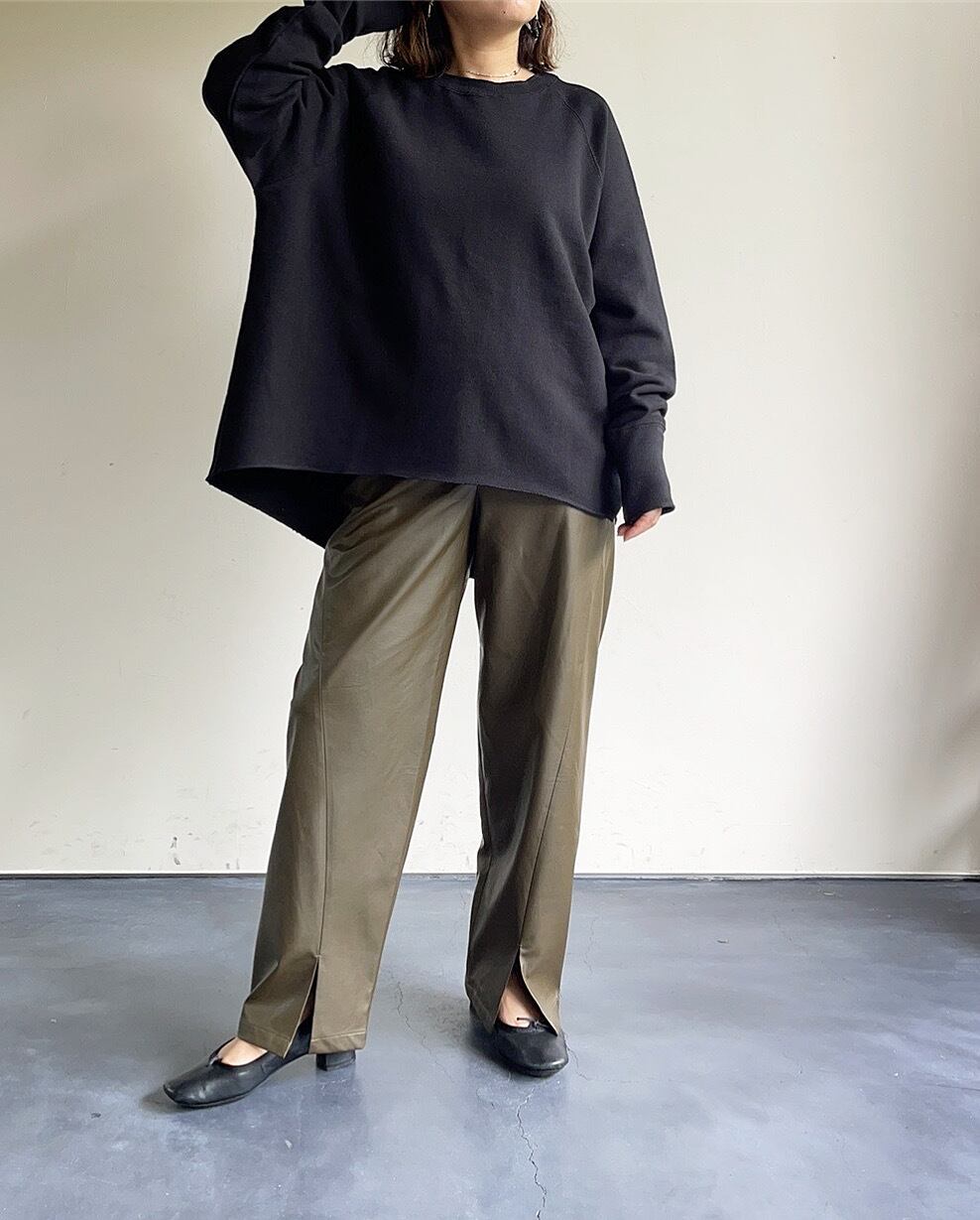 また、バックの裾部分をラウンドさせやや丈を長めのため幅広いシルエットのボトムスと合わせて頂けます。