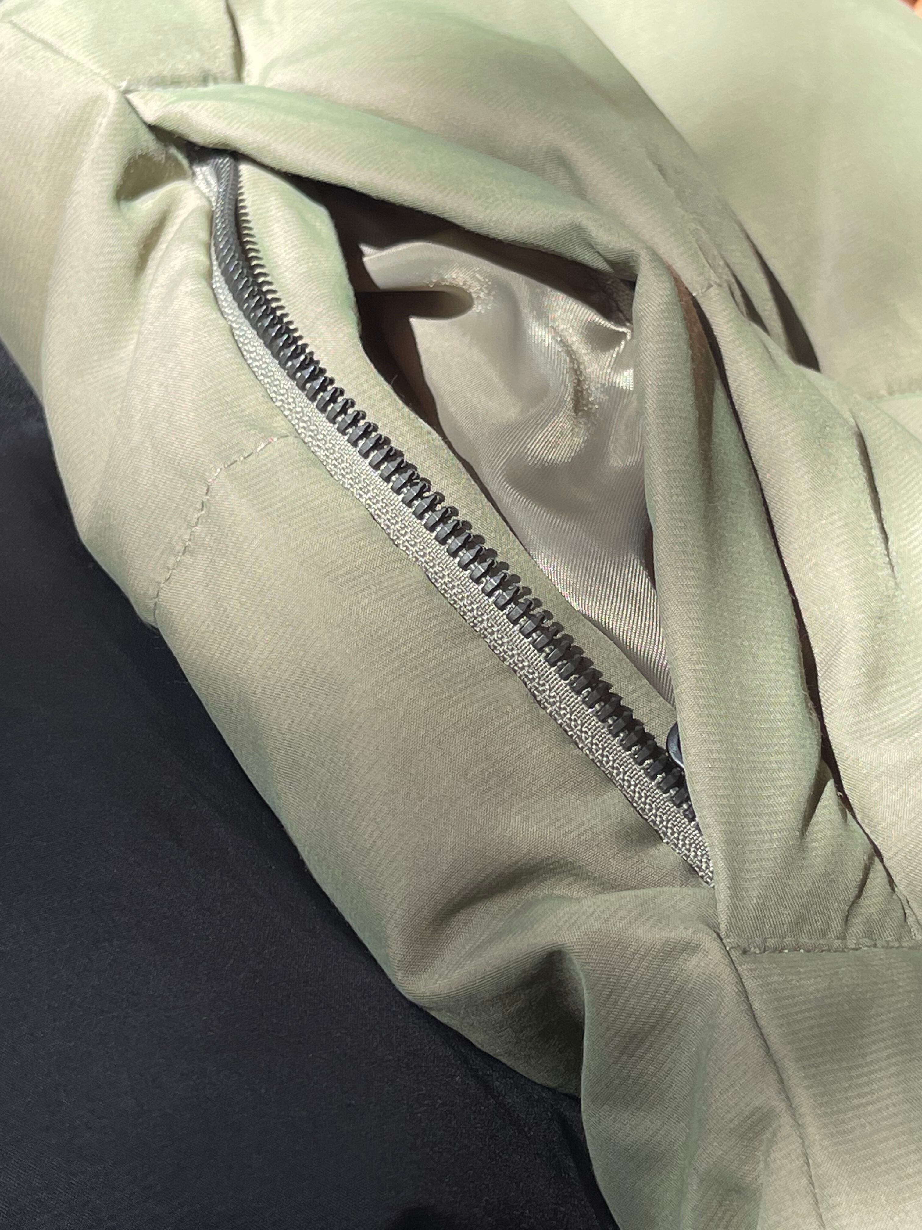 滑らかな程よい光沢と落ち感もある表生地のためカジュアルになり過ぎず上品な印象で着用できます。