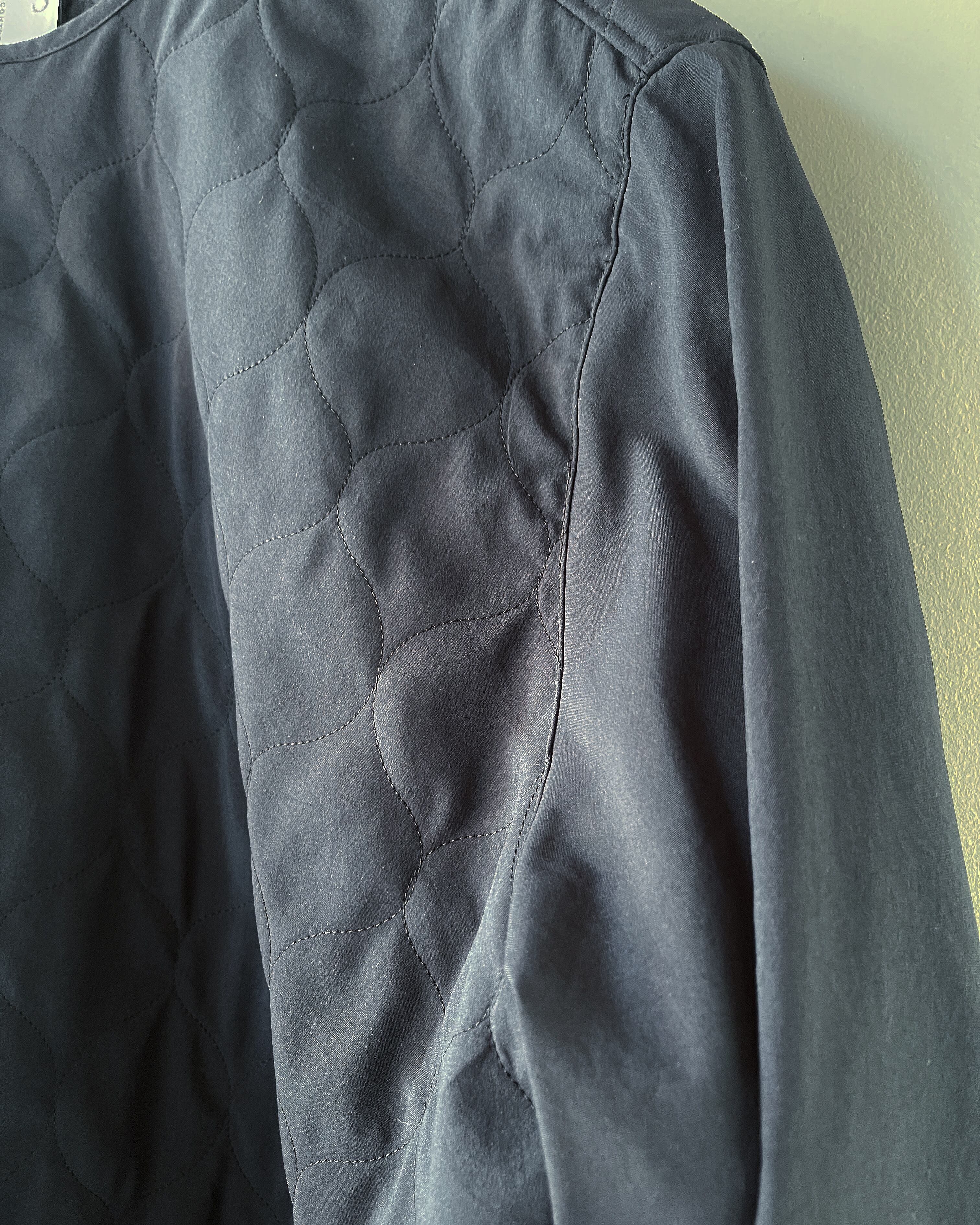 中綿素材をキルティングする際に必要なスパンボンド等を挟み込んでおらず、からばらず薄手で軽量でありながら、中綿を入れたキルティングと同等の性能を有しています。