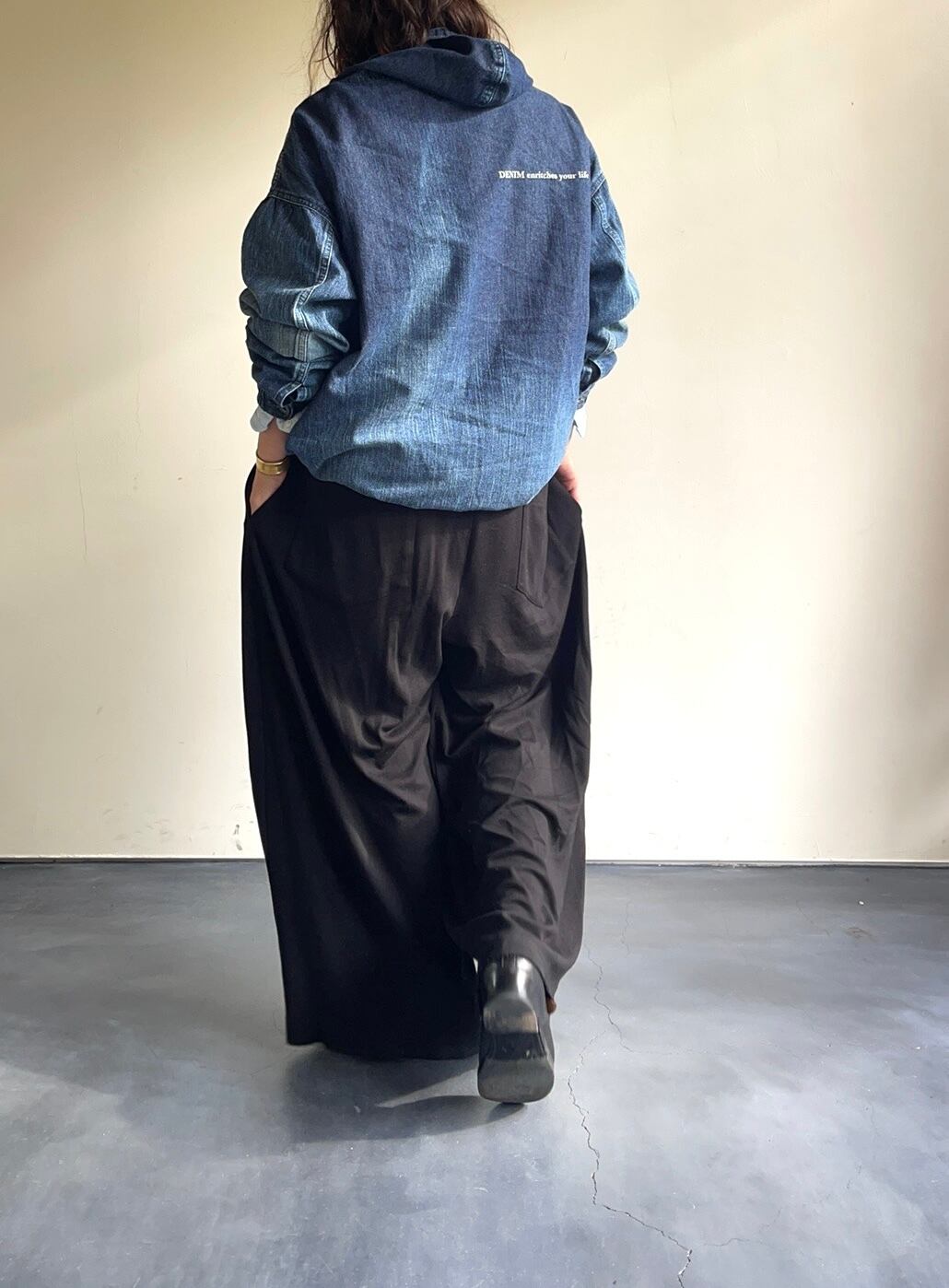 10ozの薄手デニムで通年着用して頂けます。