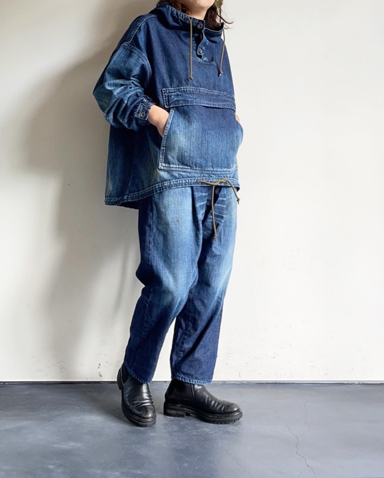 太すぎず細すぎずなシルエット、ウエスト後ろはゴムになっており、デイリーに使いやすいデニムパンツです。