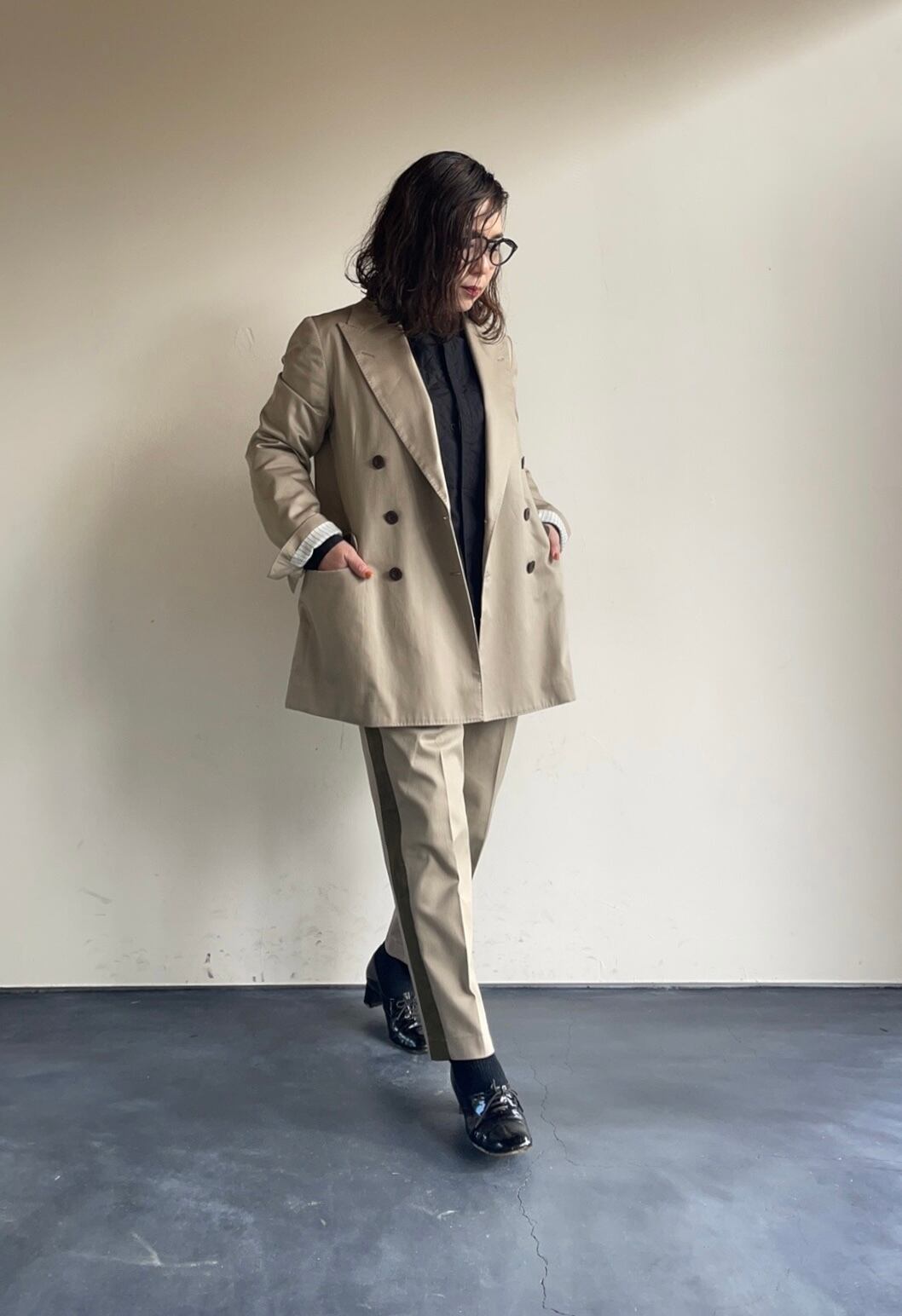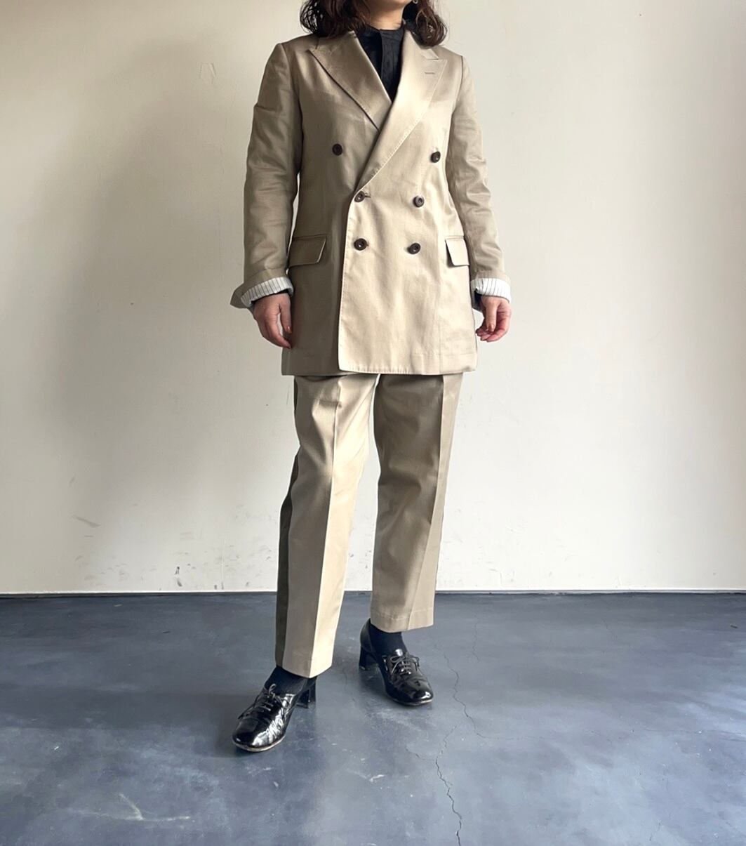 本来ワークウェア向けの素材に鮮やかな染色と配色でテーラーメイド仕立てした個性豊かな本格ジャケット。セットアップのジャケットも是非ご覧下さい。