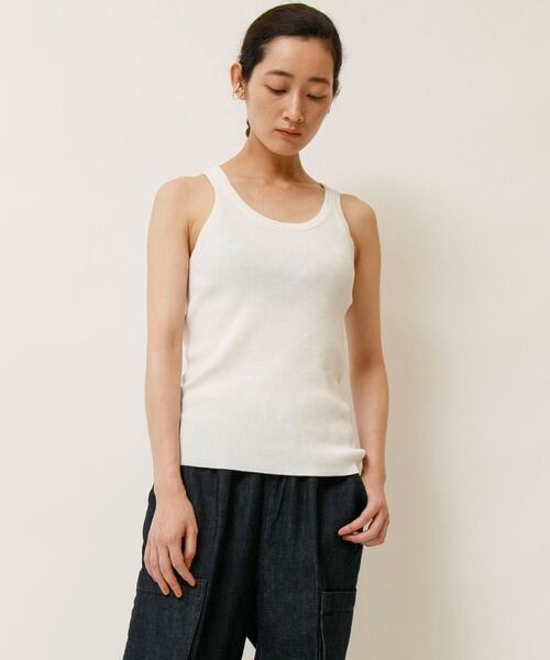 透け感も少なく程よい厚みと、ニットならではの上品な印象のアイテムに仕上げています。