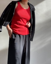 やや伸縮性のあるニット生地を使用し、タイト過ぎないサイズ感に仕上げているためすっきりとした印象で着用頂けます。