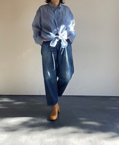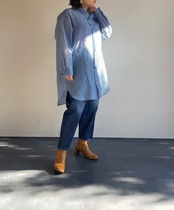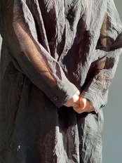 程良い透け感のオーガンジーをマットな表情に染色し、強いワッシャー加工を施したオリジナリティー溢れるマスキュリンな印象なシアー素材。