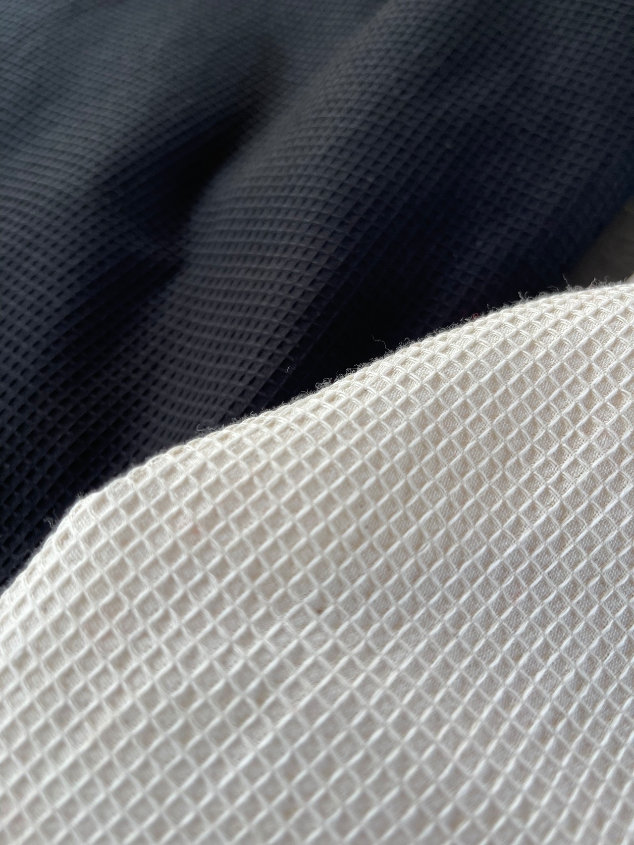 定番的な糸の20番単糸を使った布帛のサーマルワッフル素材です。