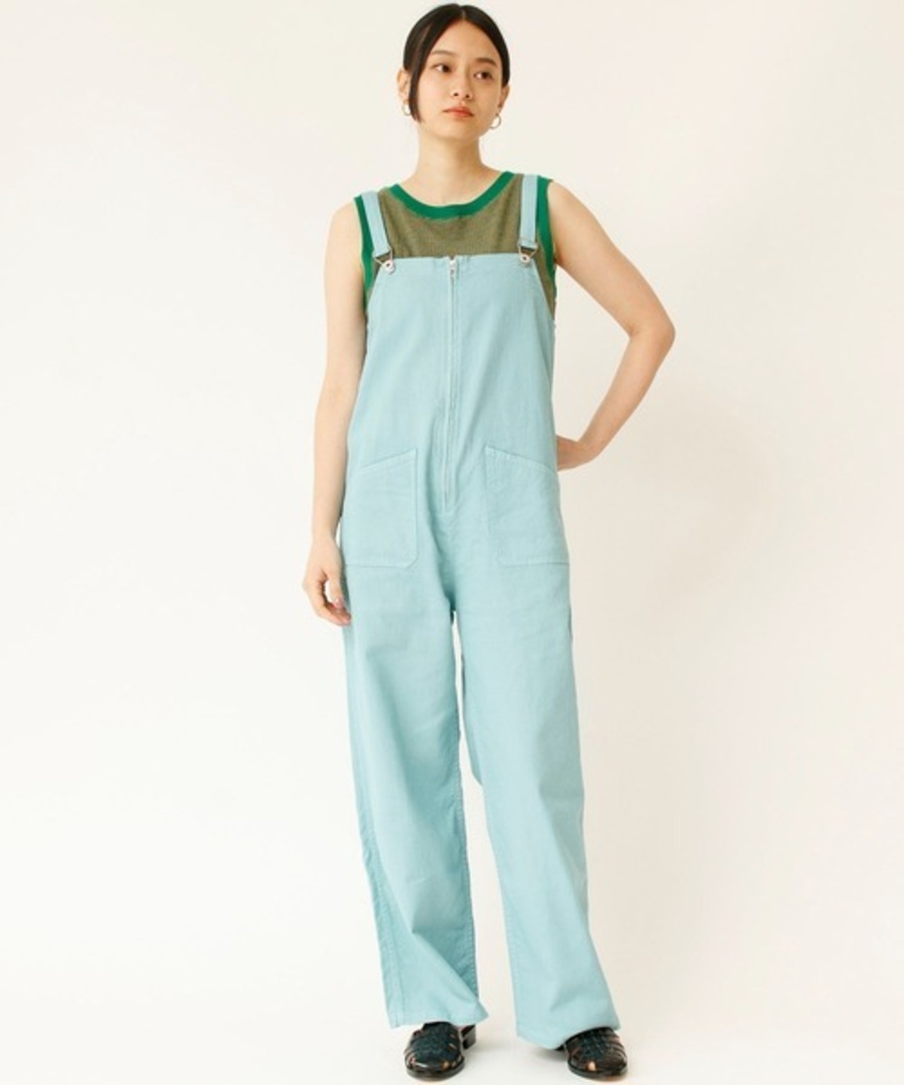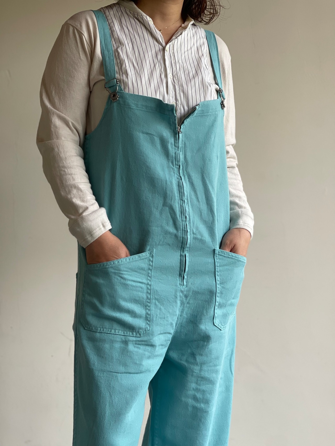 アメリカ海軍のデッキパンツをベースにアレンジされたサロペット。