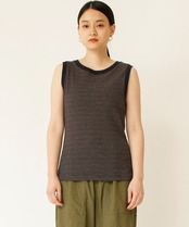 太畝と細畝がランダムに編みこまれたリブ生地を使用したノースリーブトップス。