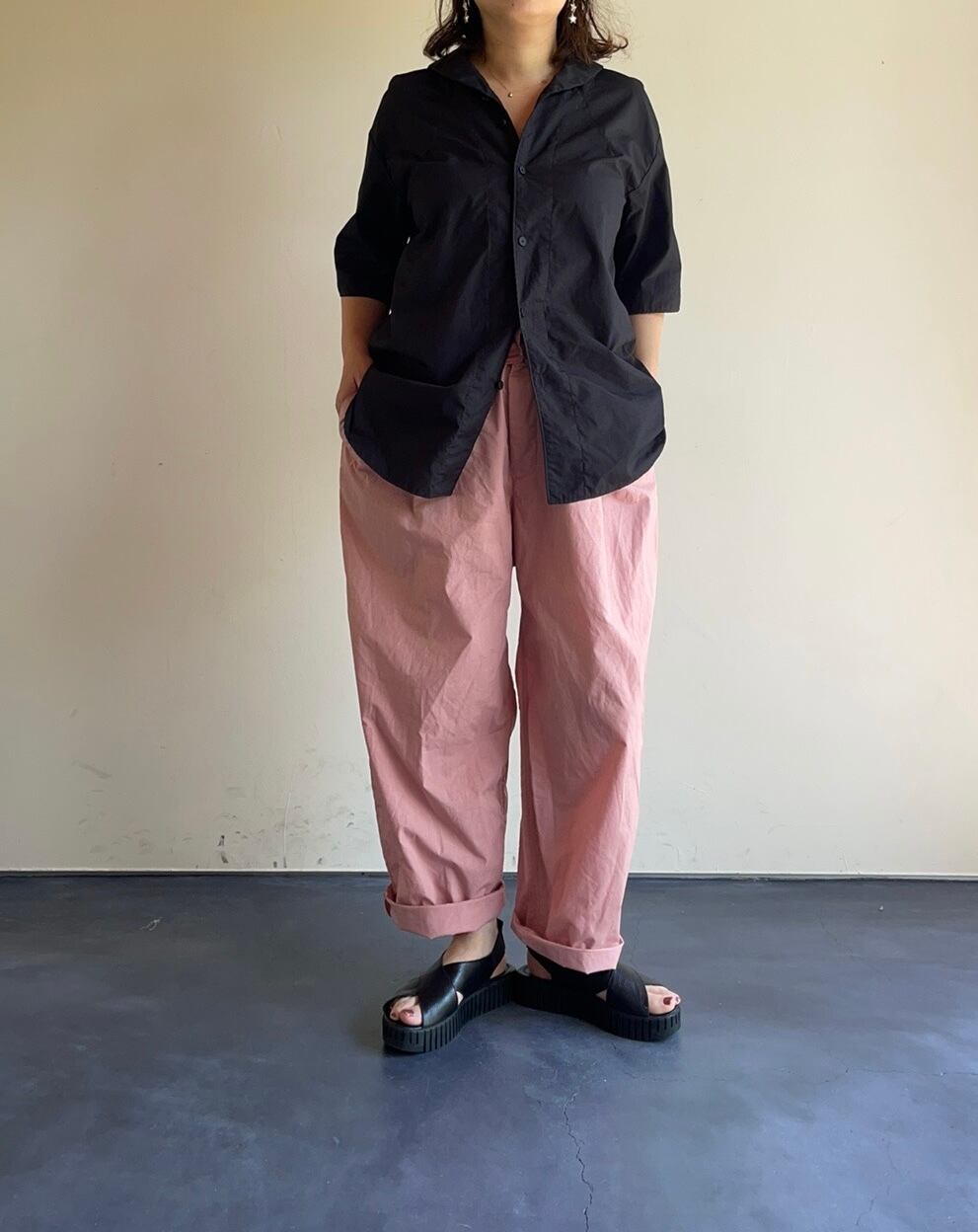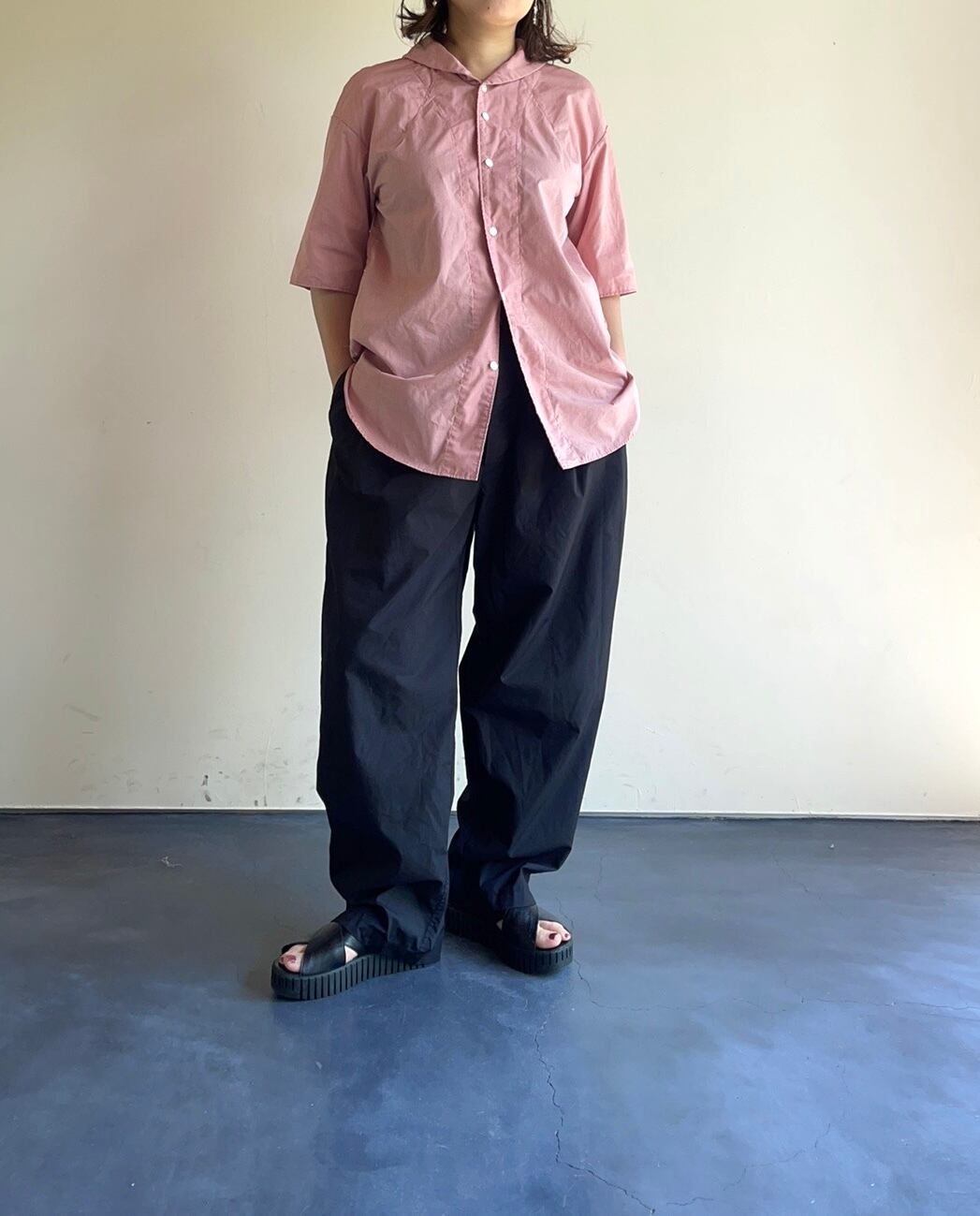 45/-ポリエステル/コットンの混紡糸を使用したブロード生地で薄いながらもハリがあり、皺にもなりにくいのが特徴です。