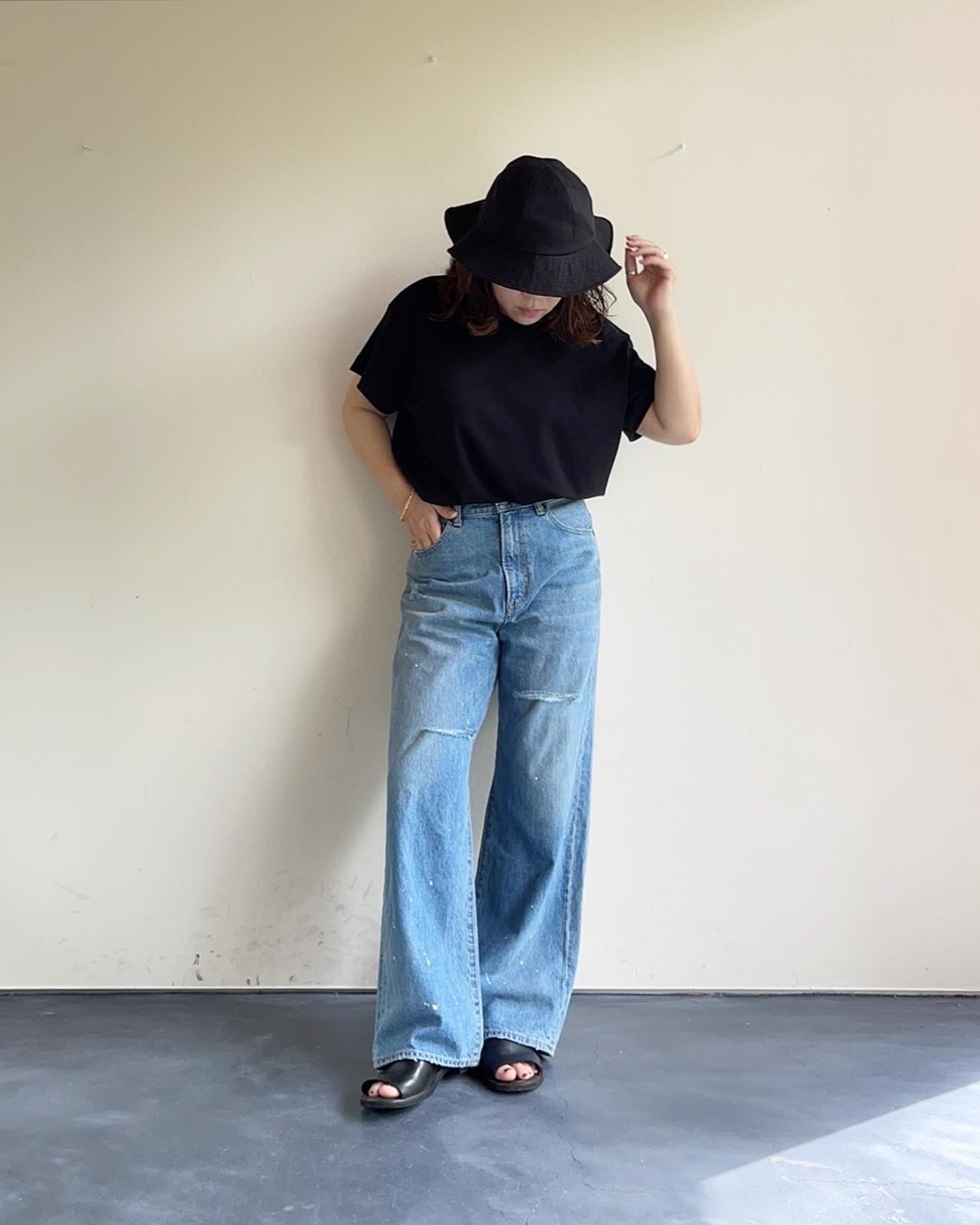 足の甲に裾を少したまらせて、ルーズに穿きこなして頂きたい一着です。