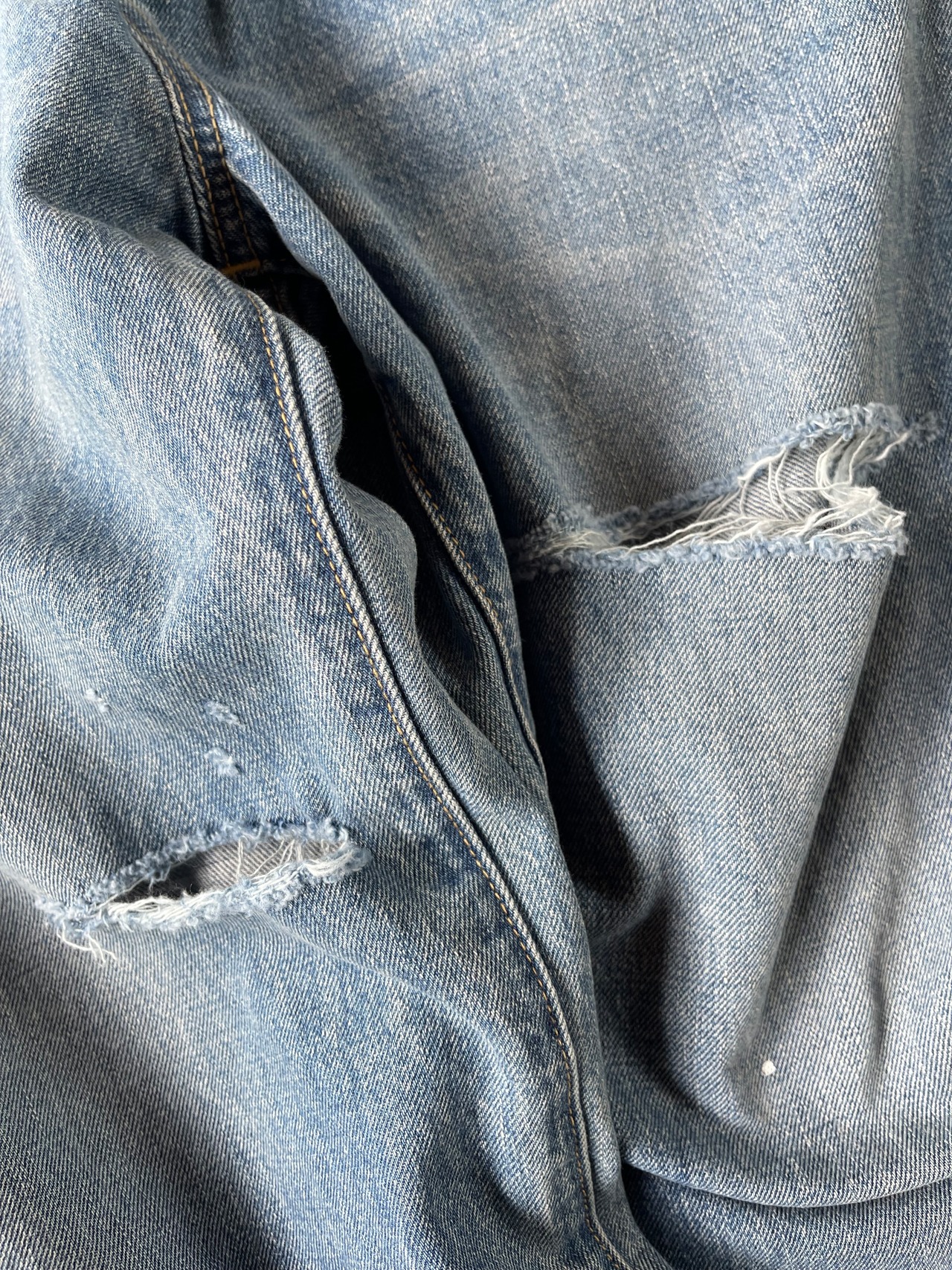 ペンキの飛ばし方や大きさなど、微調整を重ねることで本格的な加工感が感じられる一着となっております。