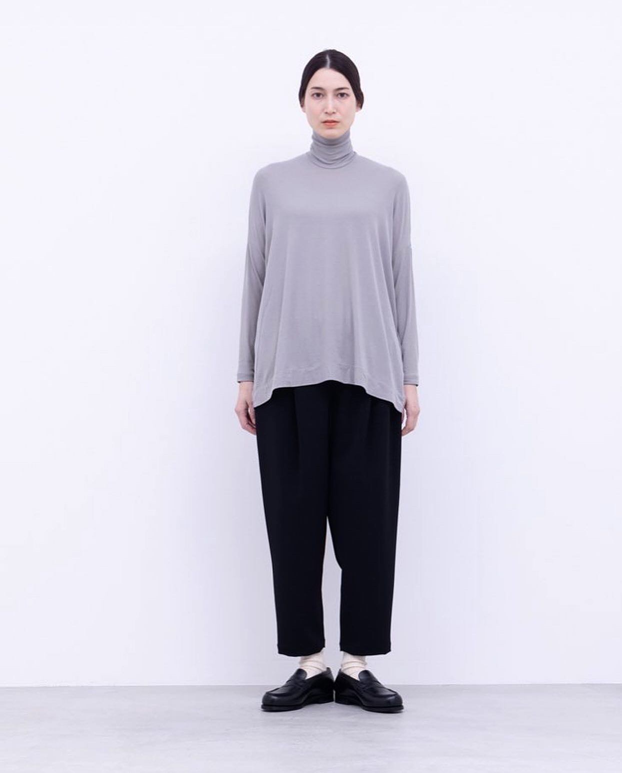生地はストレッチが効くタイトに使える生地ですが あえてルーズな部分をつくってゆったりとした雰囲気で仕上げています。