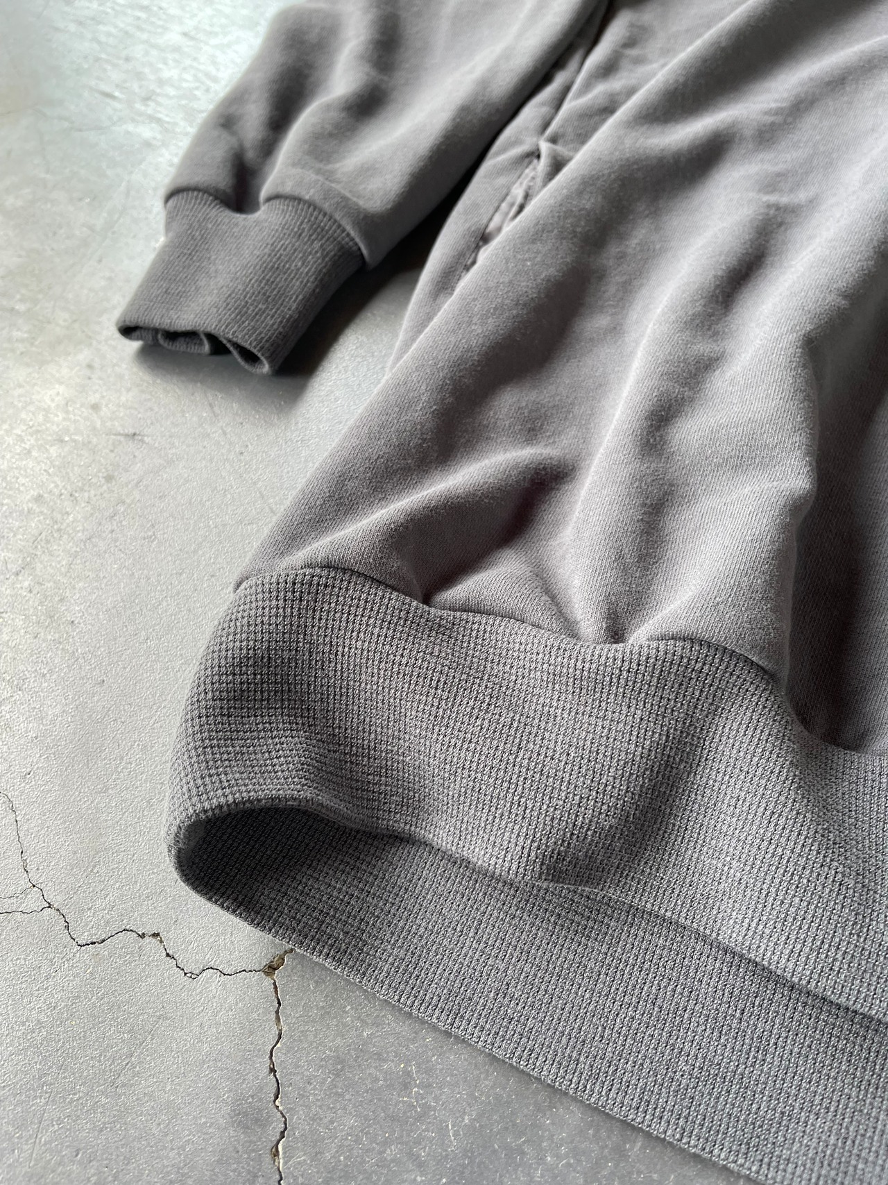 綿番でいうと30/10と同等の、綿ライクなポリエステル100%の裏毛を製品染めしています。