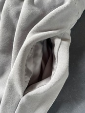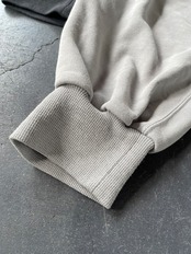 表面はドライタッチの綿ライクなポリエステル糸を使用し、裏はふくらみのあるポリエステル糸を使用しています。甘編みの綿の裏毛にとても近い風合いの柔らかな仕上がりです。